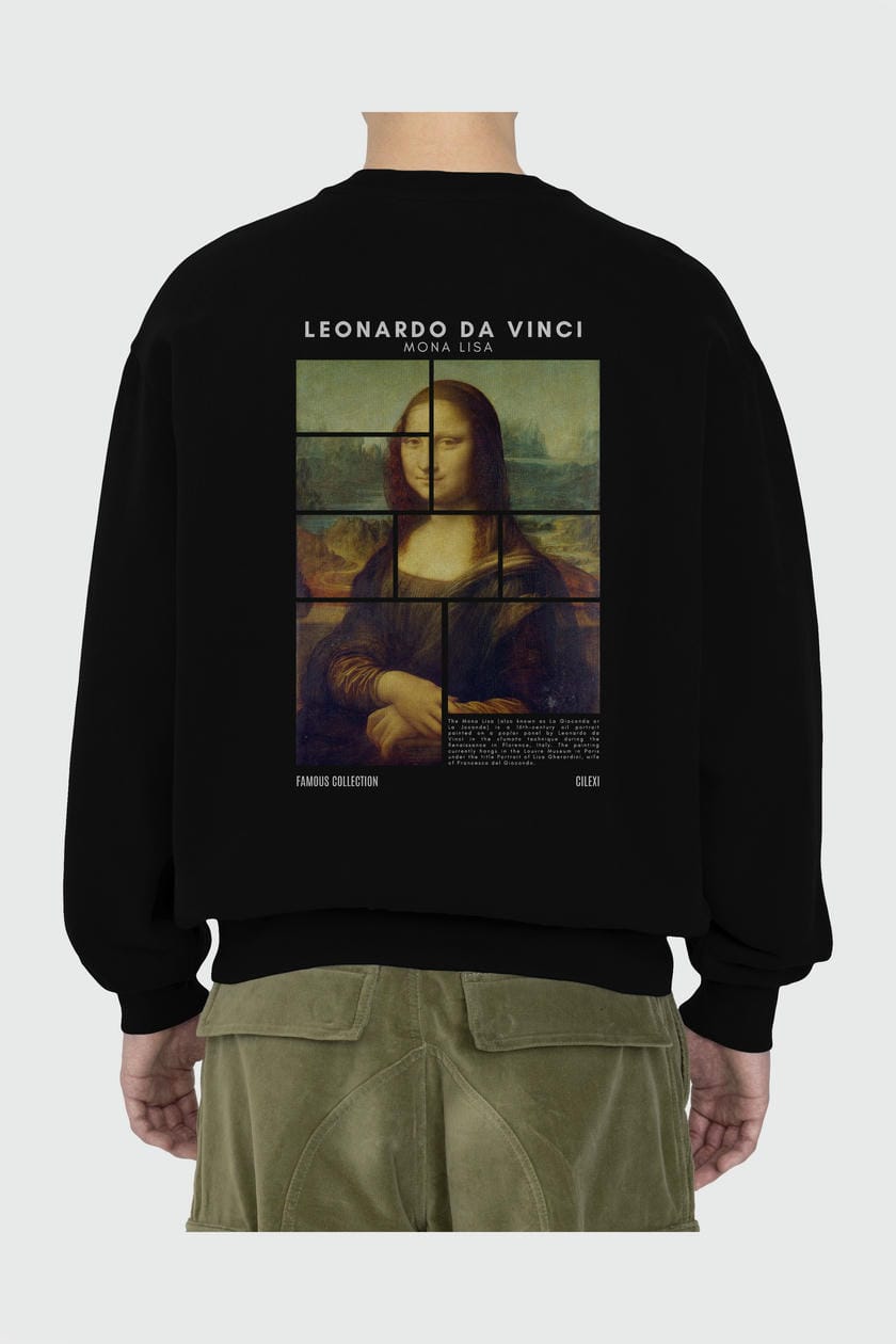 Leonardo Da Vinci Mona Lisa Arka Baskılı Oversize Sweatshirt Erkek Kadın Unisex
