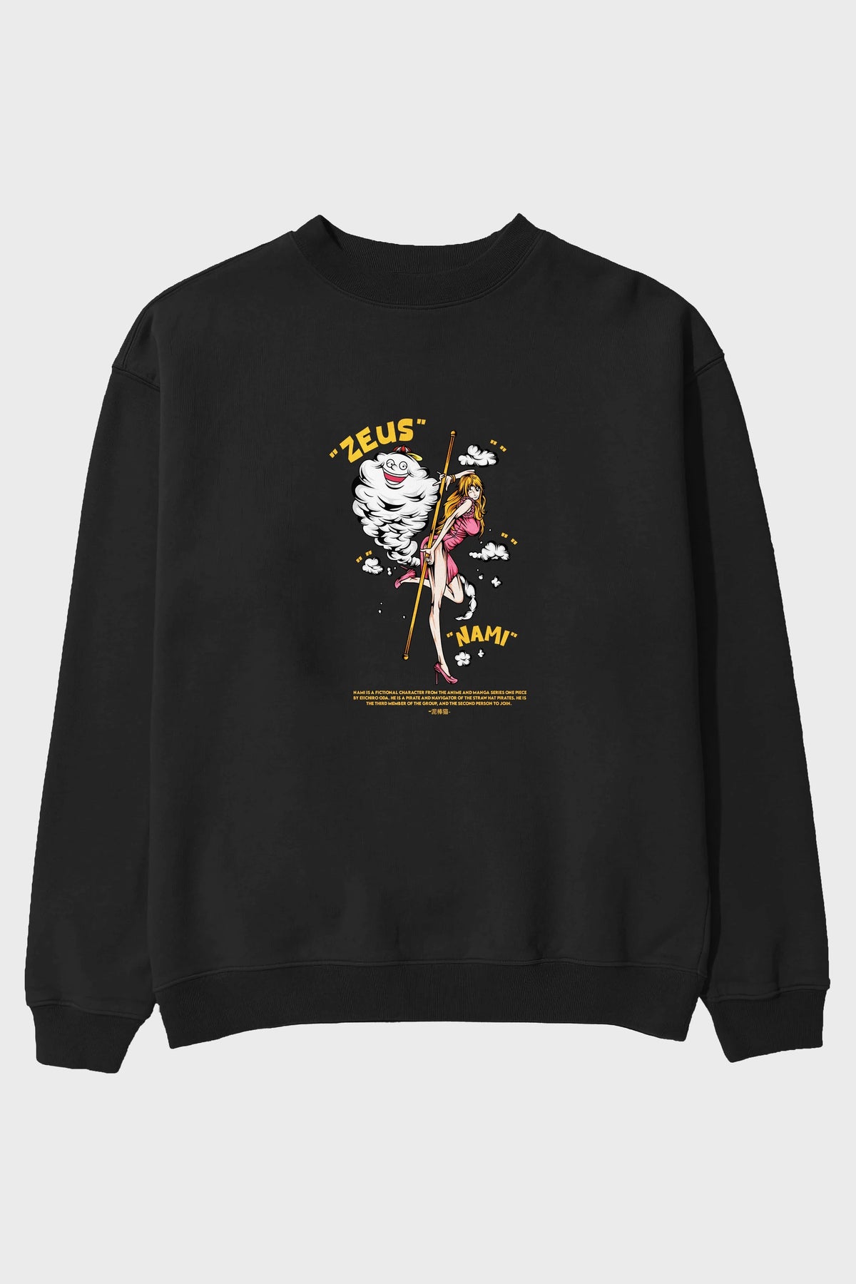 Zeus Nami Anime Ön Baskılı Oversize Sweatshirt Erkek Kadın Unisex
