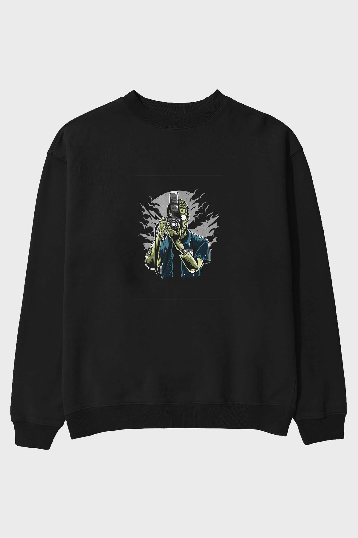 Zombie Photographer Ön Baskılı Oversize Sweatshirt Erkek Kadın Unisex