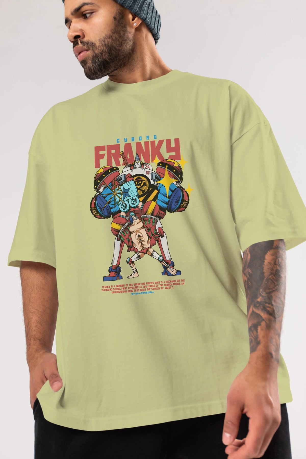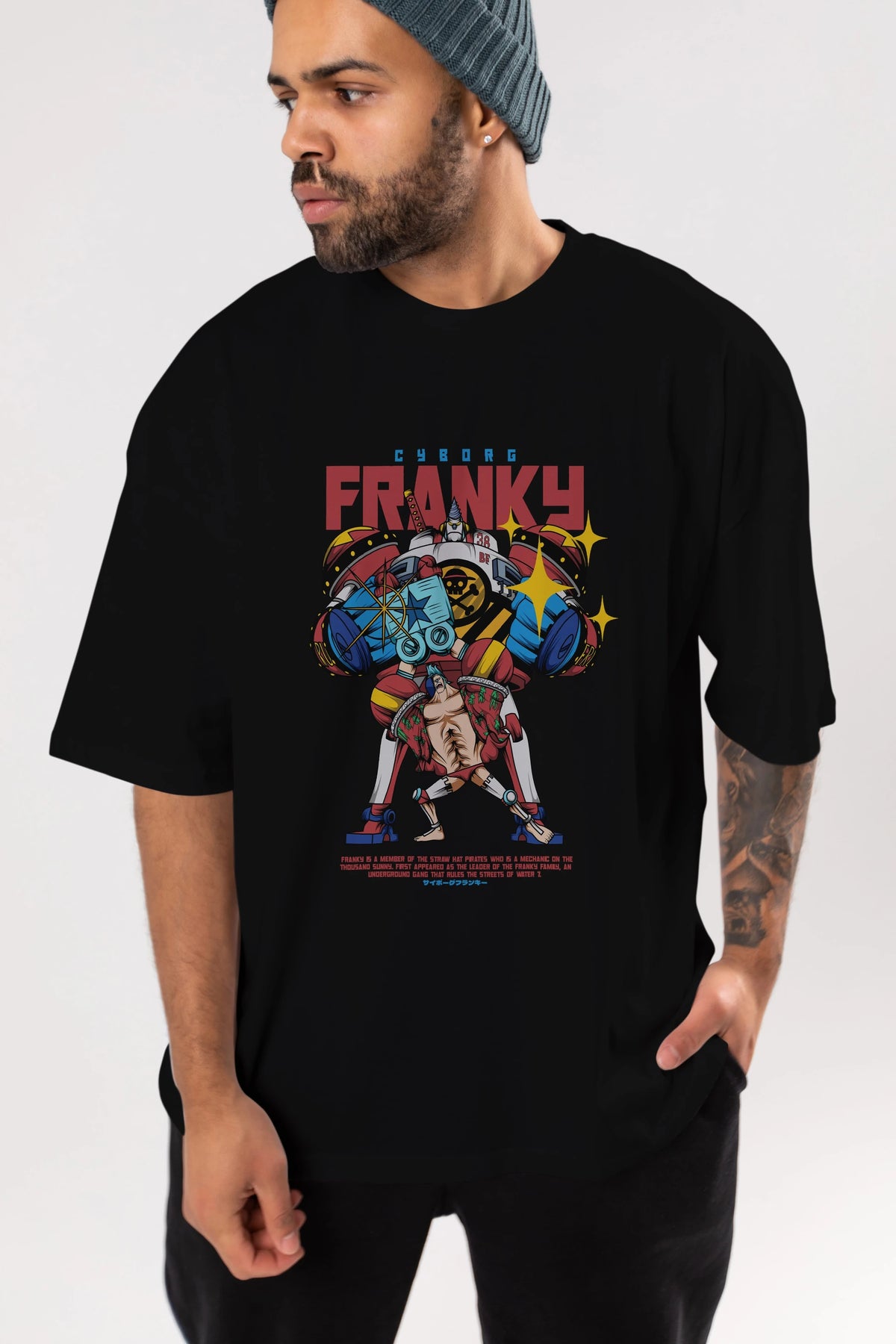 Cyborg Franky Anime Ön Baskılı Oversize t-shirt %100 pamuk Erkek Kadın Unisex