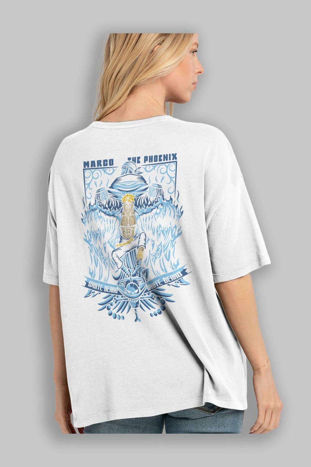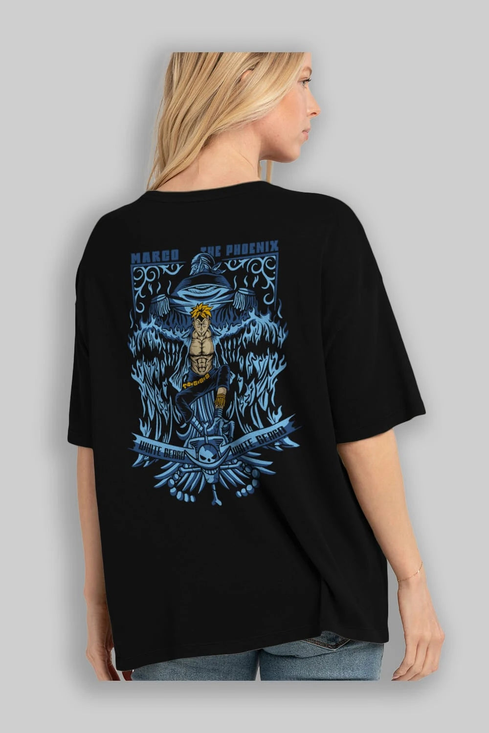 MARCO EL FENIX One Piece Anime Arka Baskılı Oversize t-shirt Erkek Kadın Unisex