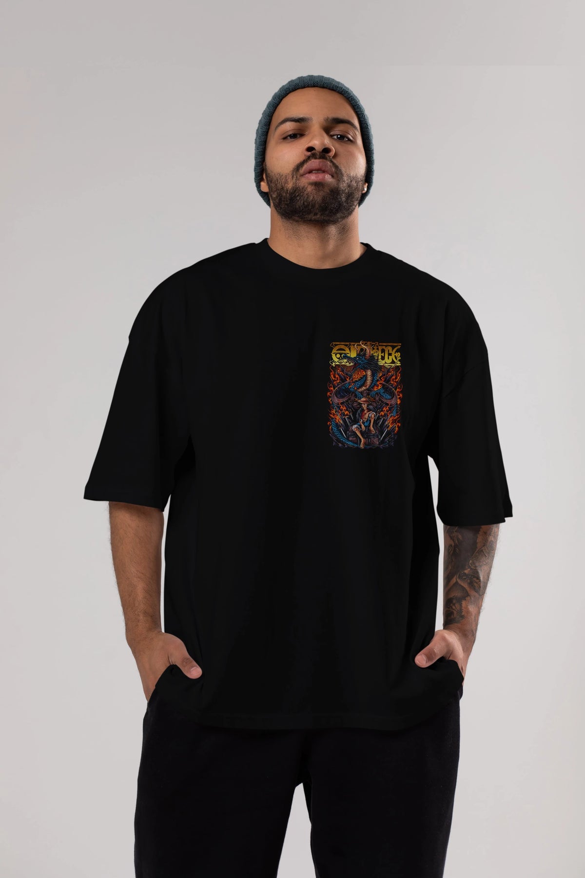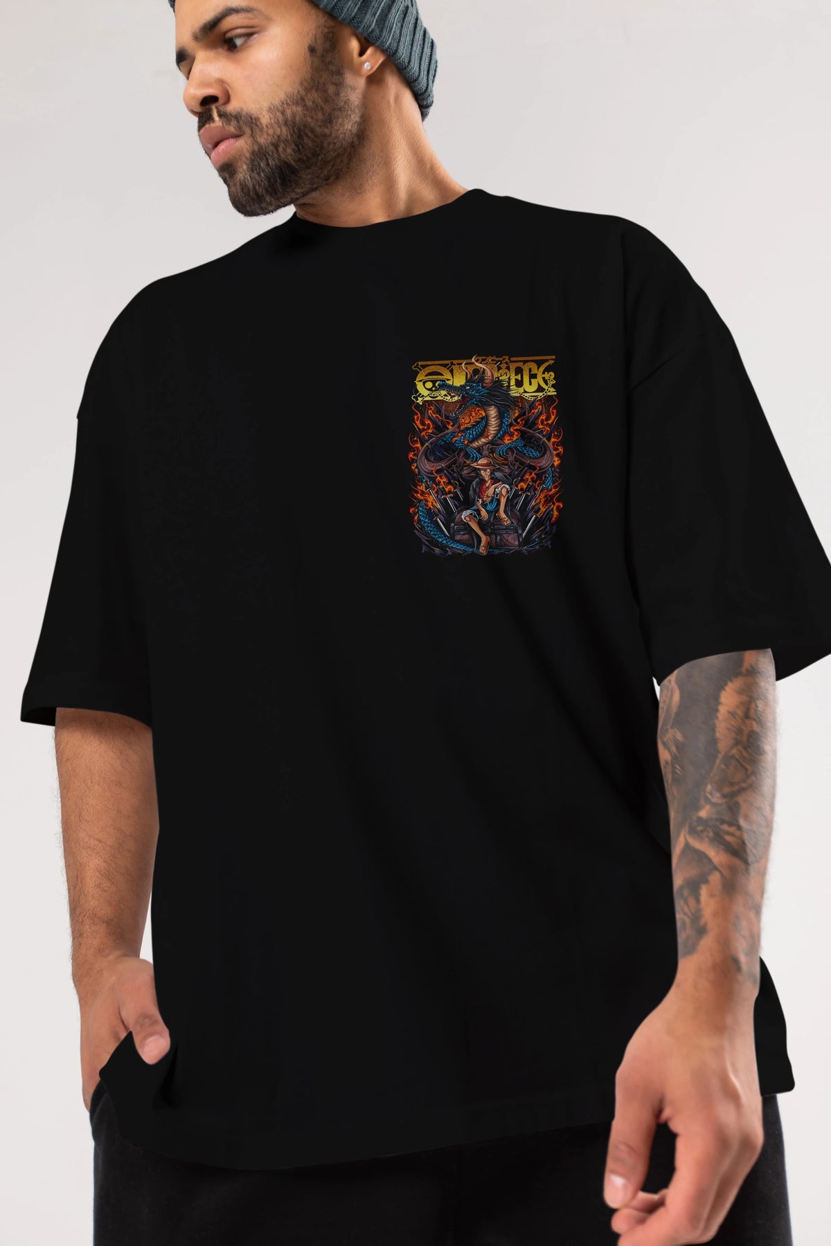 MONKEY D. LUFF-ONE PIECE Ön Sol Baskılı Oversize t-shirt Erkek Kadın Unisex %100 Pamuk Bisiklet Yaka tişort