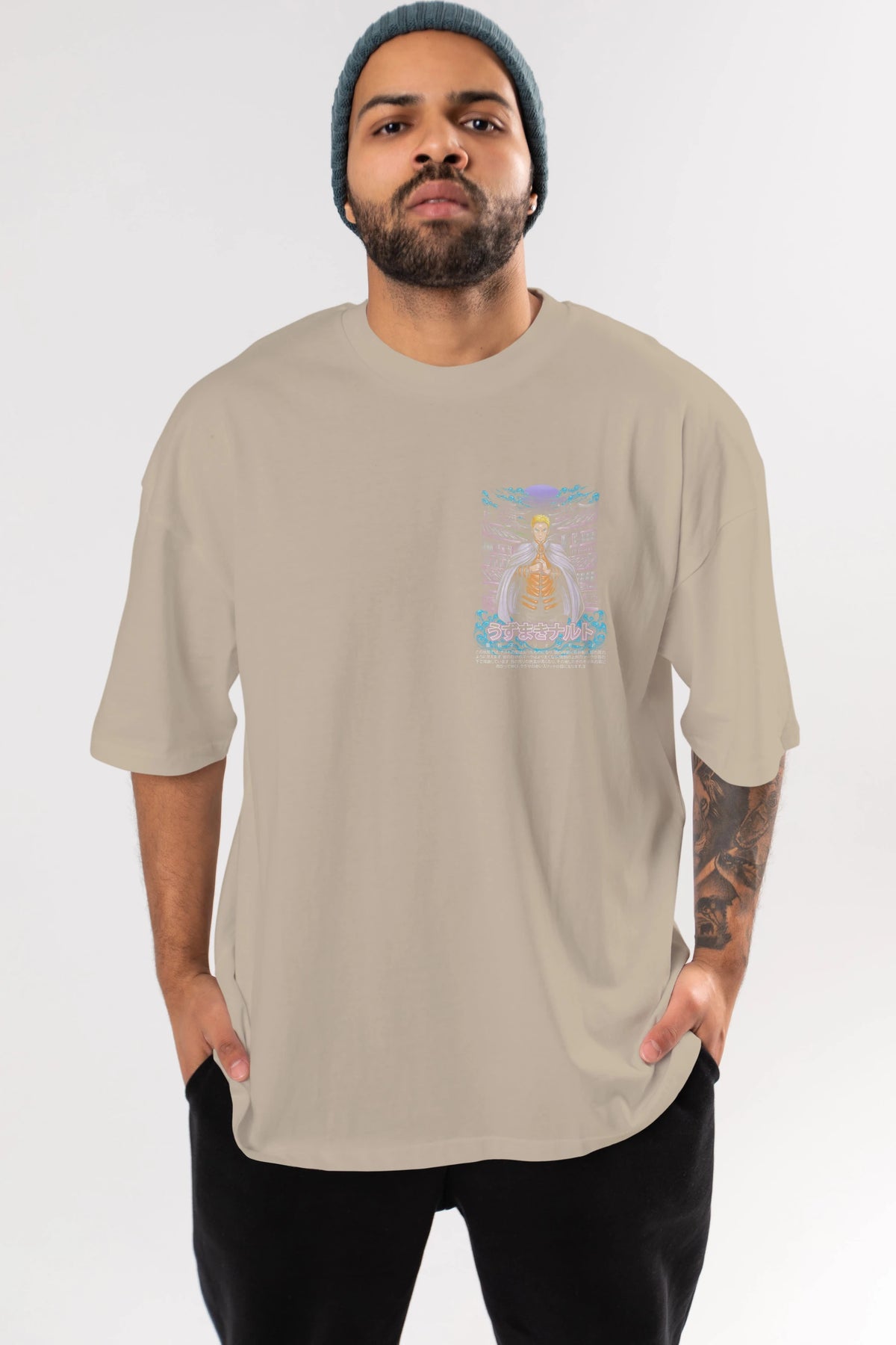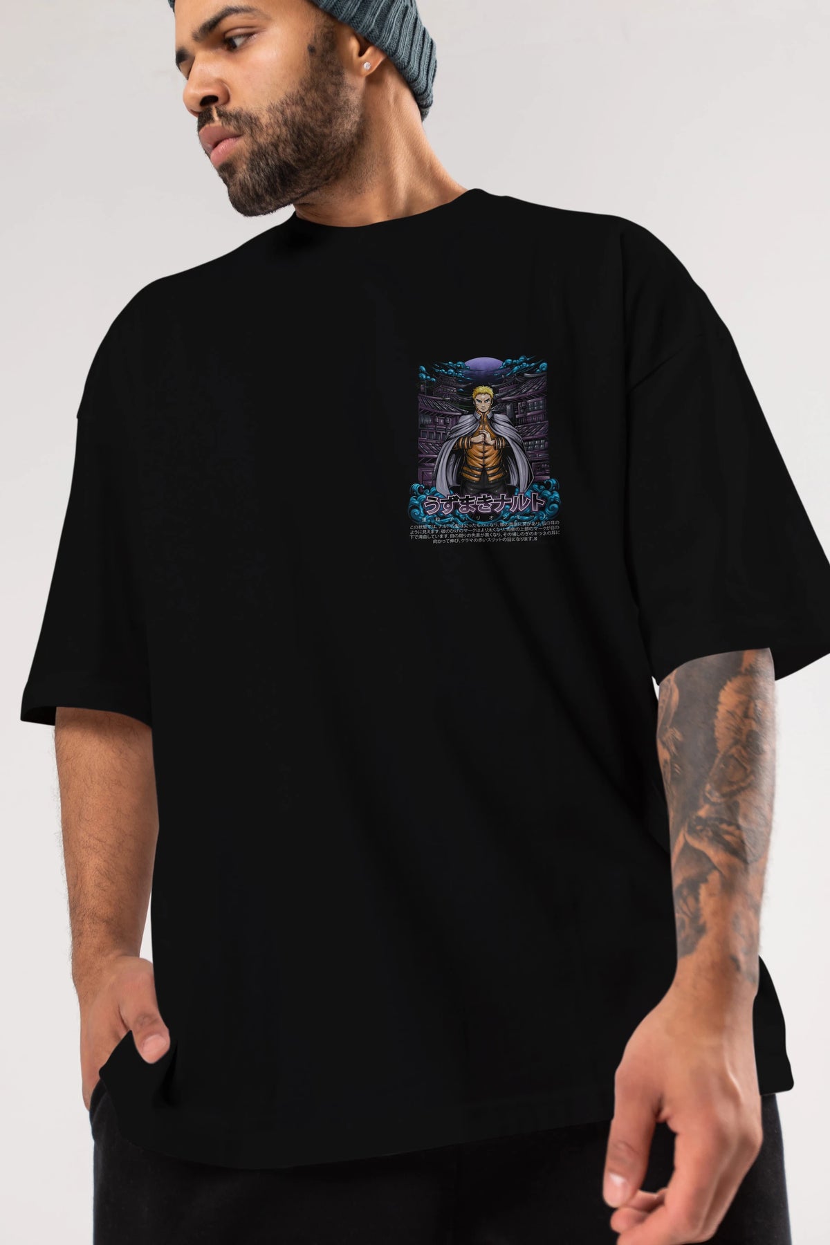 NARUTO (8) Ön Sol Baskılı Oversize t-shirt Erkek Kadın Unisex %100 Pamuk Bisiklet Yaka tişort