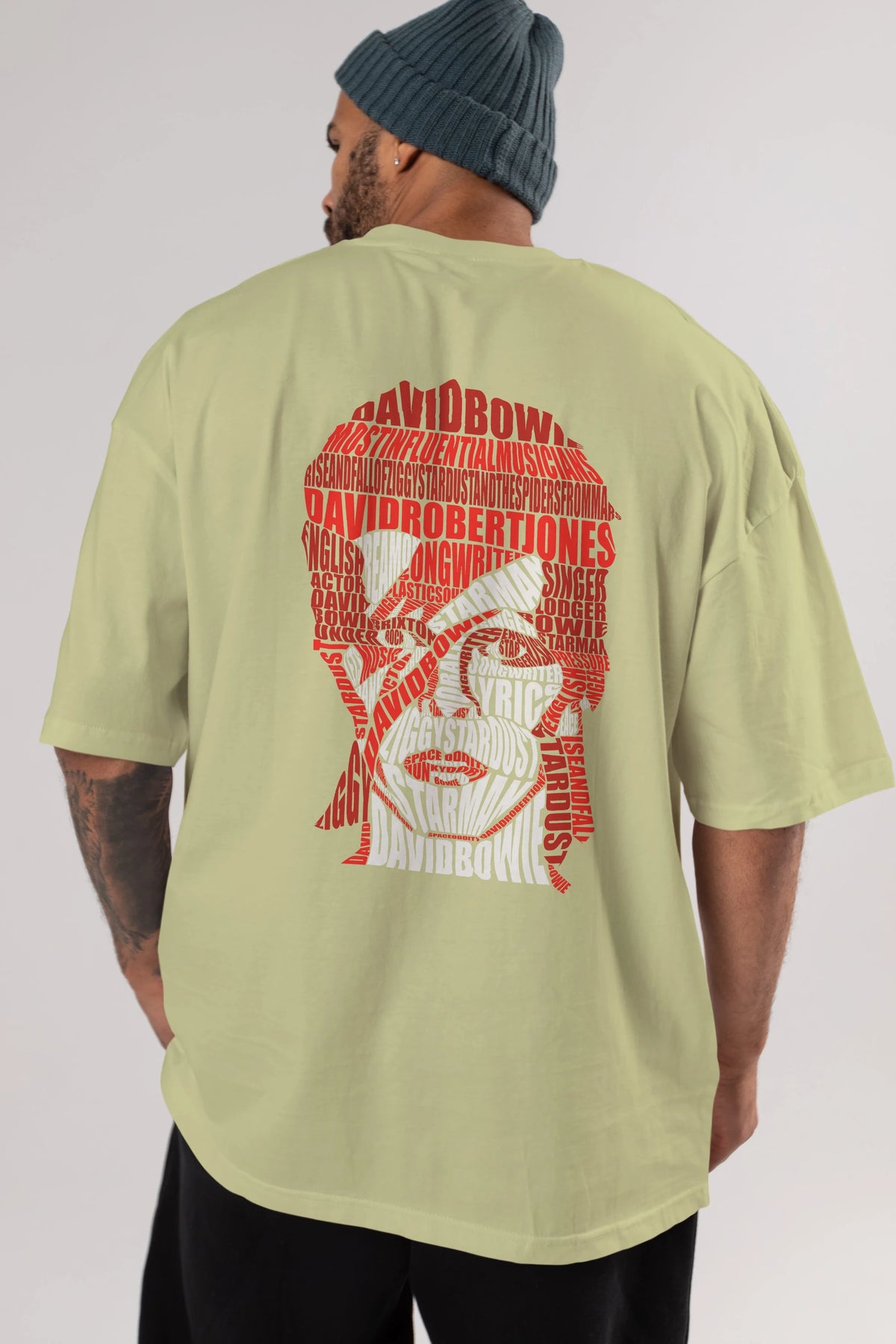 David Bowie Calligram Arka Baskılı Oversize t-shirt %100 pamuk Erkek Kadın Unisex