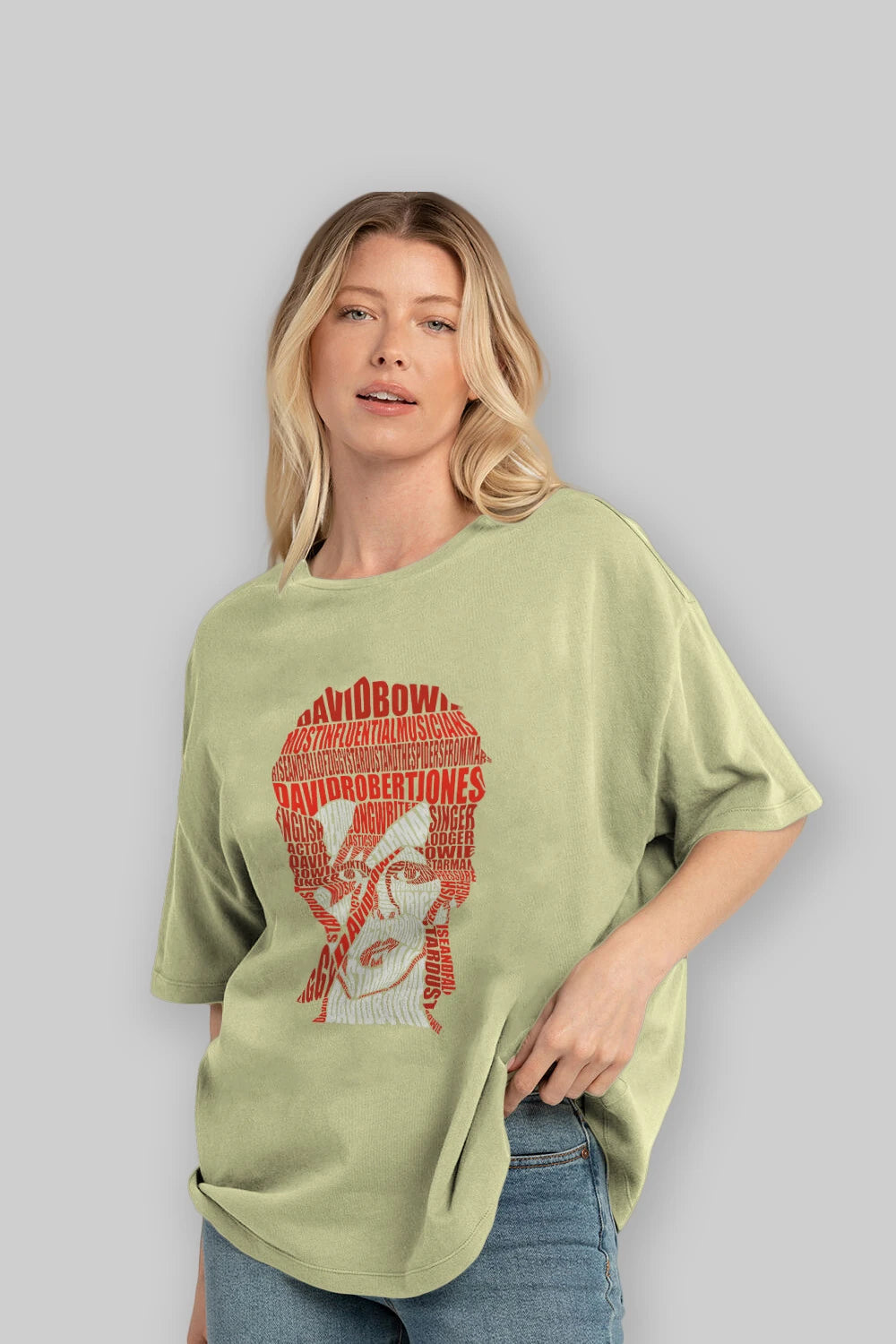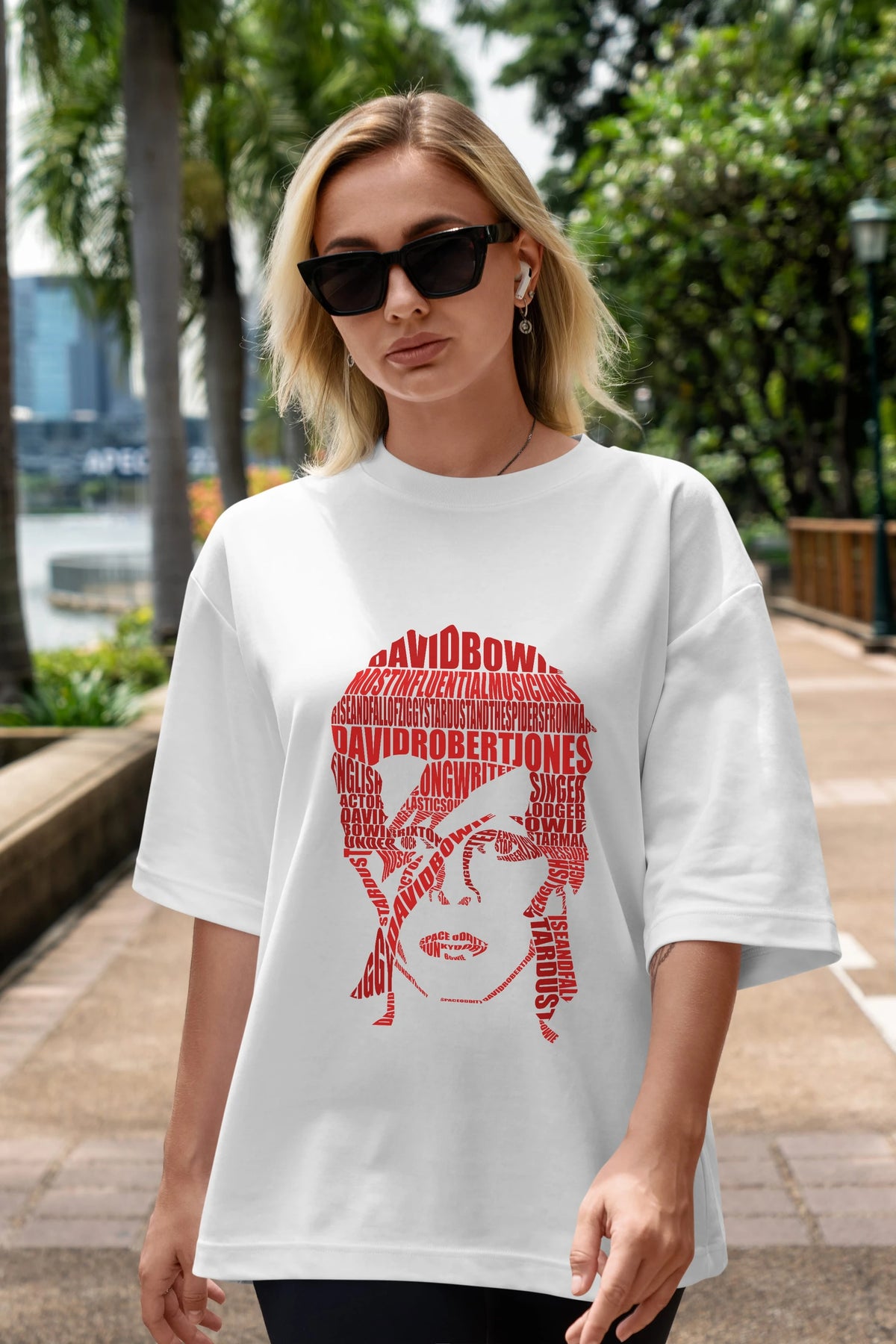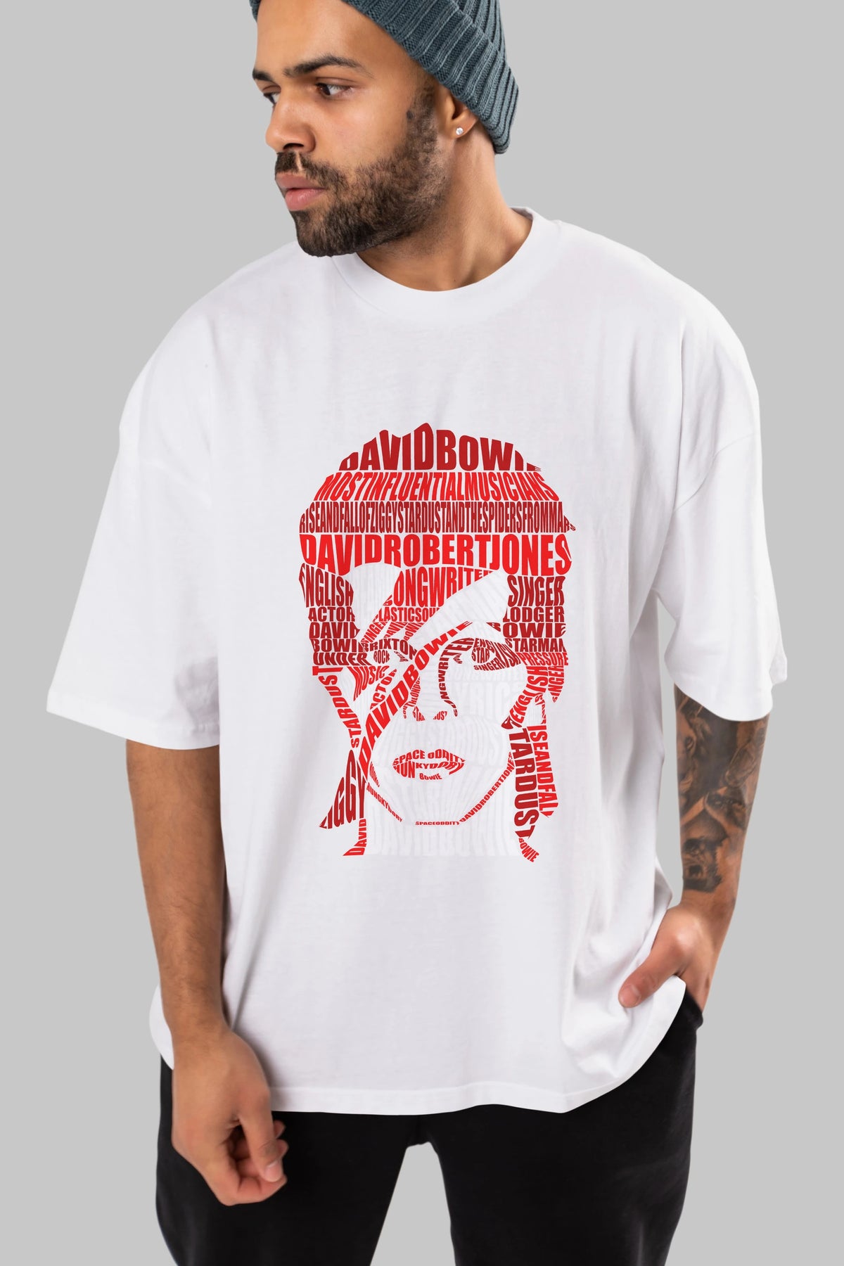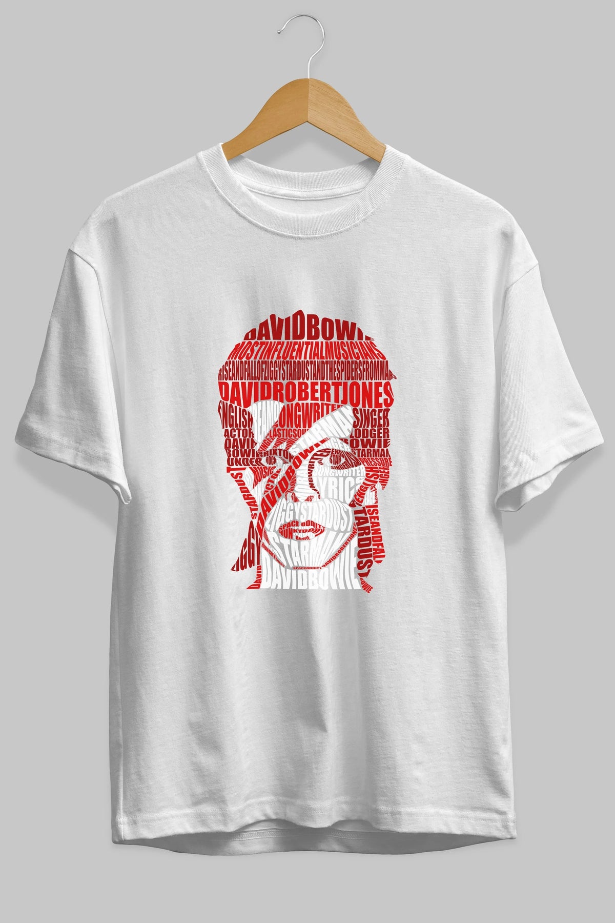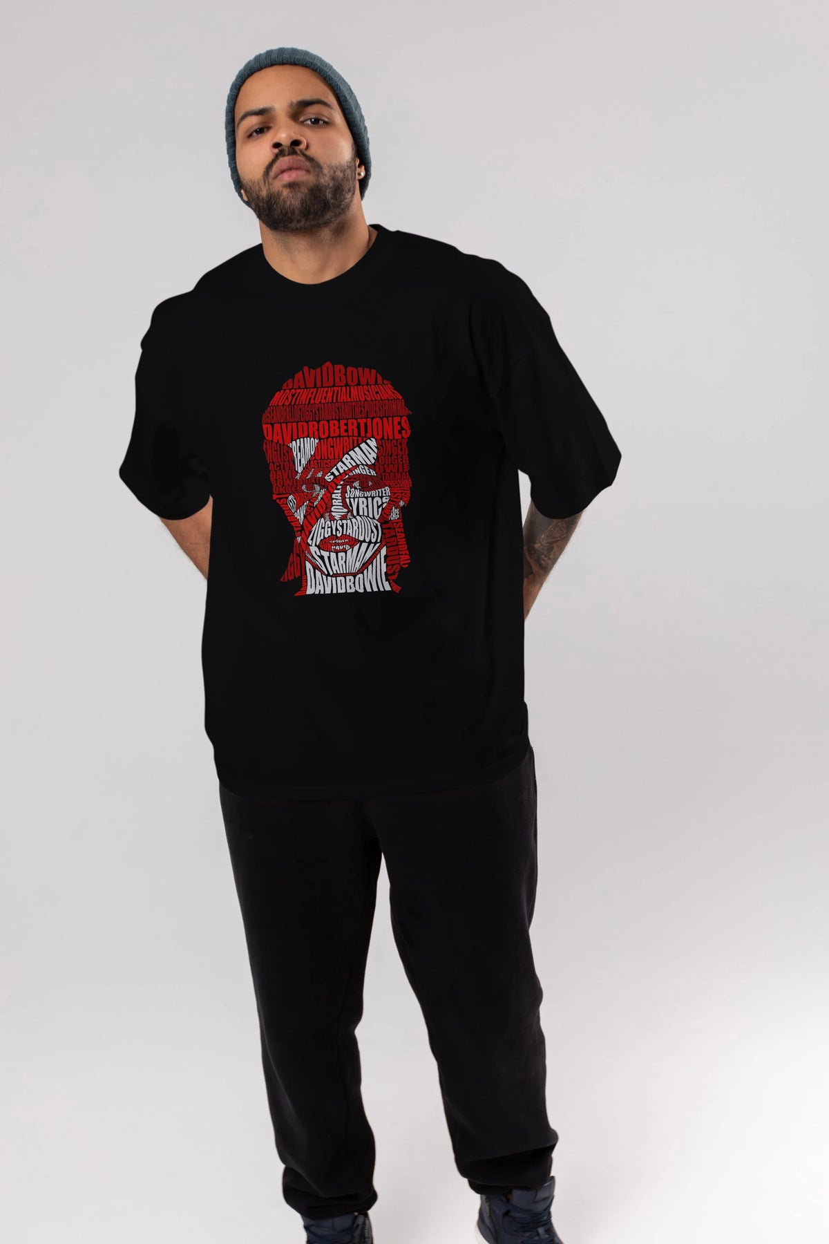 David Bowie Calligram Ön Baskılı Oversize t-shirt %100 pamuk Erkek Kadın Unisex