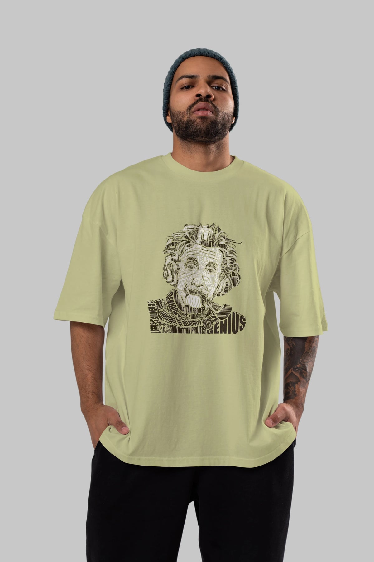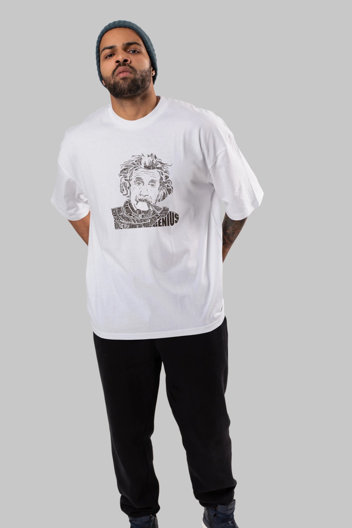 Einstein Calligram Ön Baskılı Oversize t-shirt %100 pamuk Erkek Kadın Unisex
