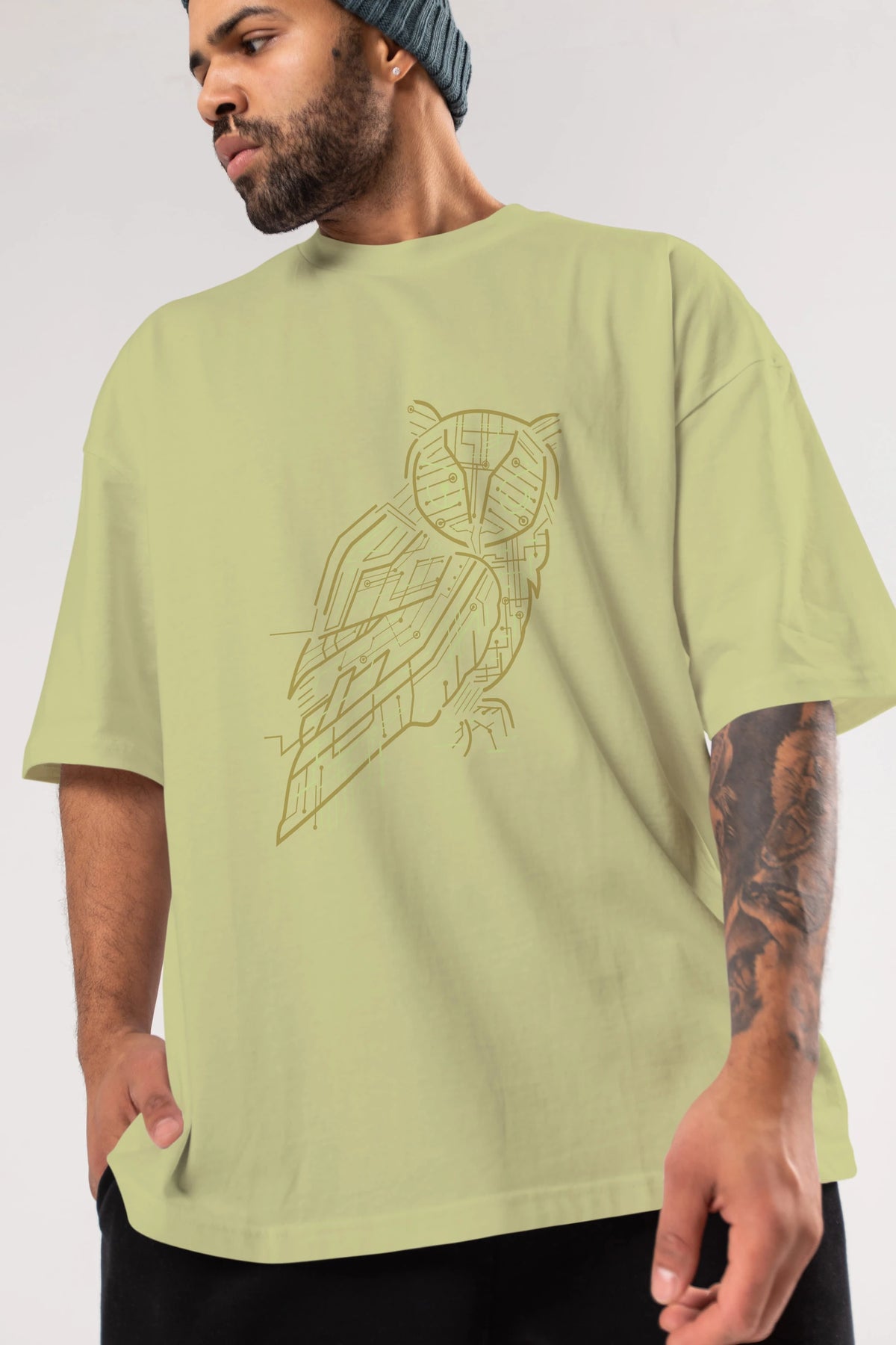 Electrical Owl Ön Baskılı Oversize t-shirt %100 pamuk Erkek Kadın Unisex