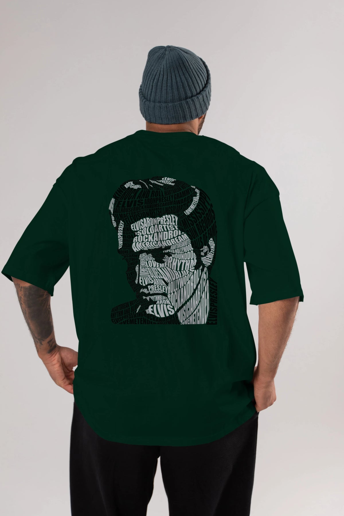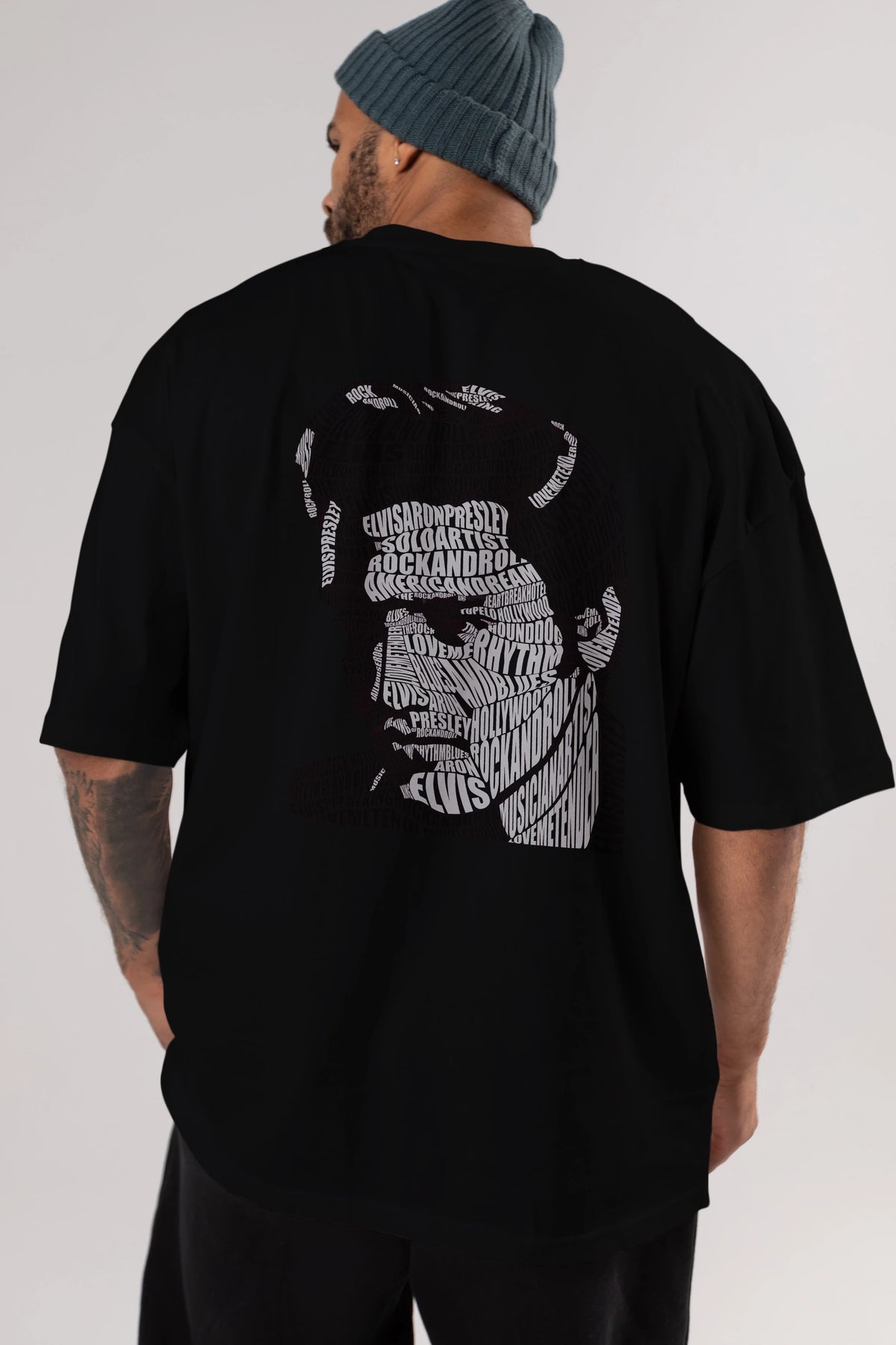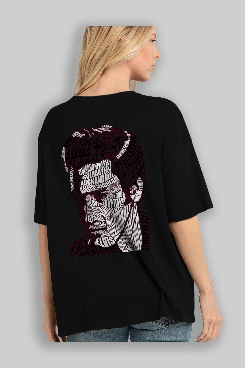 Elvis Presley Calligram Arka Baskılı Oversize t-shirt %100 pamuk Erkek Kadın Unisex