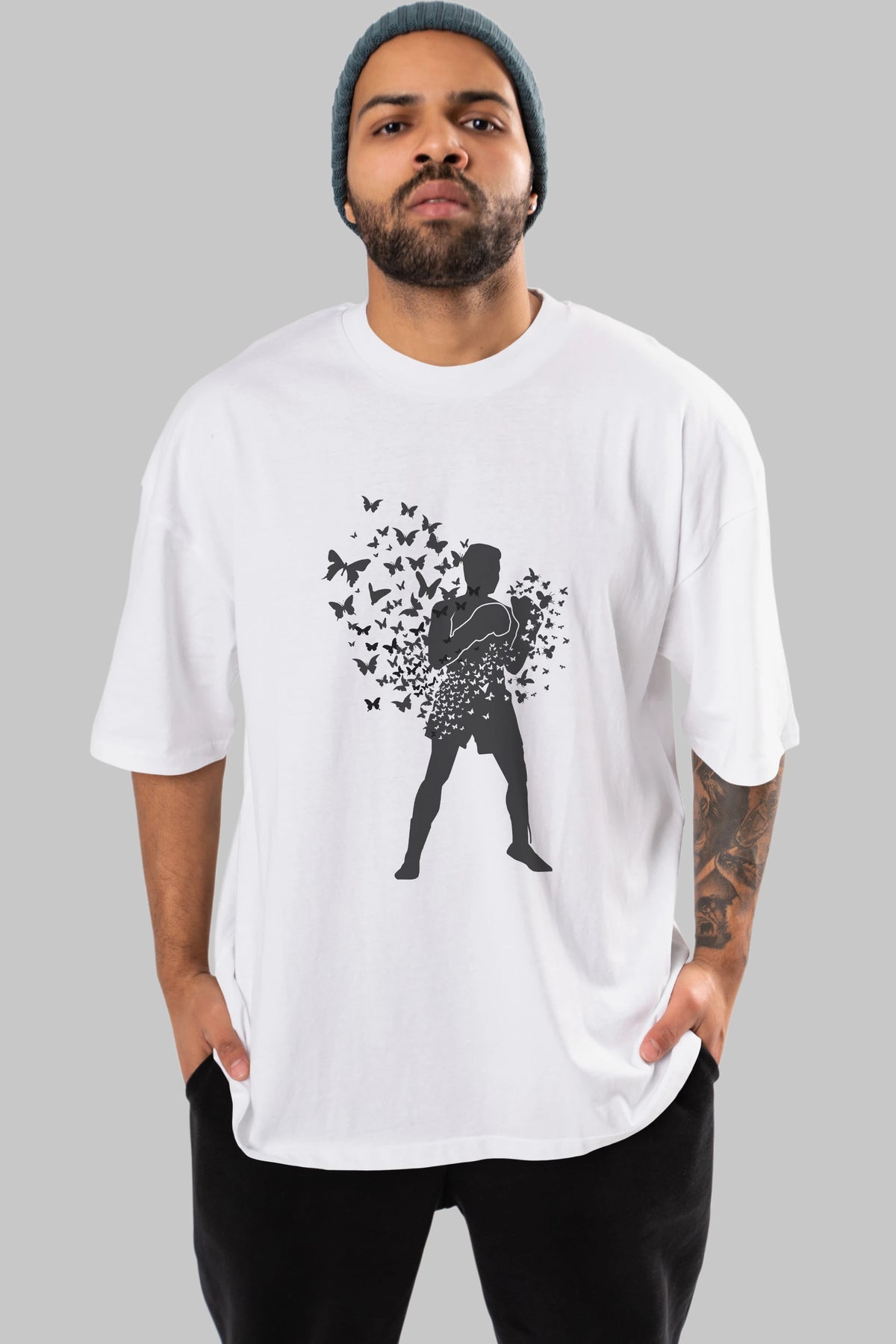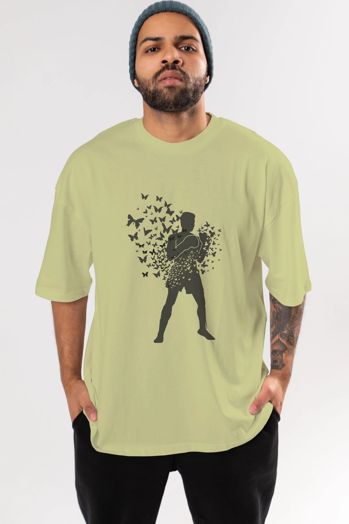 Float Like Butterfly Sting Like Bee Ön Baskılı Oversize t-shirt %100 pamuk Erkek Kadın Unisex