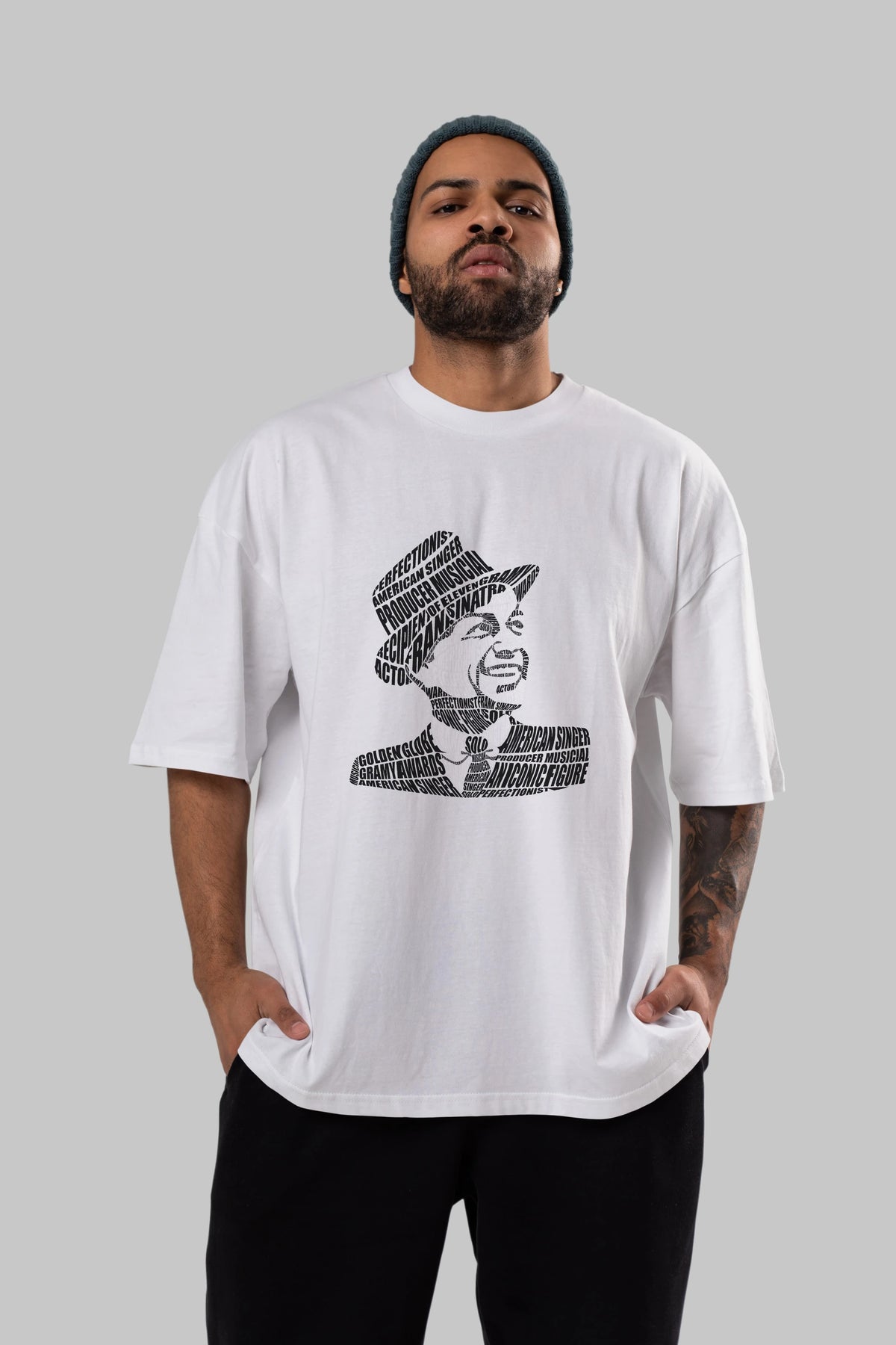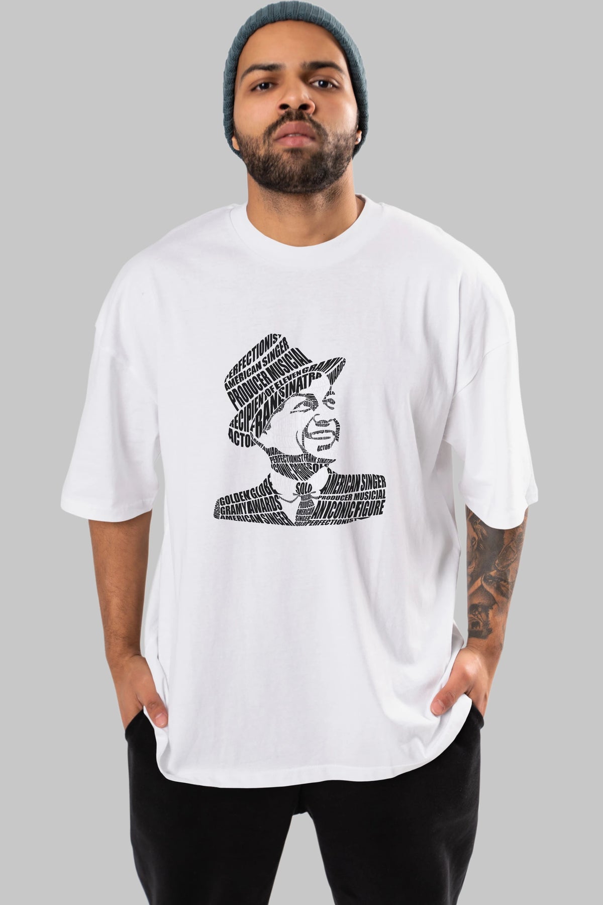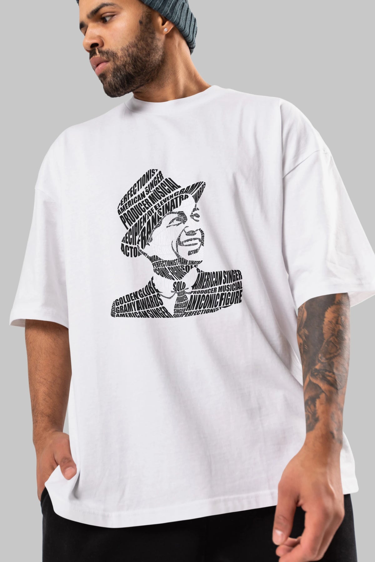 Frank Sinatra Calligram Ön Baskılı Oversize t-shirt %100 pamuk Erkek Kadın Unisex