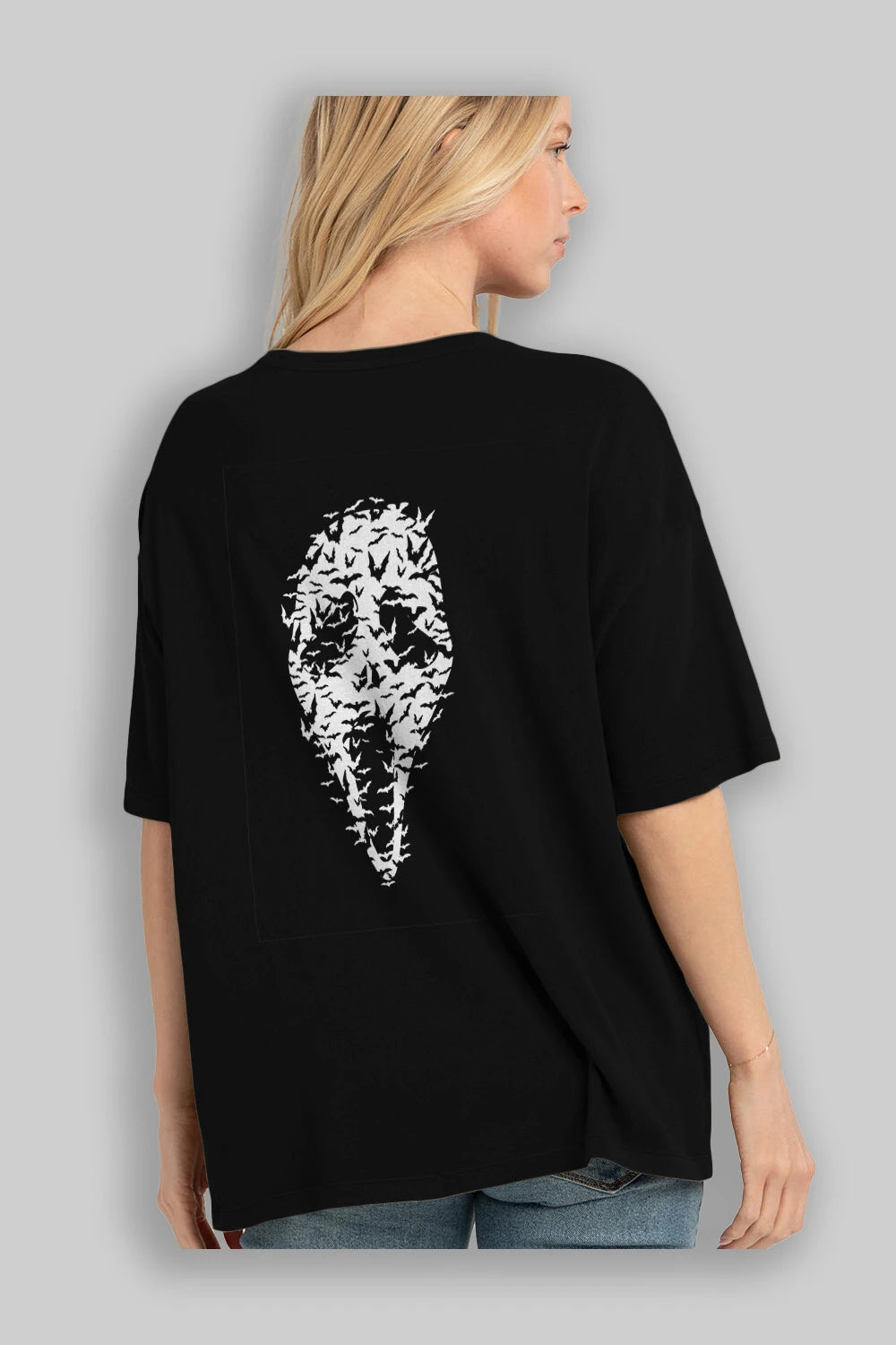 Ghost Face Bats Arka Baskılı Oversize t-shirt %100 pamuk Erkek Kadın Unisex