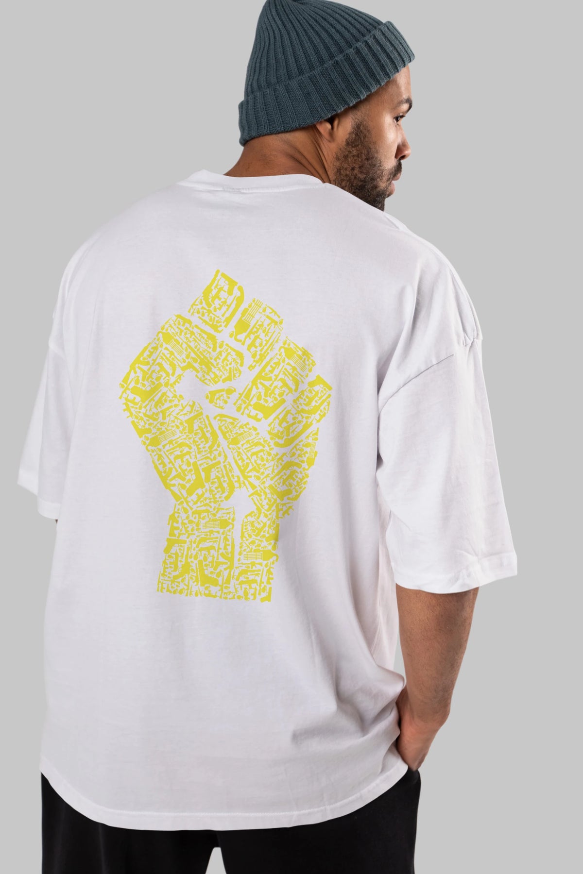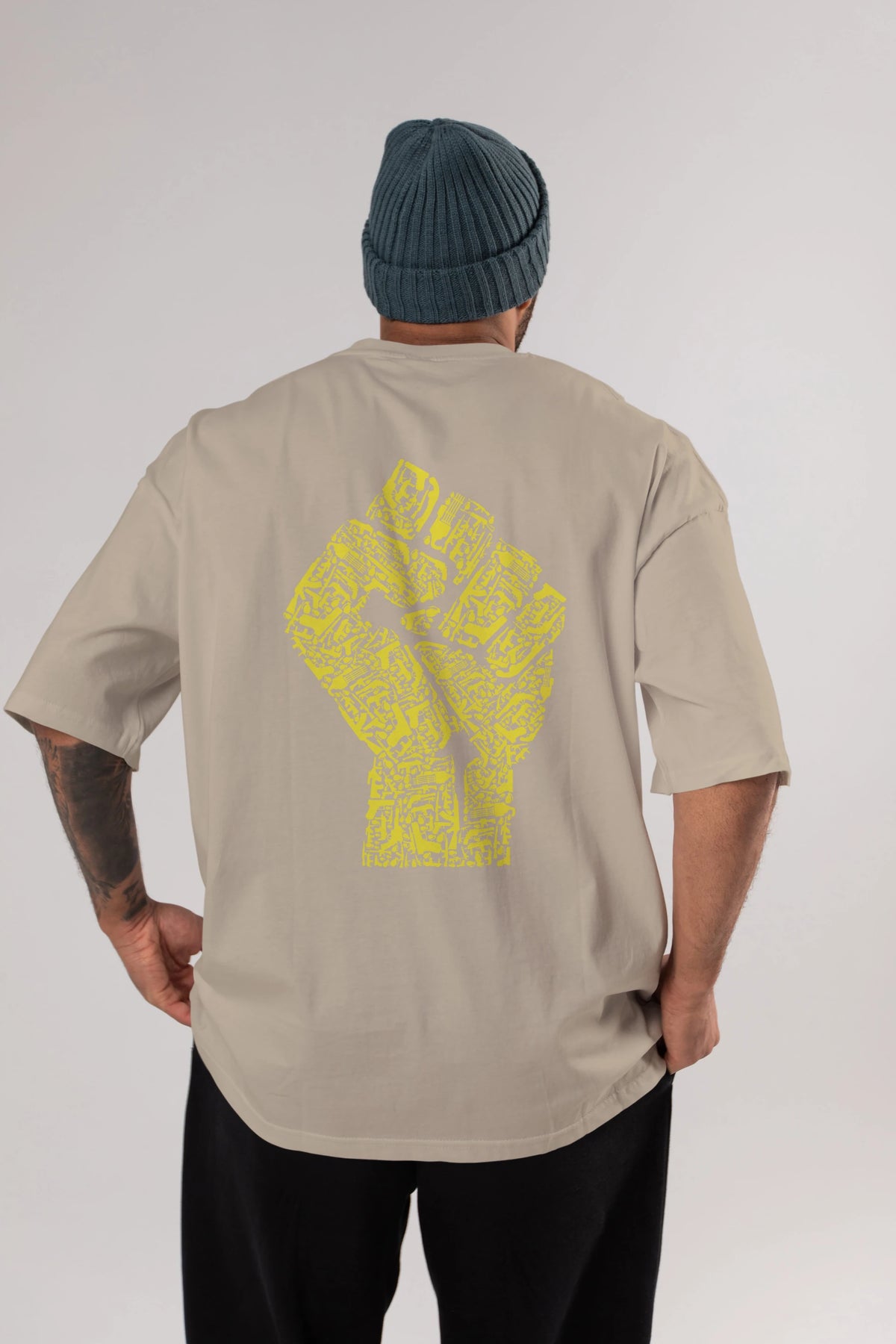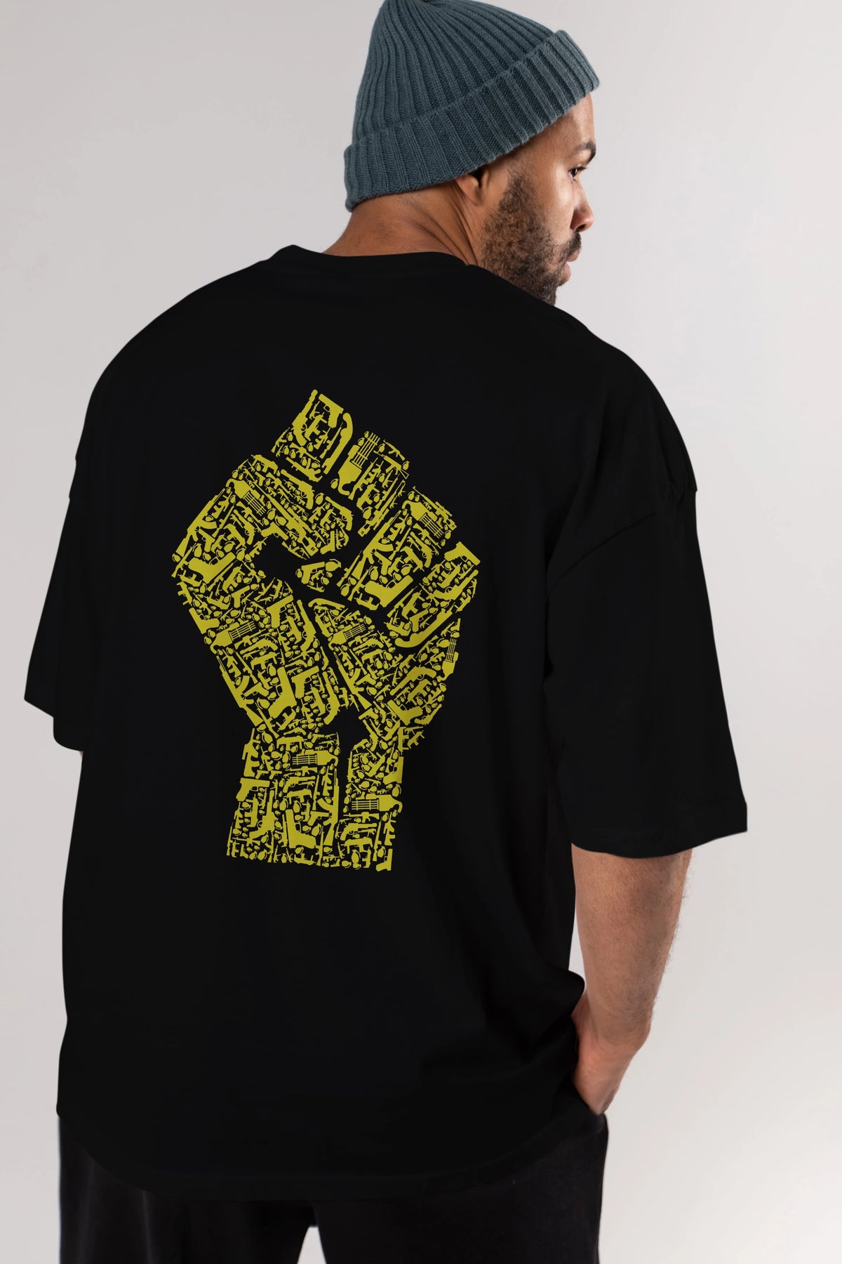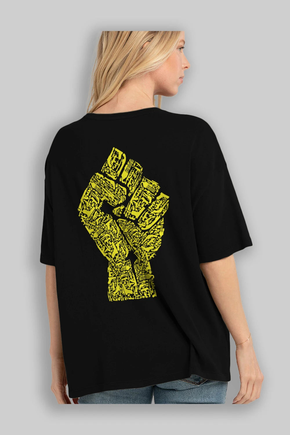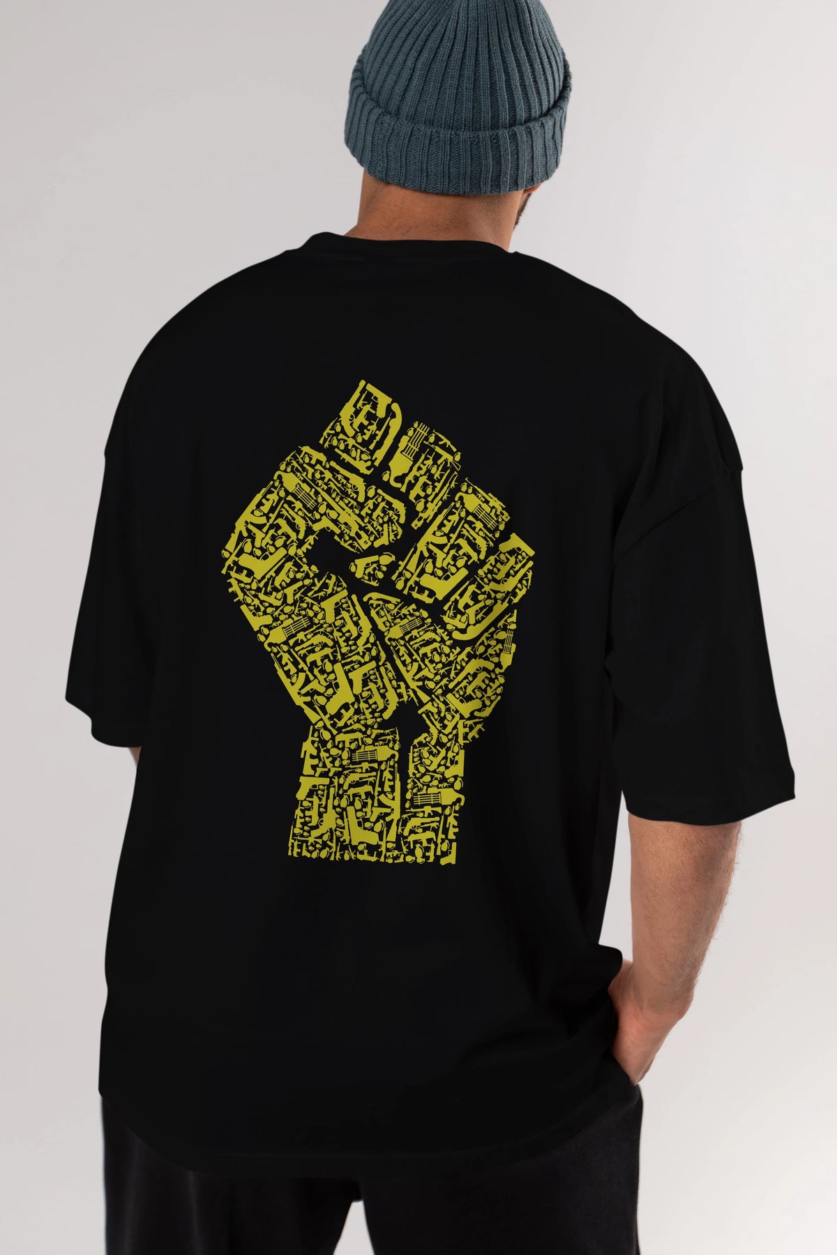 Hand Of Revolution Arka Baskılı Oversize t-shirt %100 pamuk Erkek Kadın Unisex