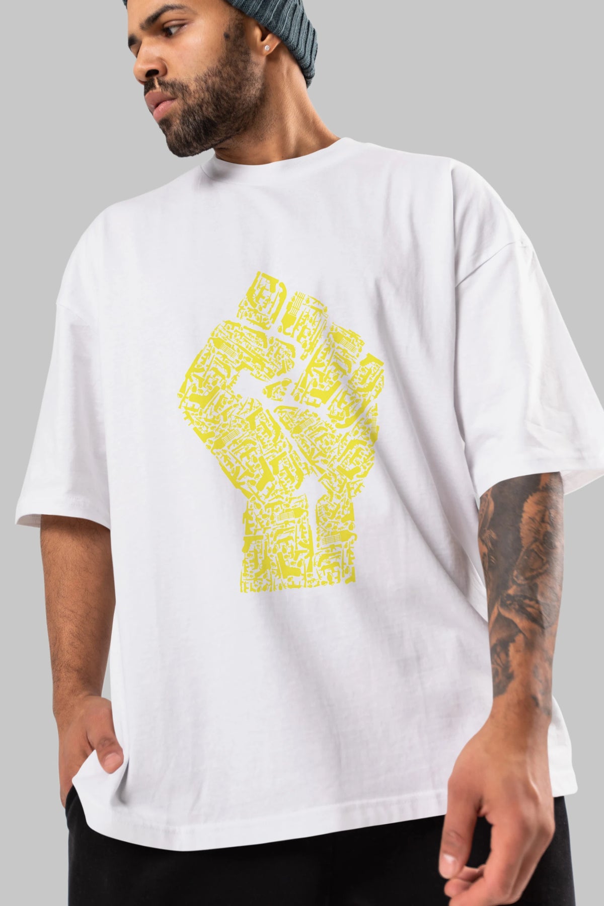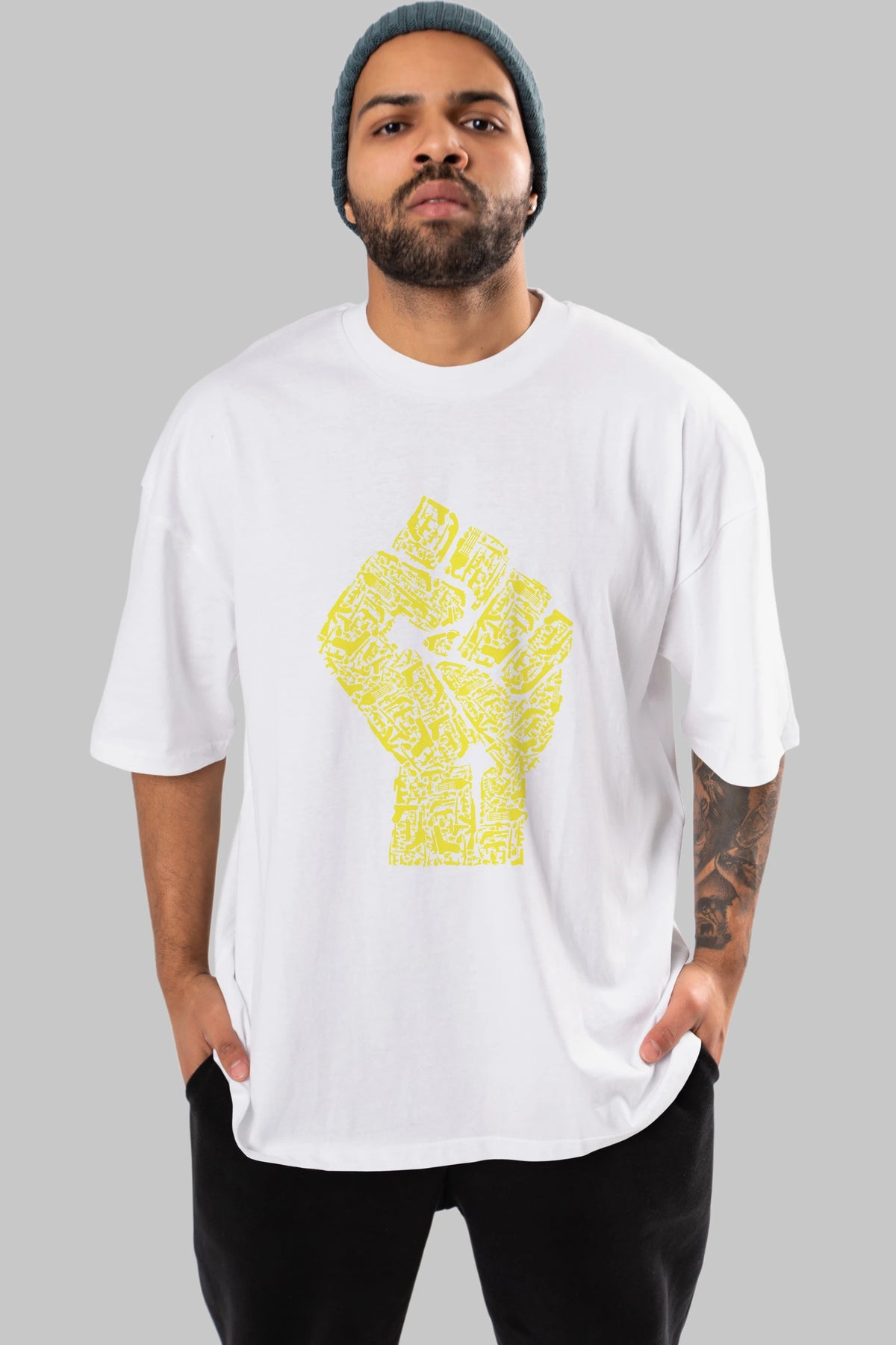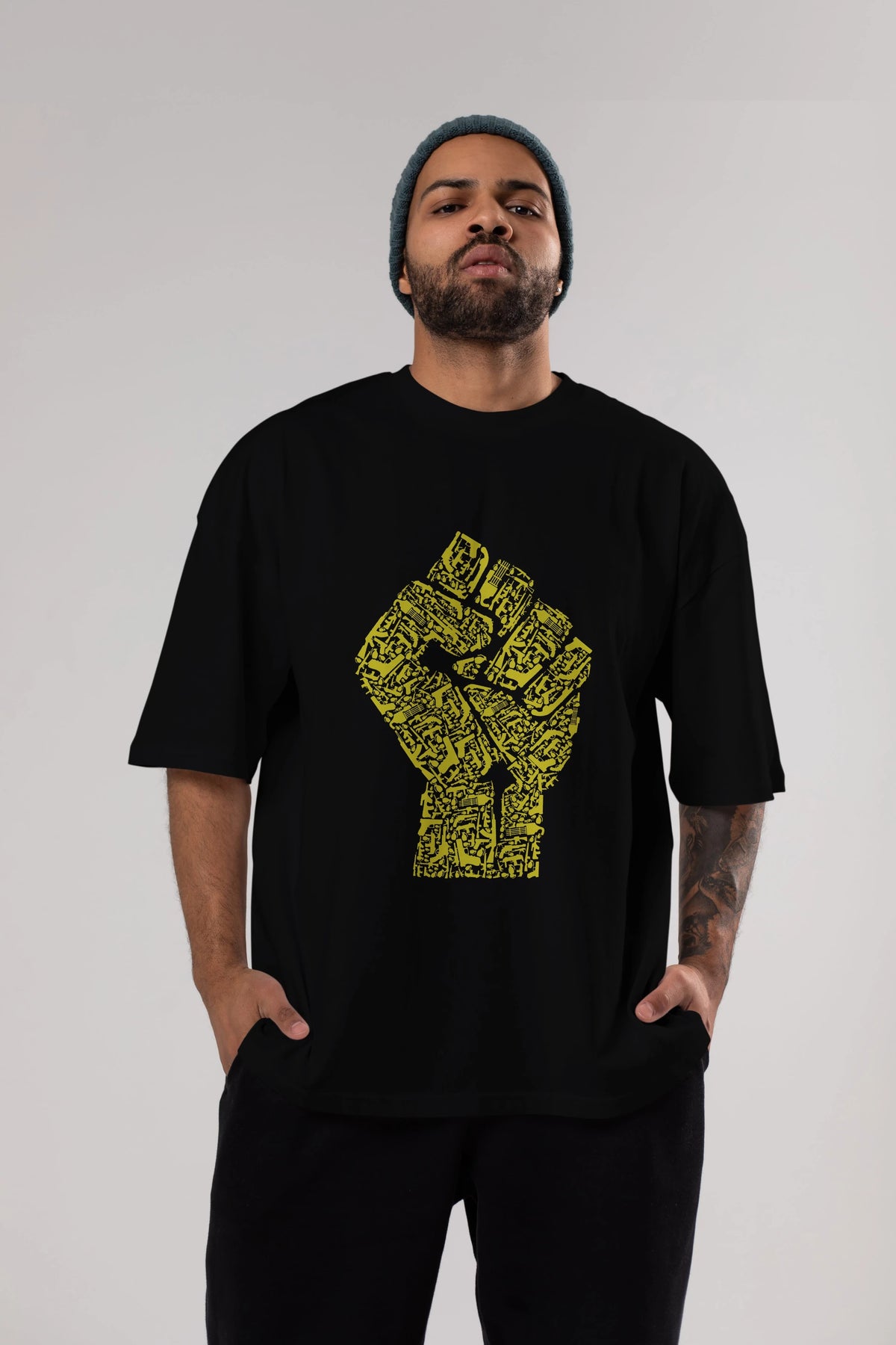 Hand Of Revolution Ön Baskılı Oversize t-shirt %100 pamuk Erkek Kadın Unisex