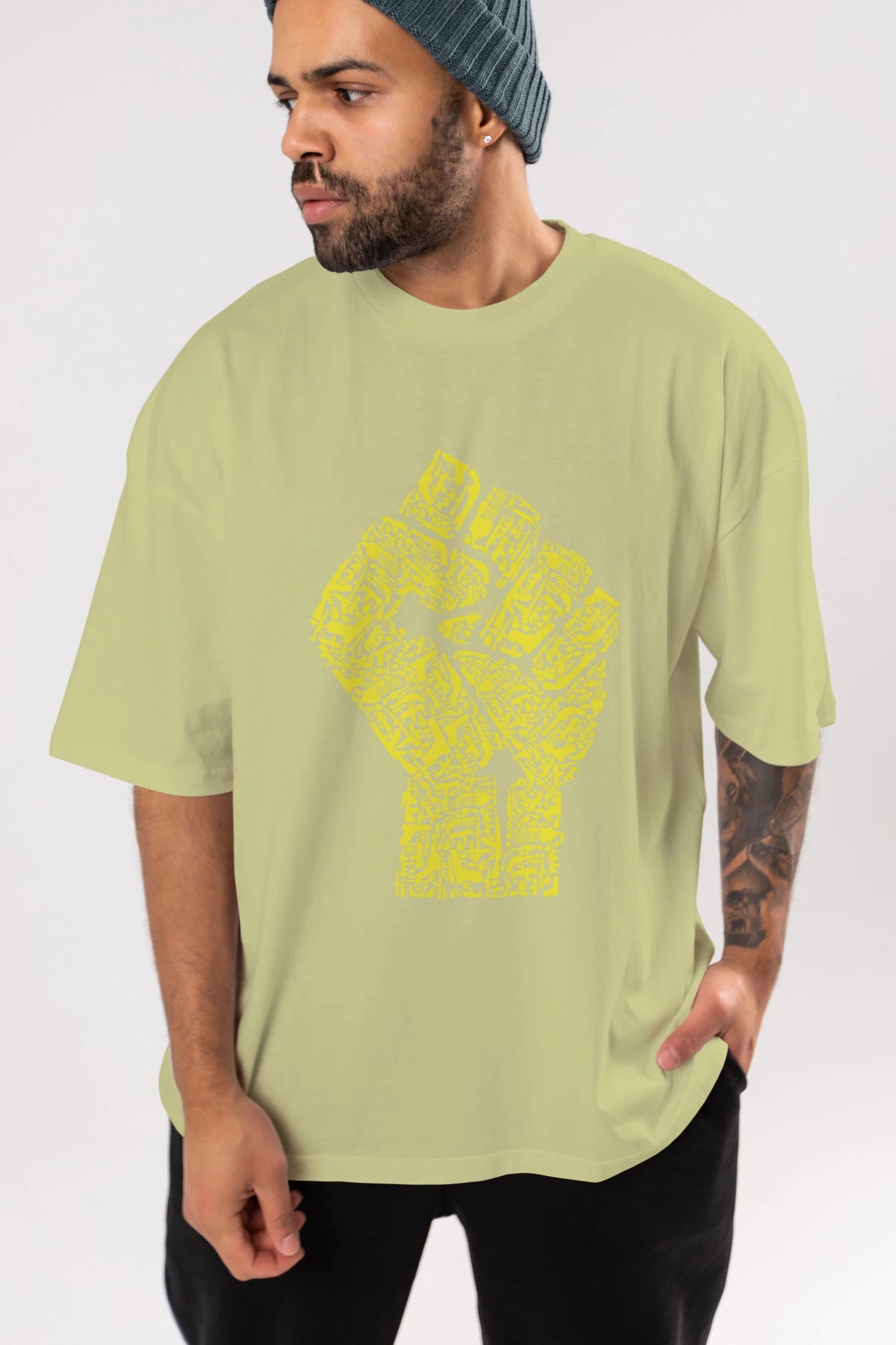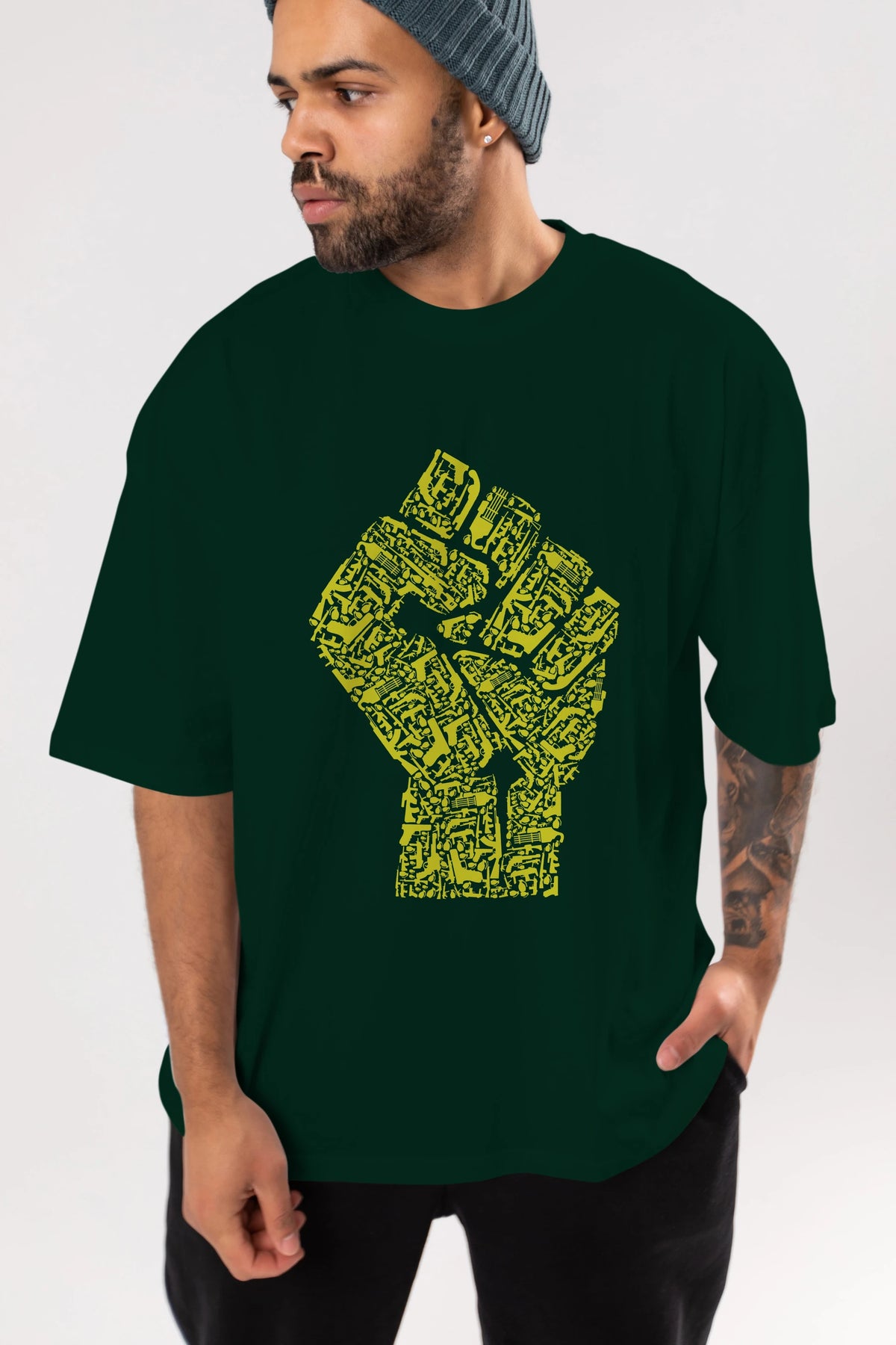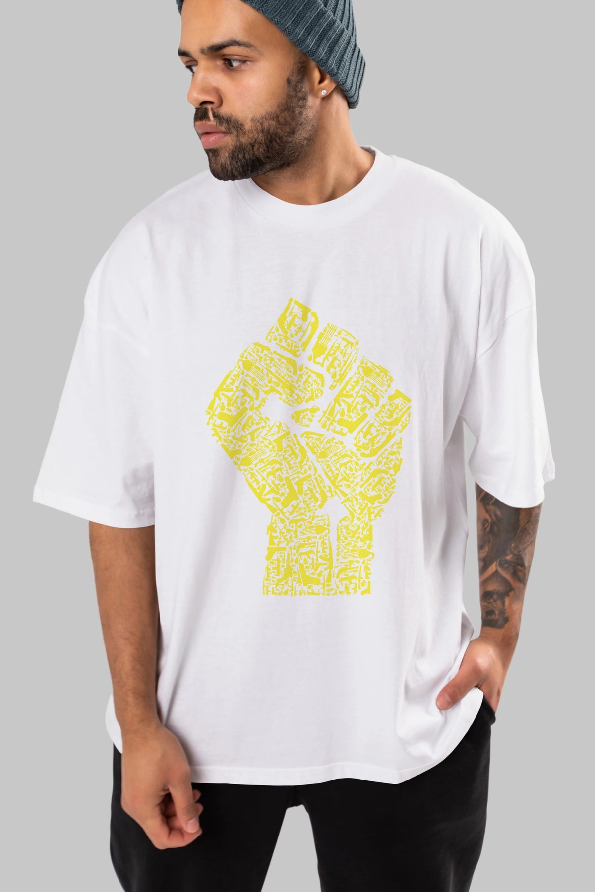 Hand Of Revolution Ön Baskılı Oversize t-shirt %100 pamuk Erkek Kadın Unisex