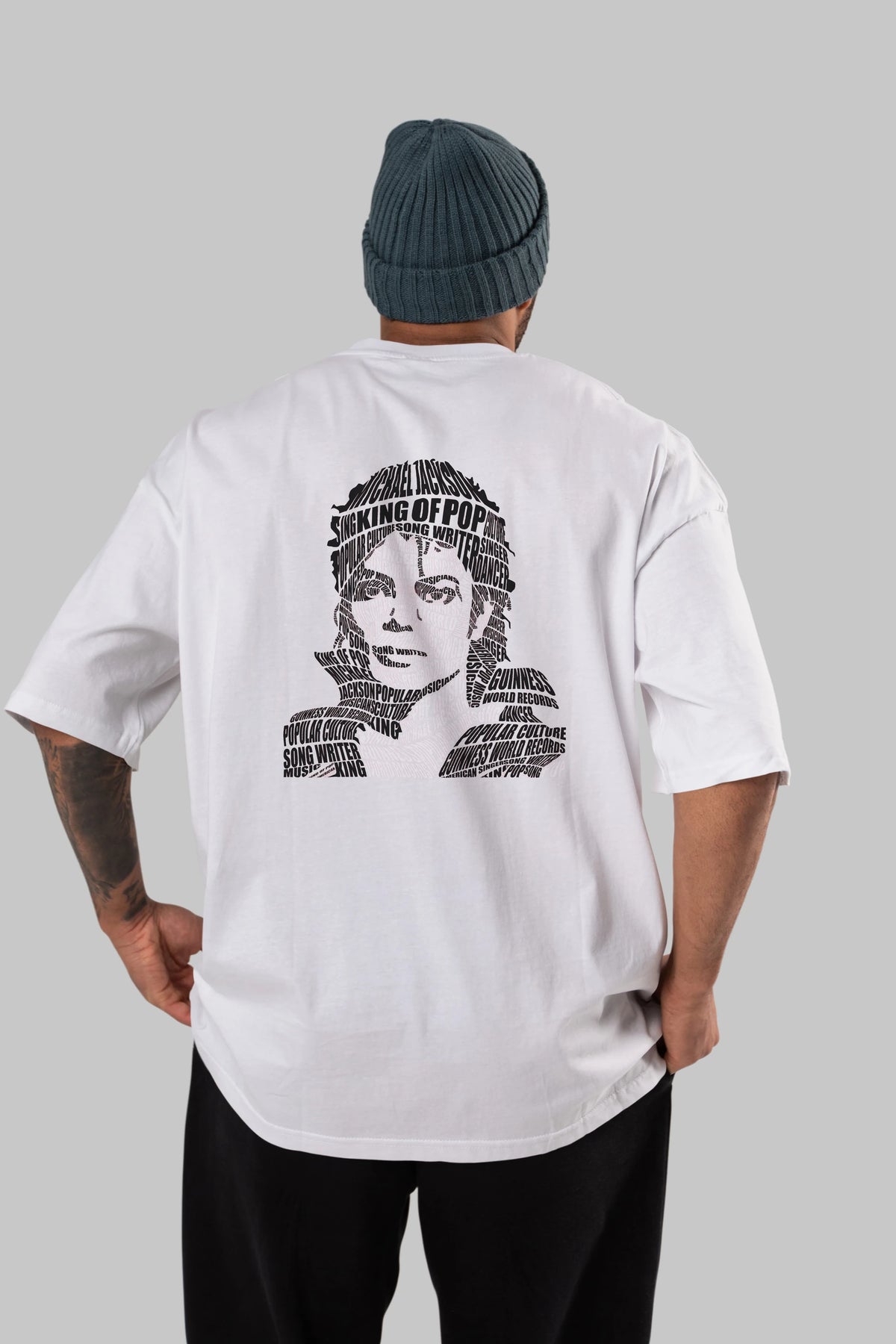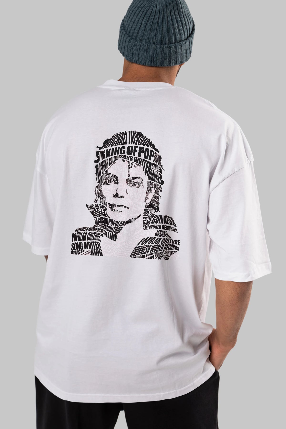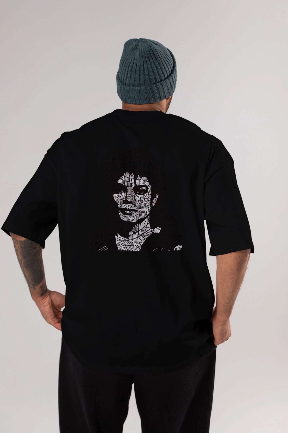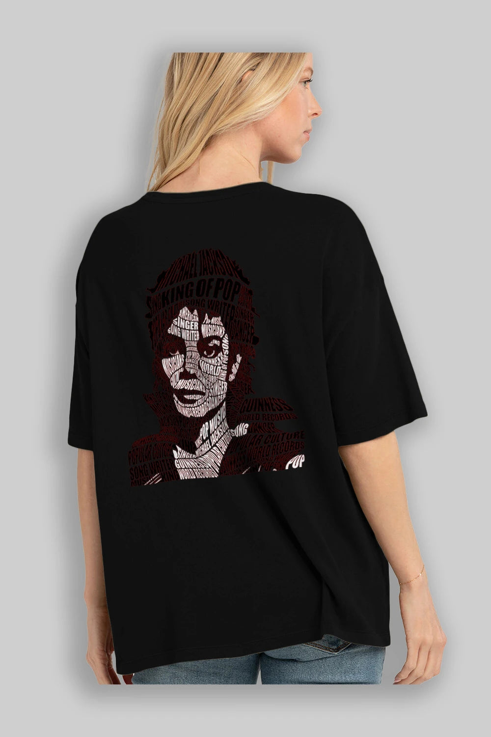 Michael Jackson Calligram Arka Baskılı Oversize t-shirt %100 pamuk Erkek Kadın Unisex