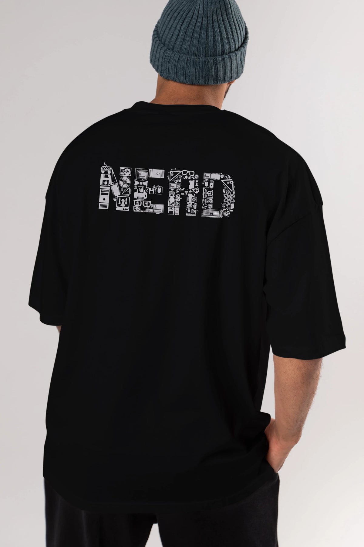 NERD Arka Baskılı Oversize t-shirt %100 pamuk Erkek Kadın Unisex