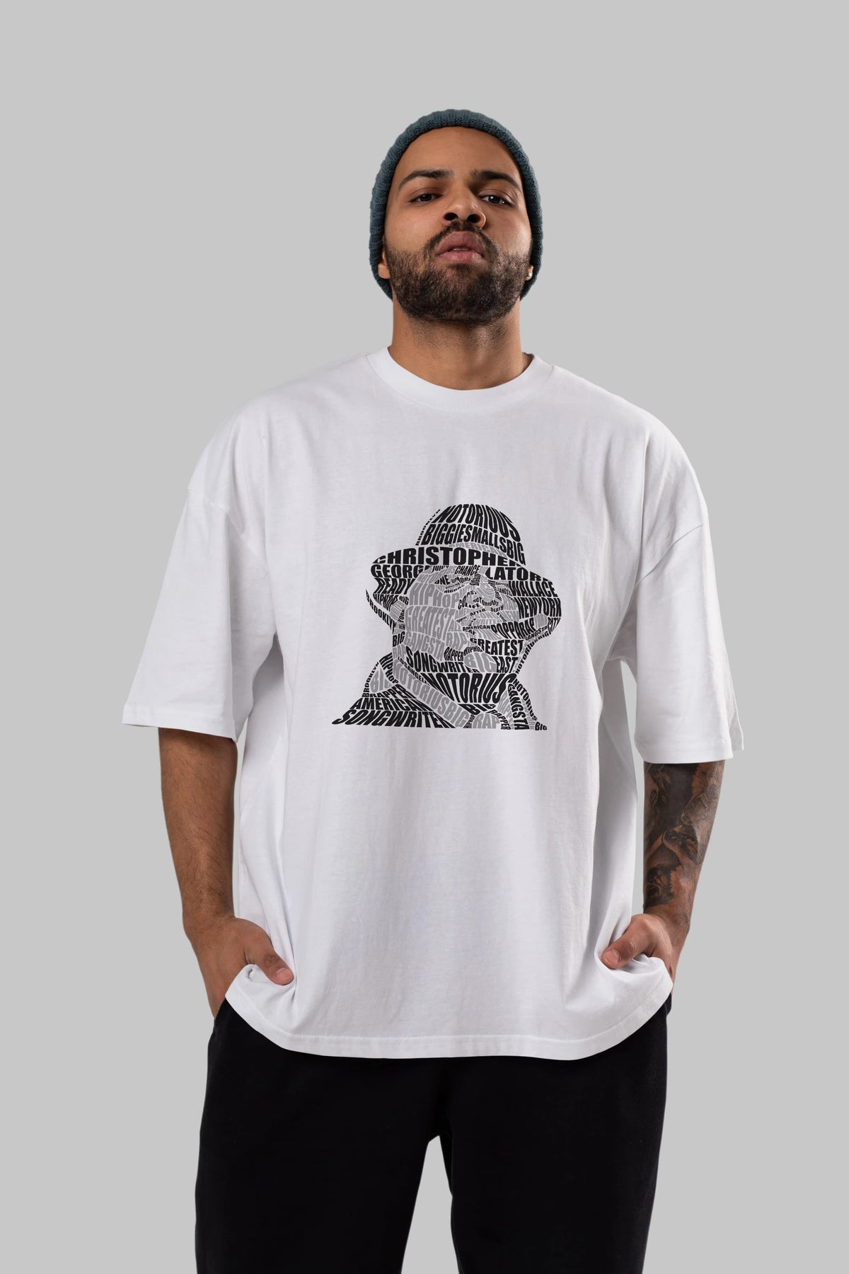 Notorious Big Calligram Ön Baskılı Oversize t-shirt %100 pamuk Erkek Kadın Unisex