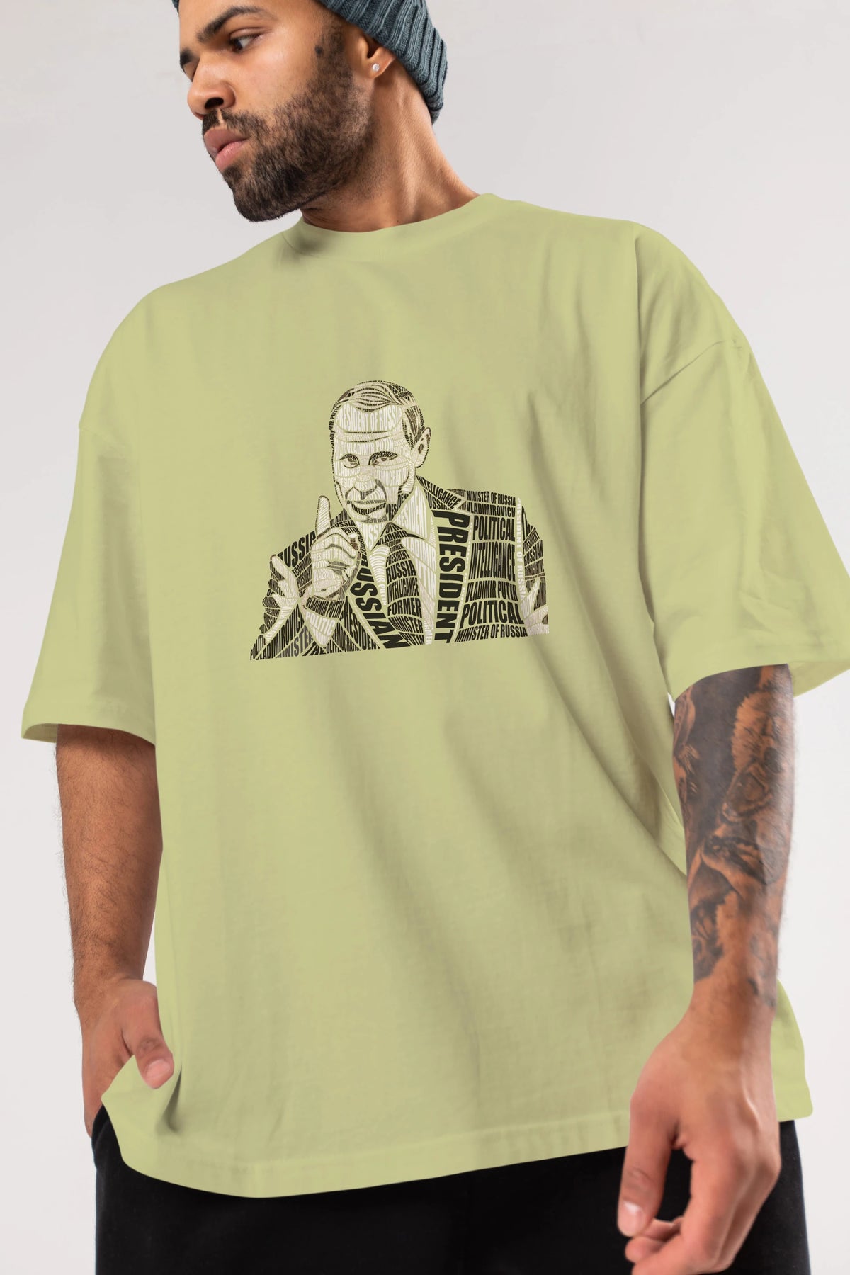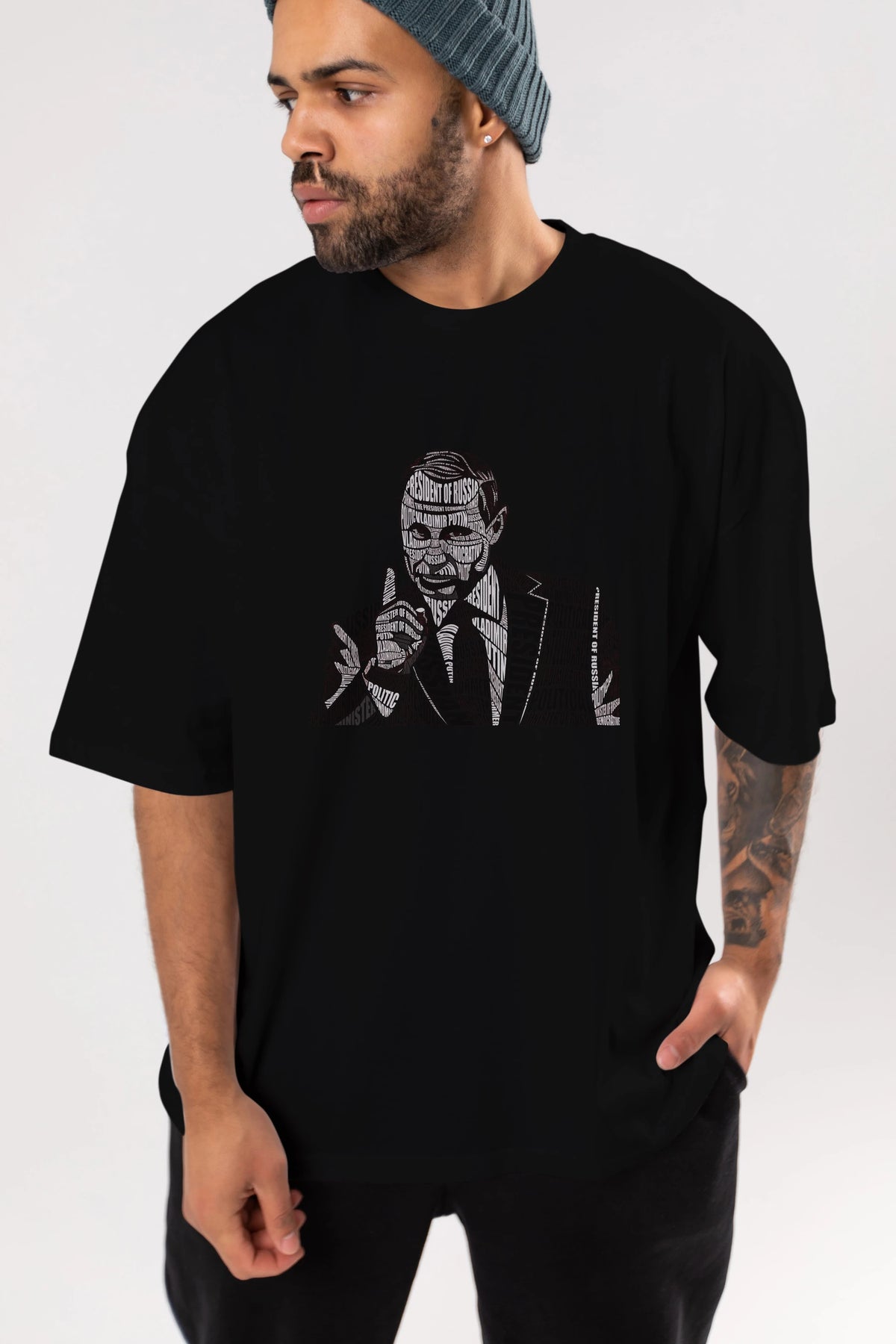 Putin Calligram Ön Baskılı Oversize t-shirt %100 pamuk Erkek Kadın Unisex