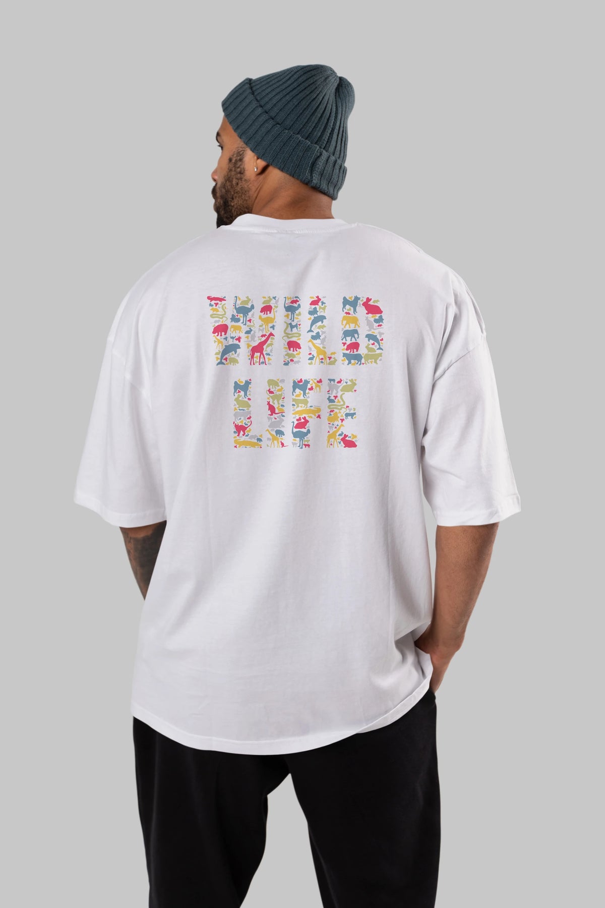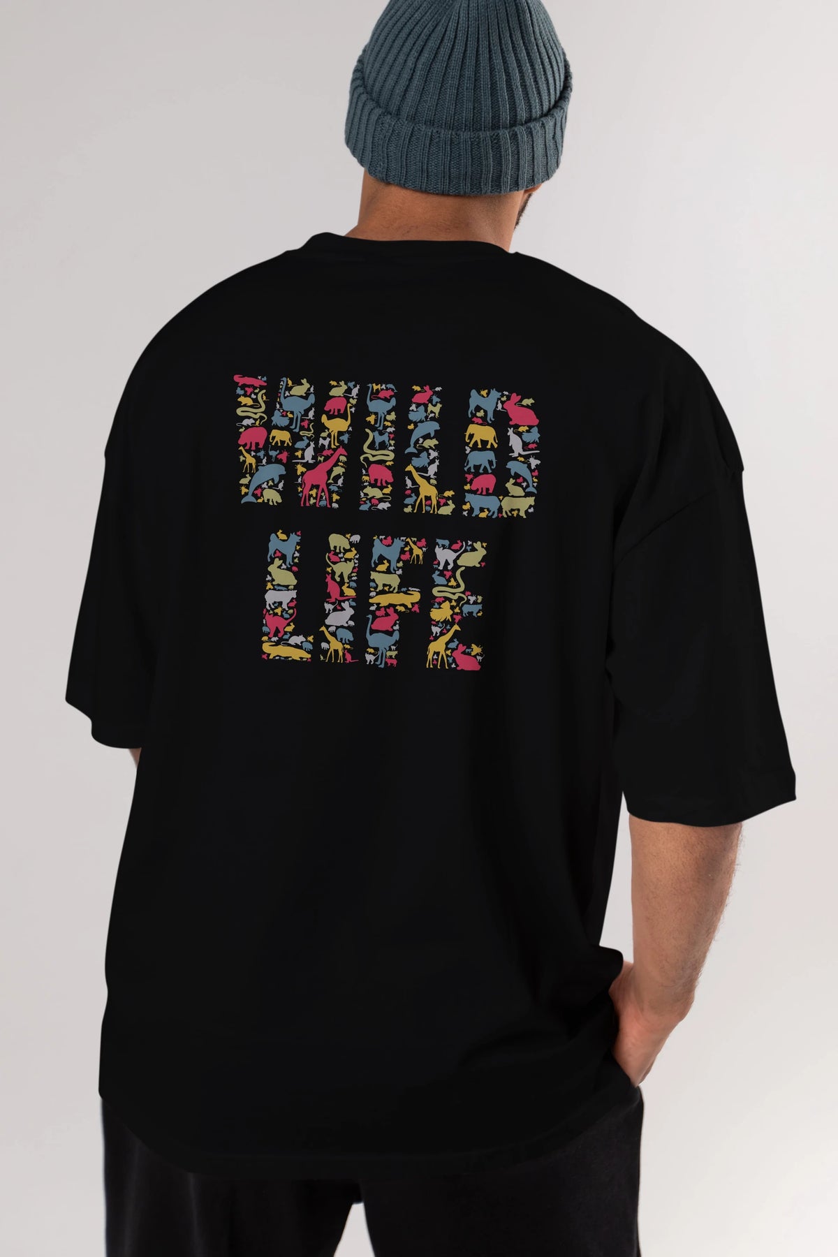 Wild Life Arka Baskılı Oversize t-shirt %100 pamuk Erkek Kadın Unisex