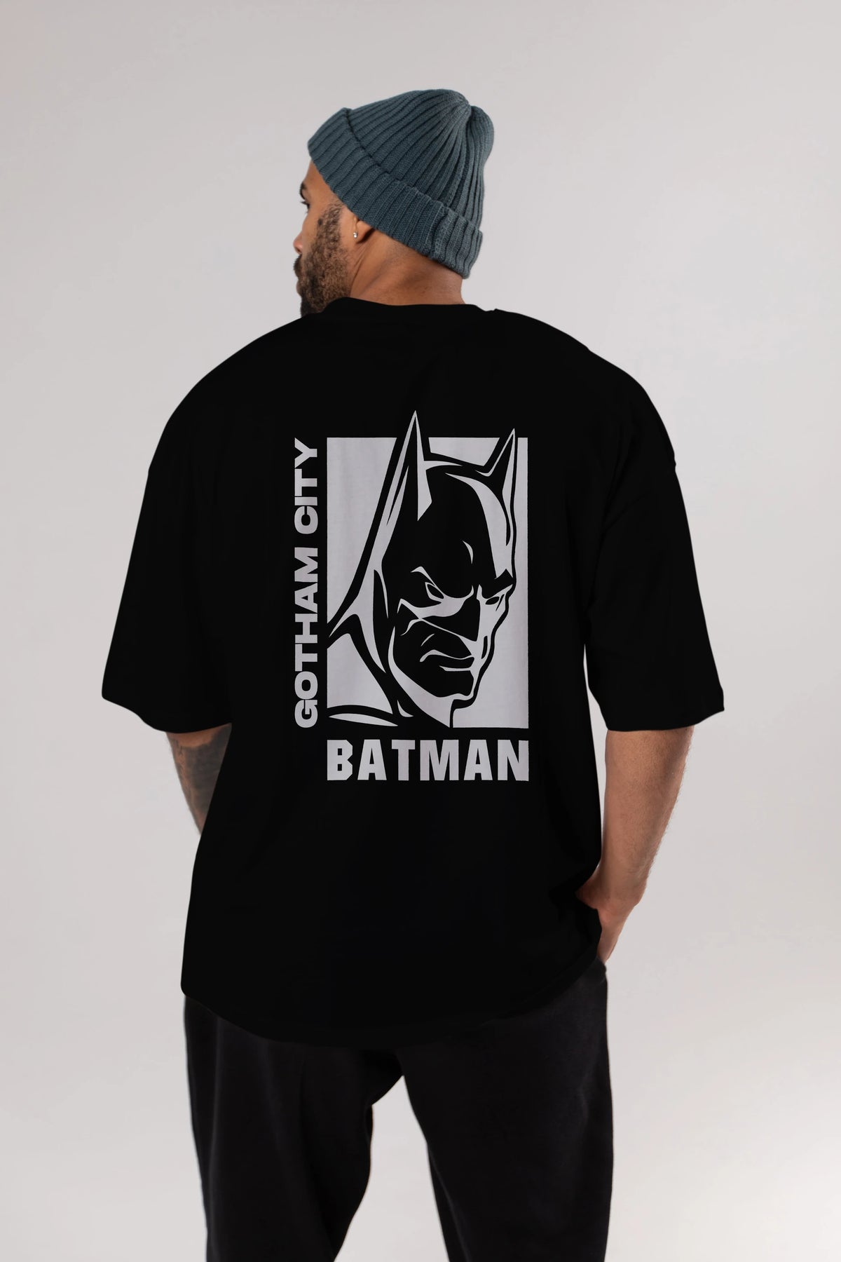 Batman (17) Arka Baskılı Oversize t-shirt Erkek Kadın Unisex %100 Pamuk Bisiklet Yaka tişort