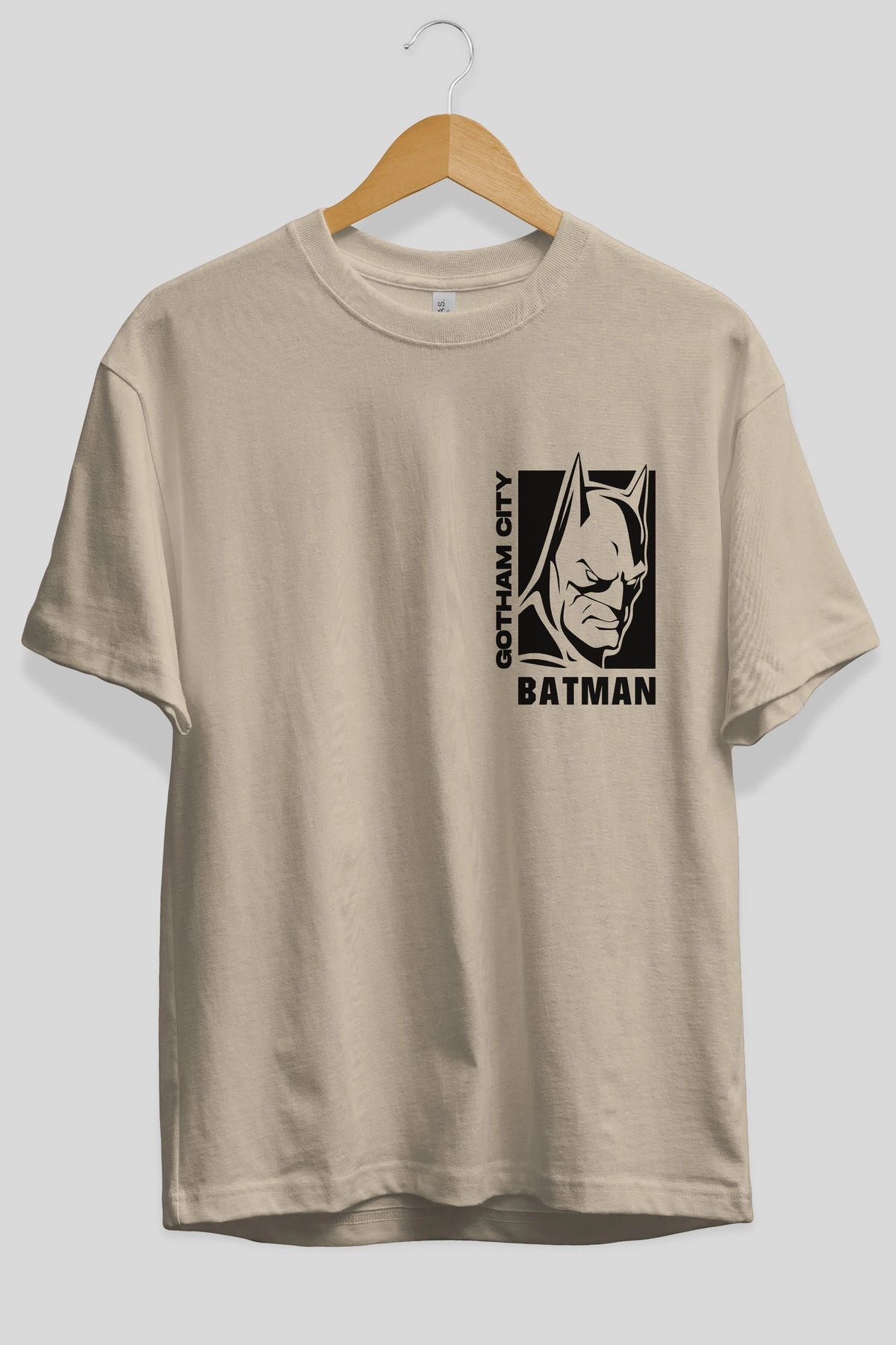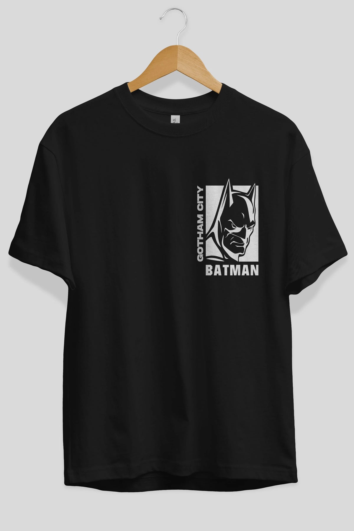 Batman (17) Ön Sol Baskılı Oversize t-shirt Erkek Kadın Unisex %100 Pamuk Bisiklet Yaka tişort