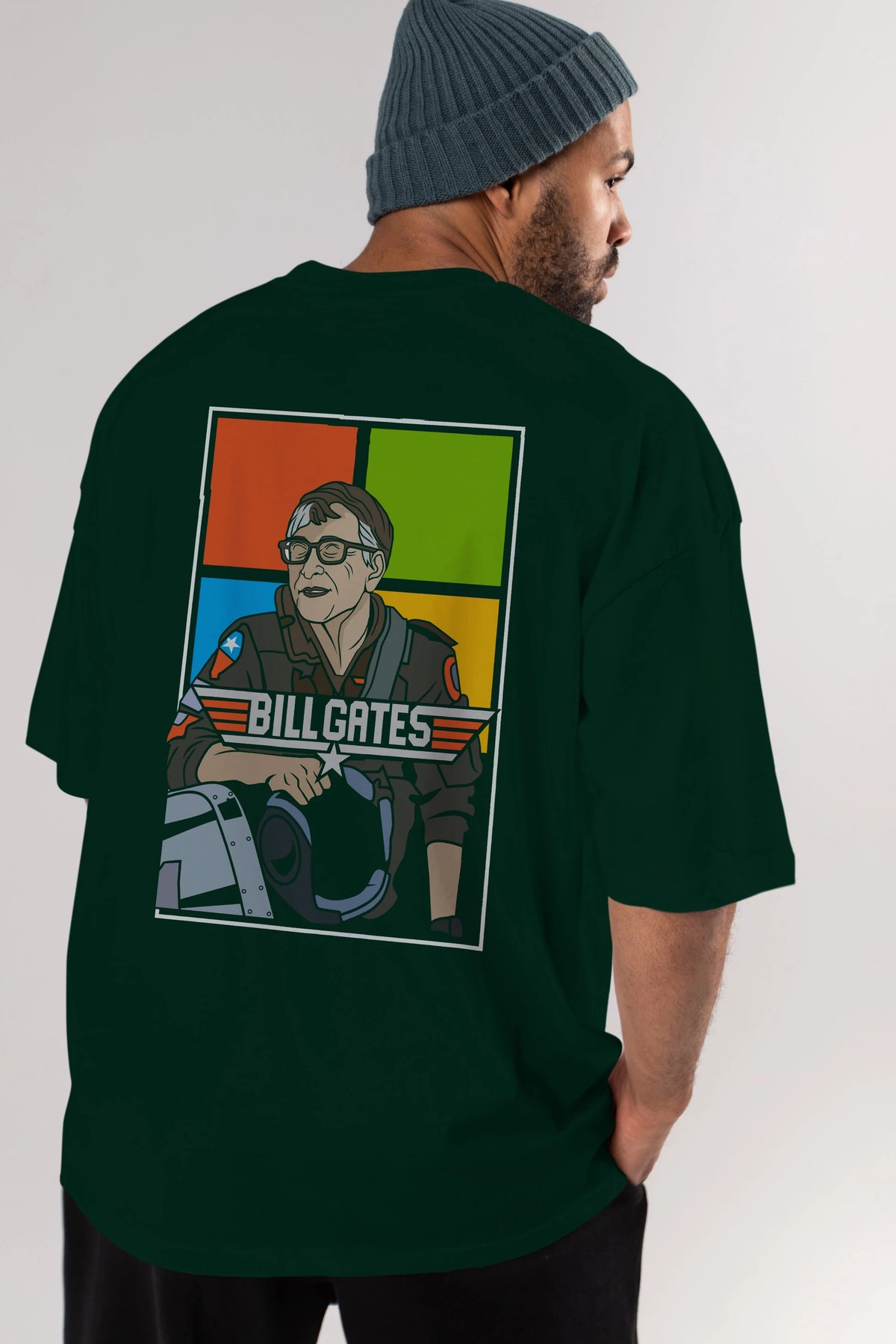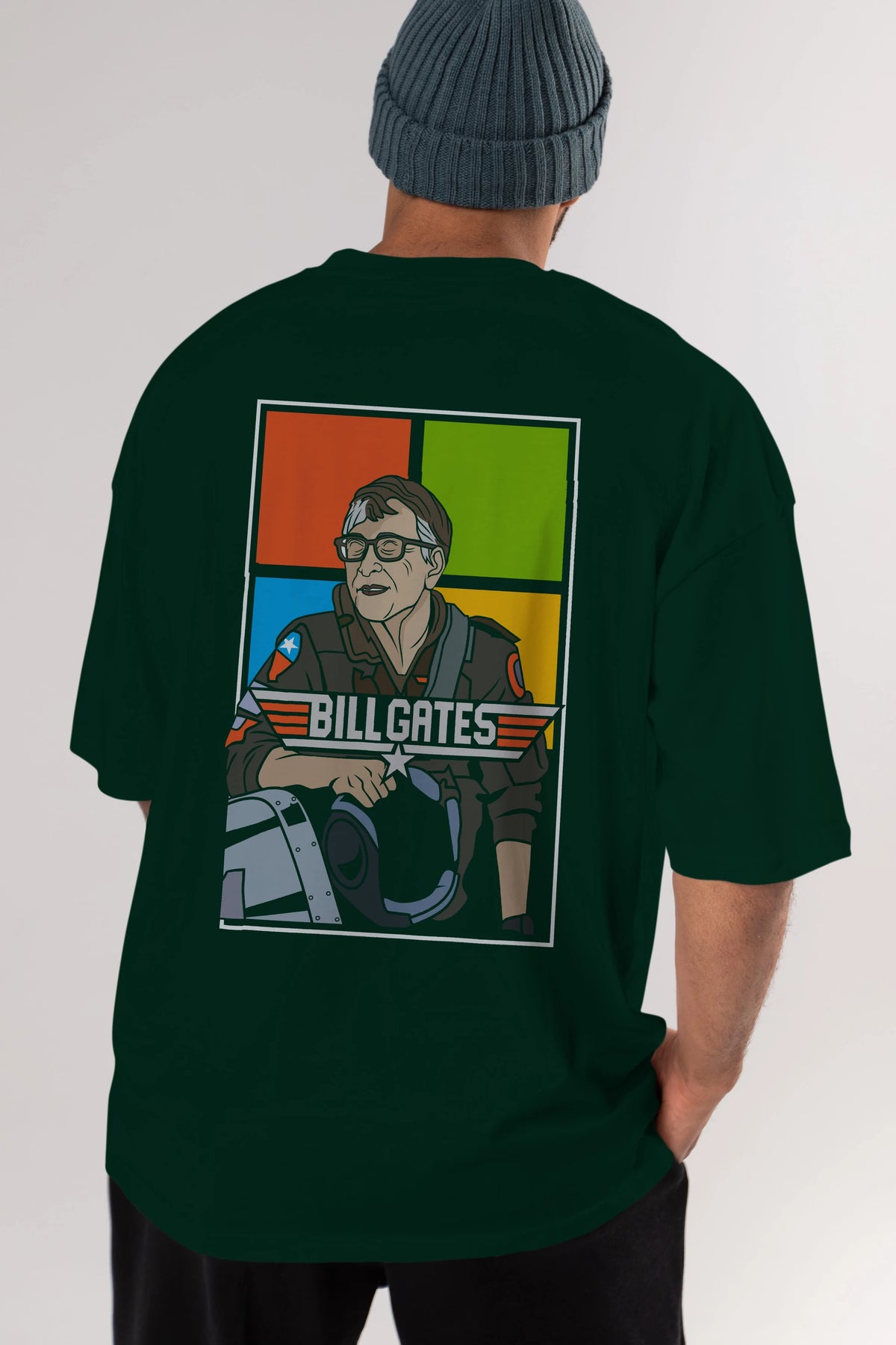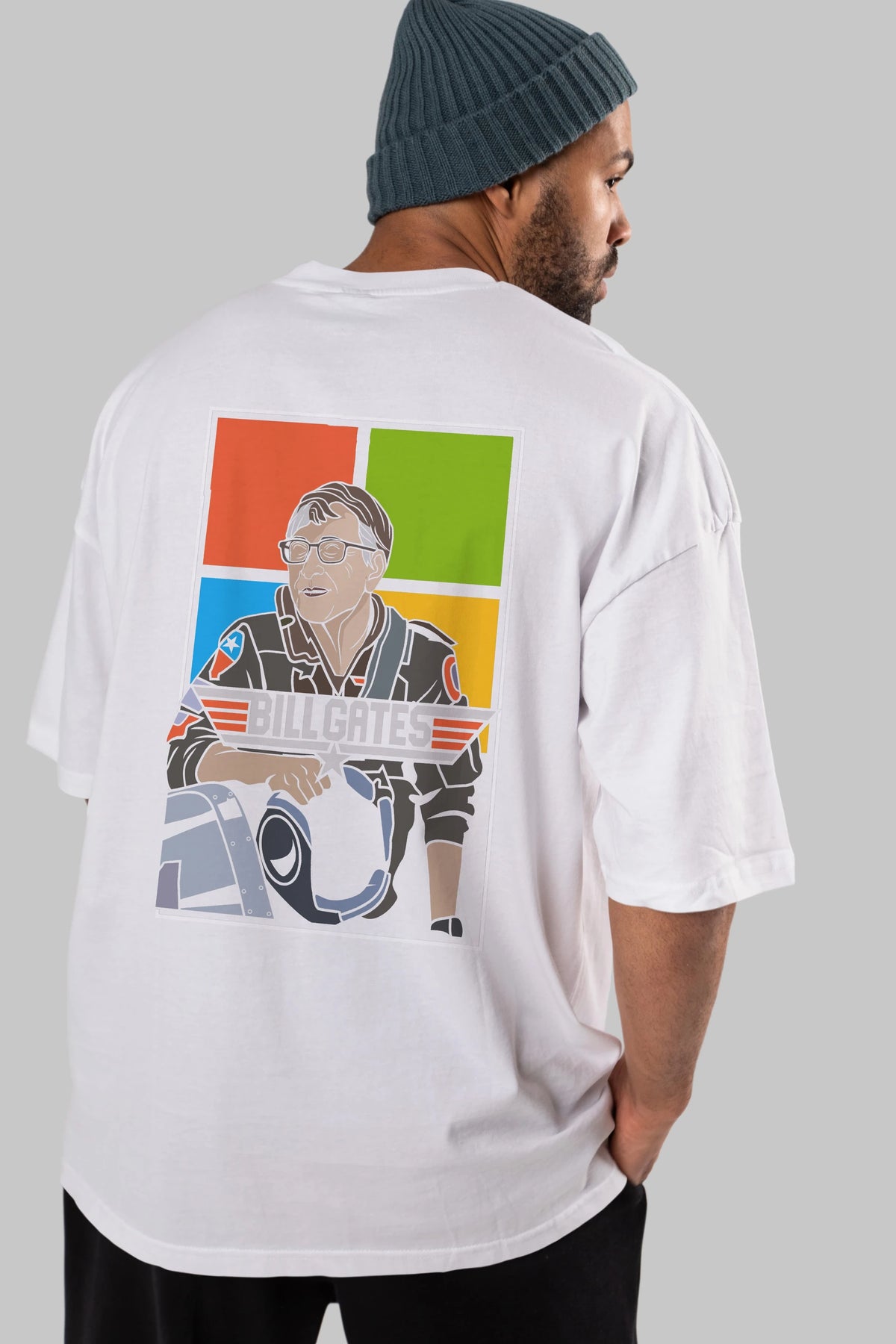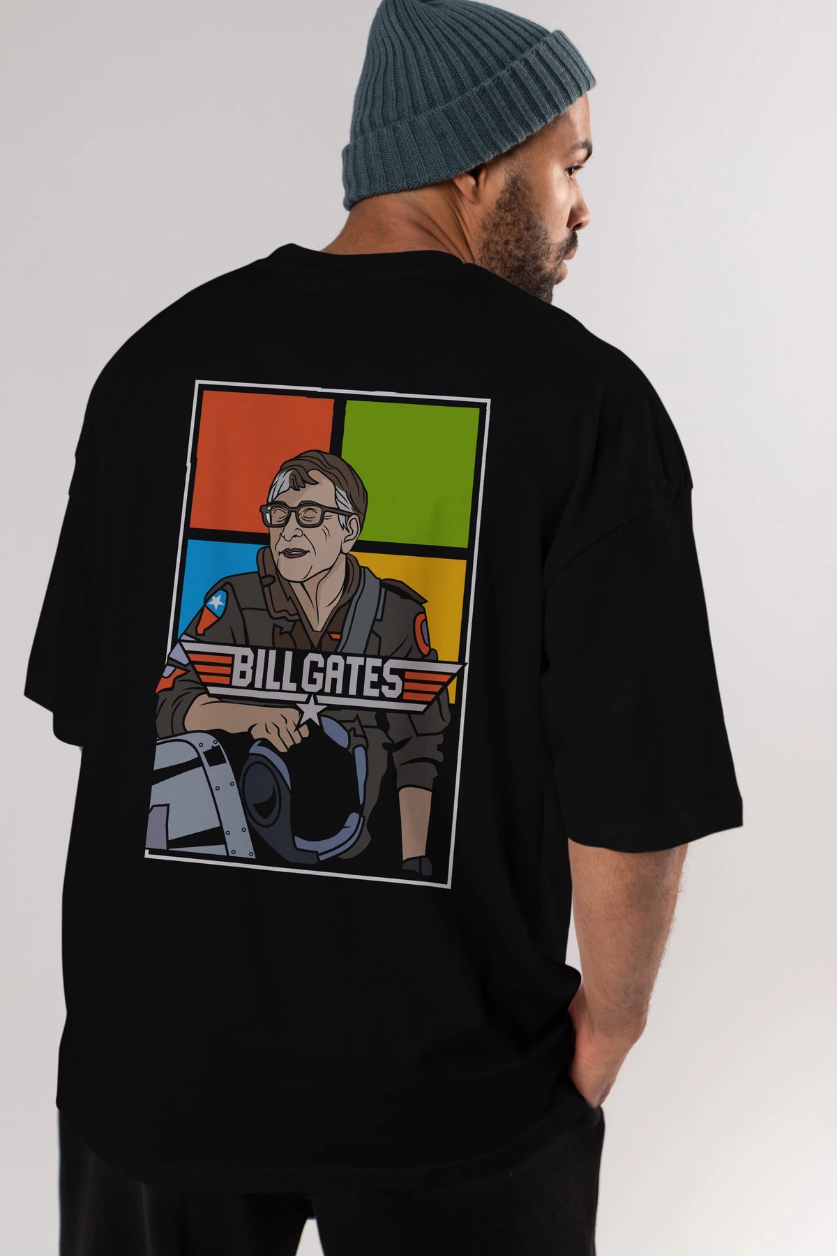Bill Gates Top Gun Arka Baskılı Oversize t-shirt Erkek Kadın Unisex %100 Pamuk tişort