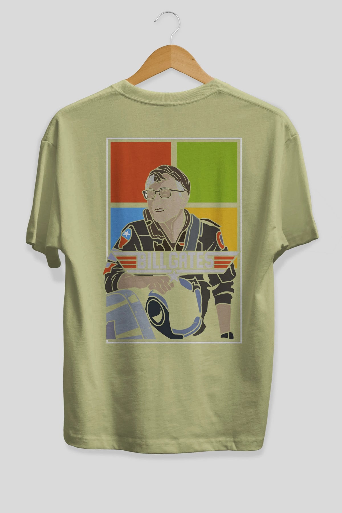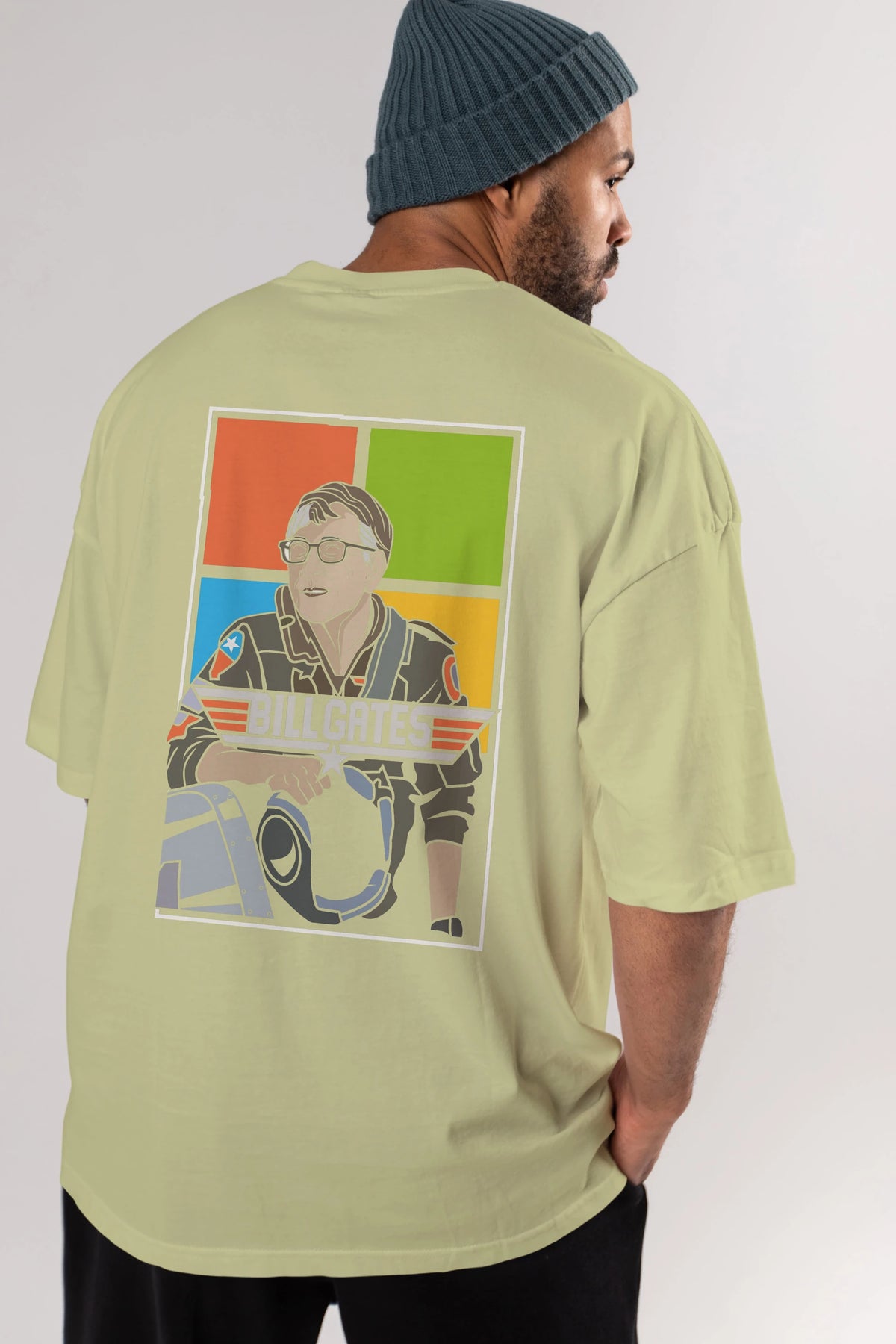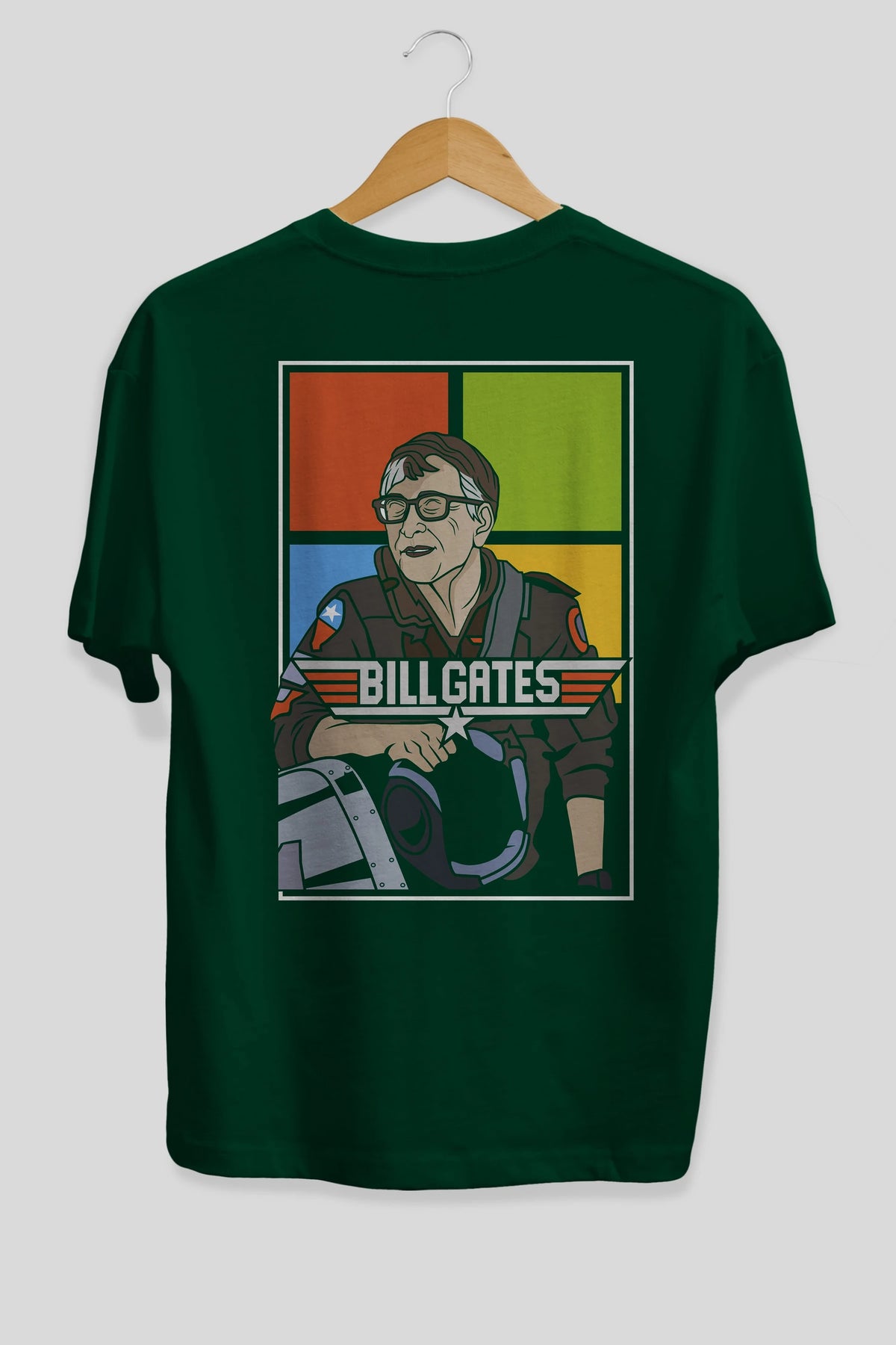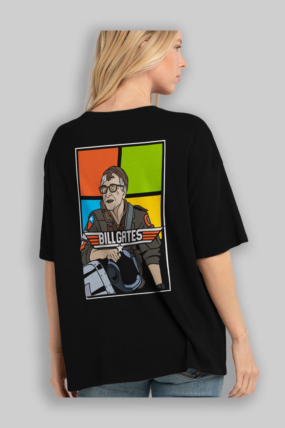 Bill Gates Top Gun Arka Baskılı Oversize t-shirt Erkek Kadın Unisex %100 Pamuk tişort