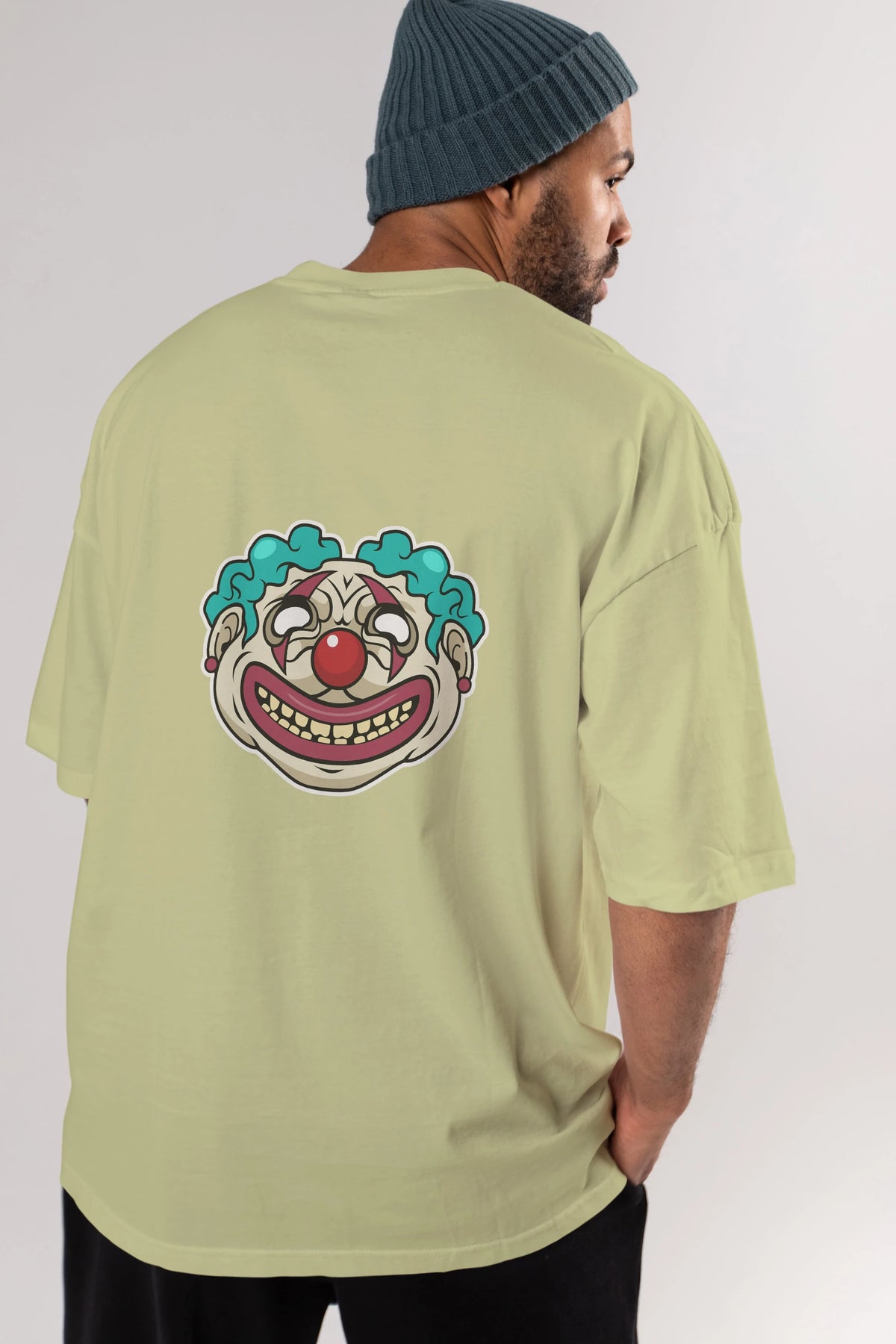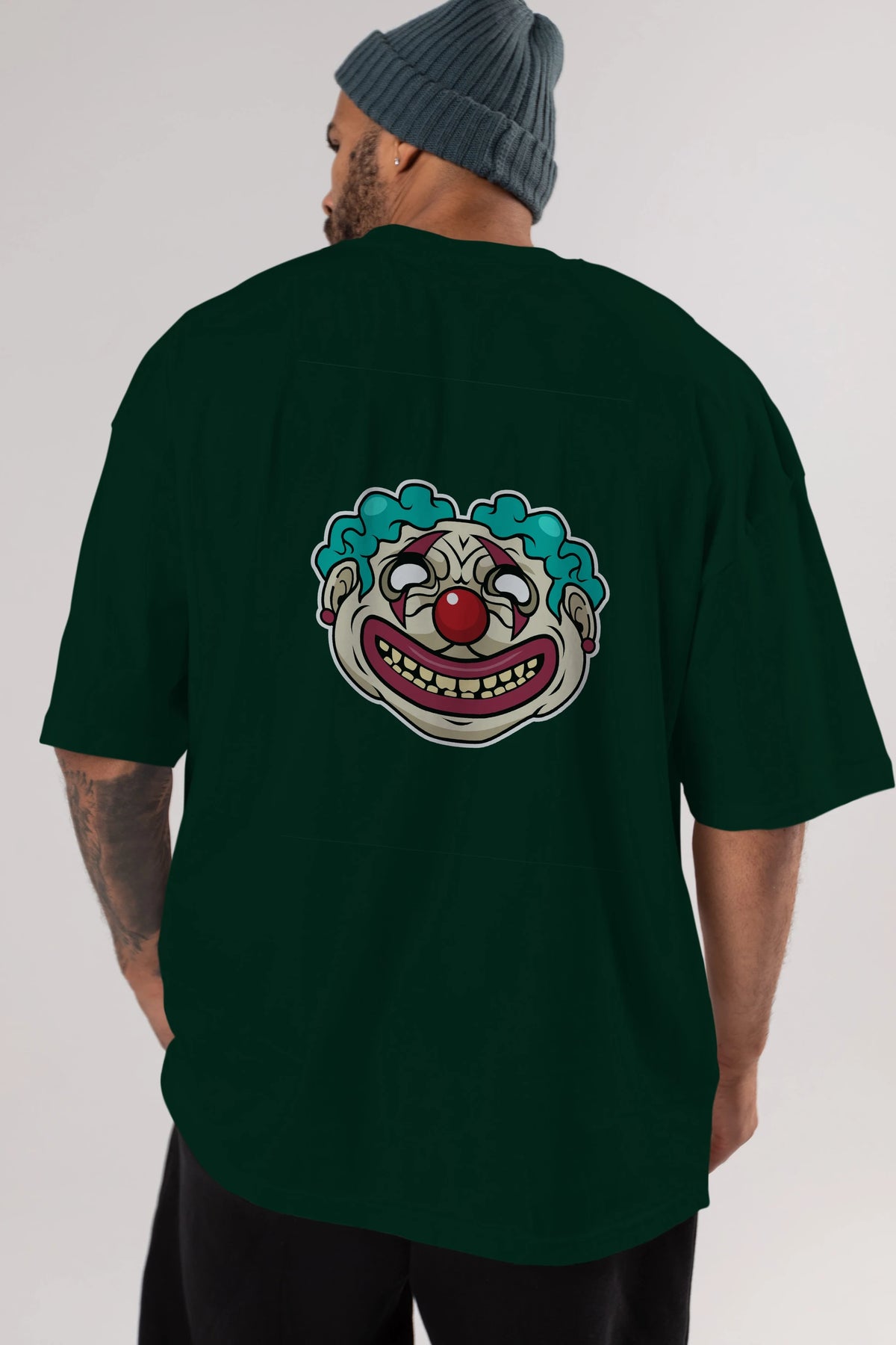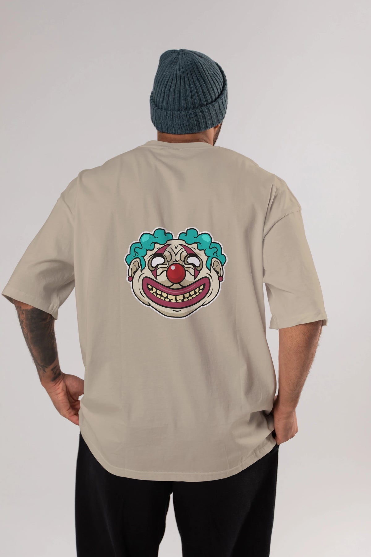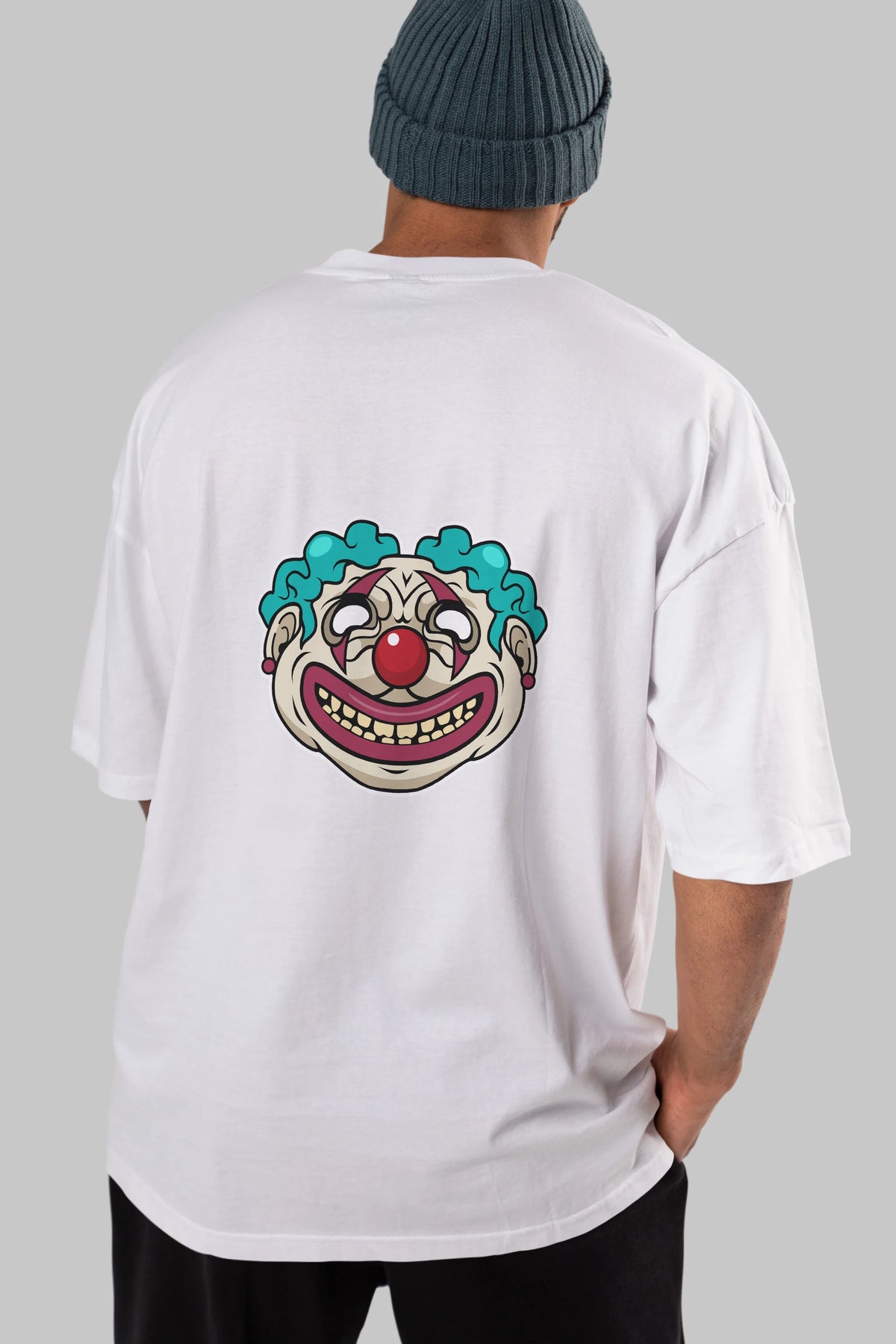 Clown Head Arka Baskılı Oversize t-shirt Erkek Kadın Unisex %100 Pamuk tişort