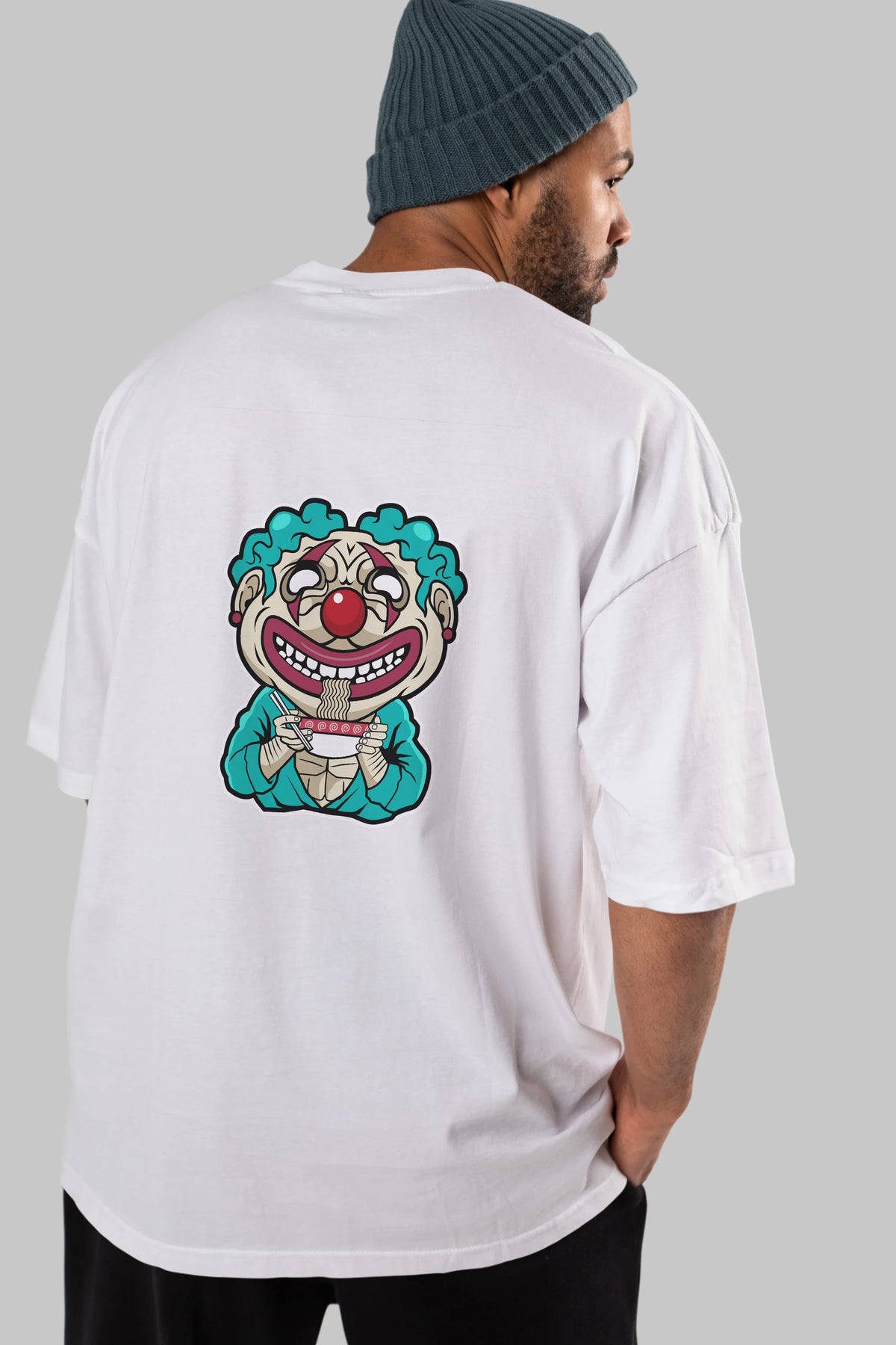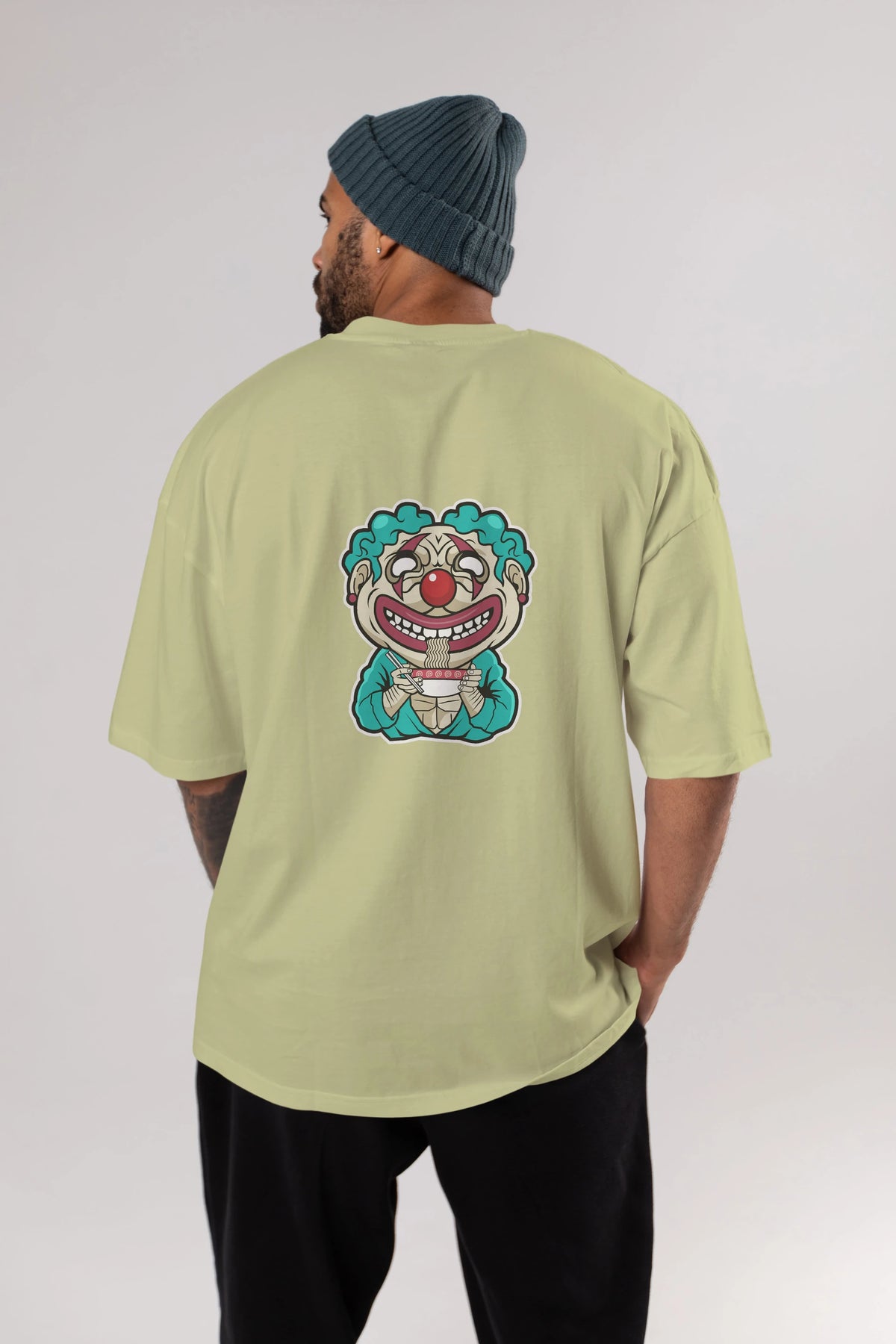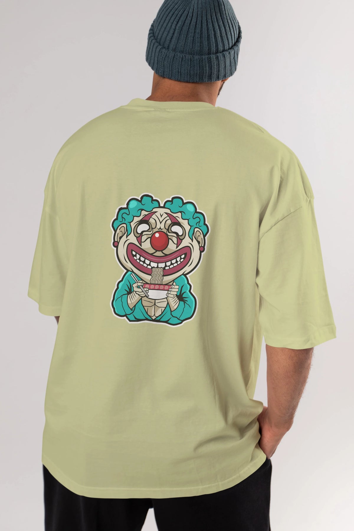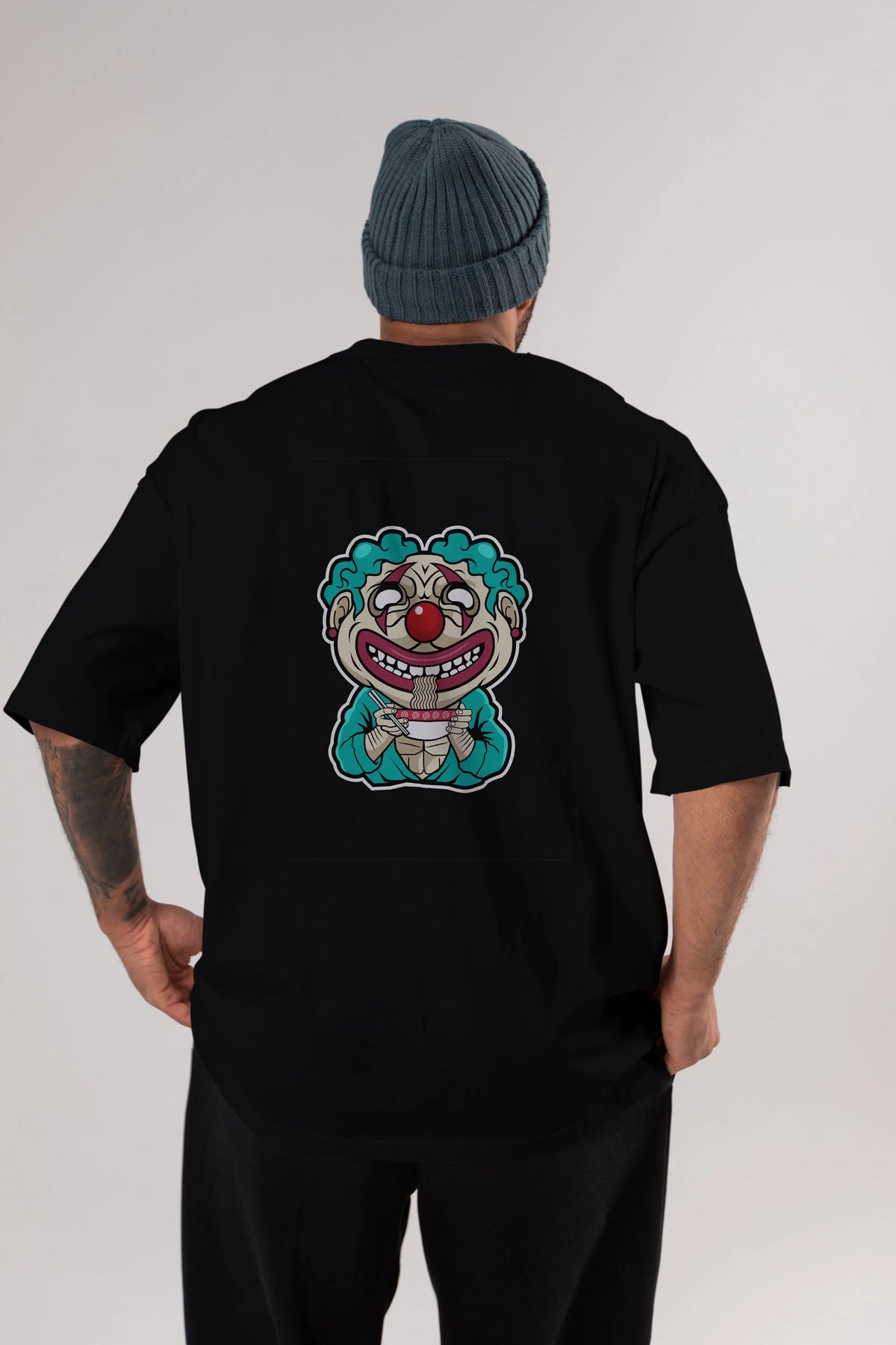 Clown Ramen Arka Baskılı Oversize t-shirt Erkek Kadın Unisex %100 Pamuk tişort