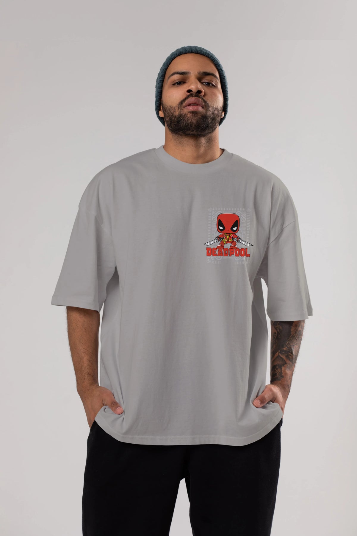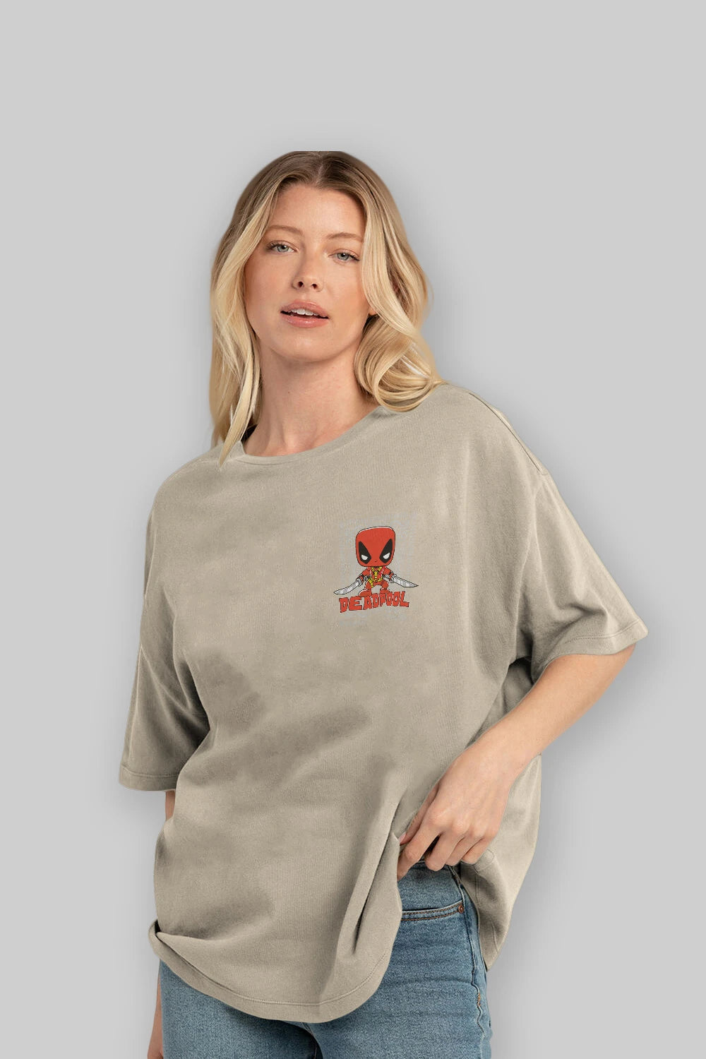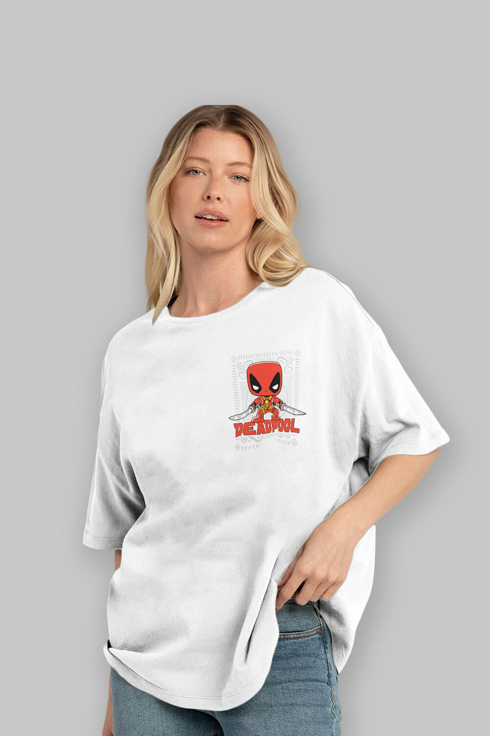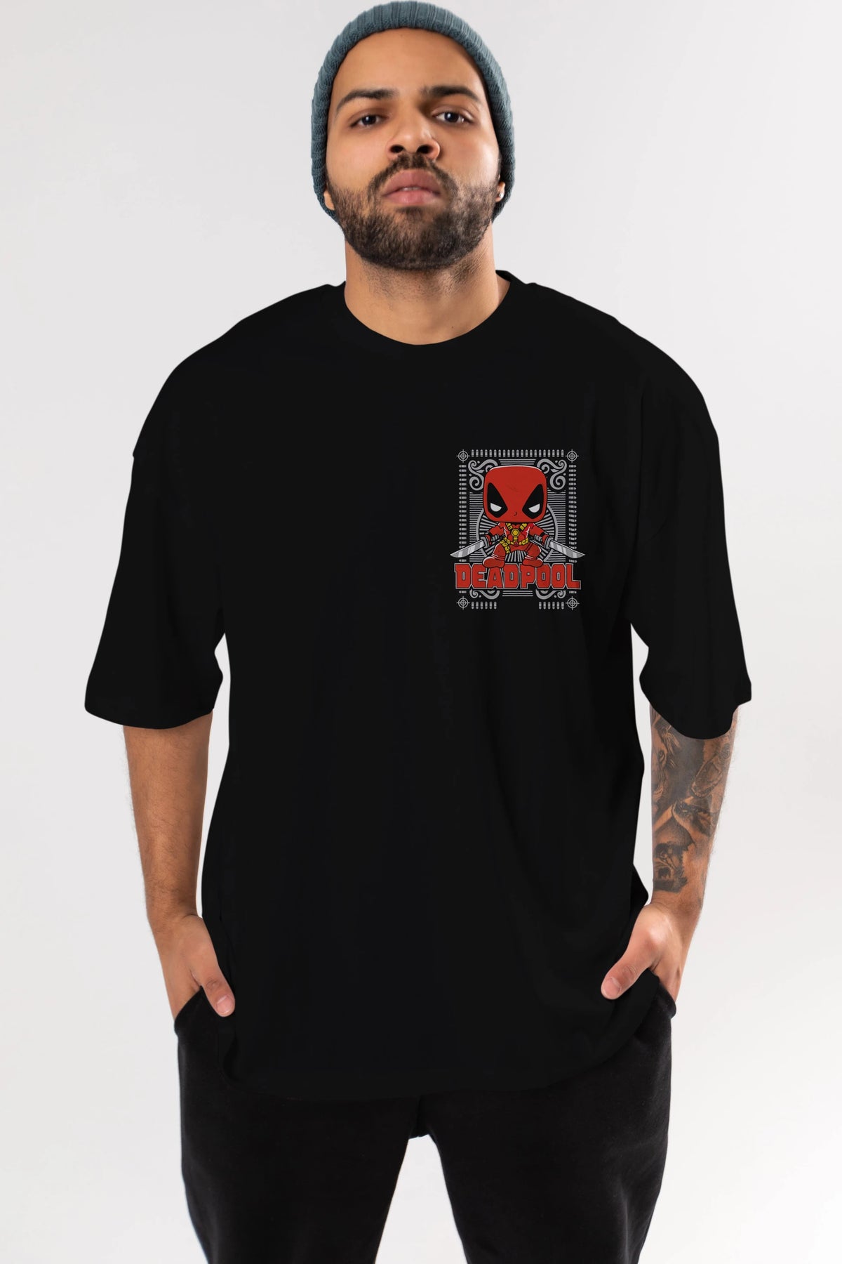 Deadpool (17) Ön Sol Baskılı Oversize t-shirt Erkek Kadın Unisex %100 Pamuk Bisiklet Yaka tişort