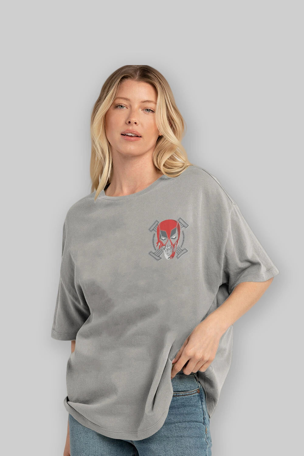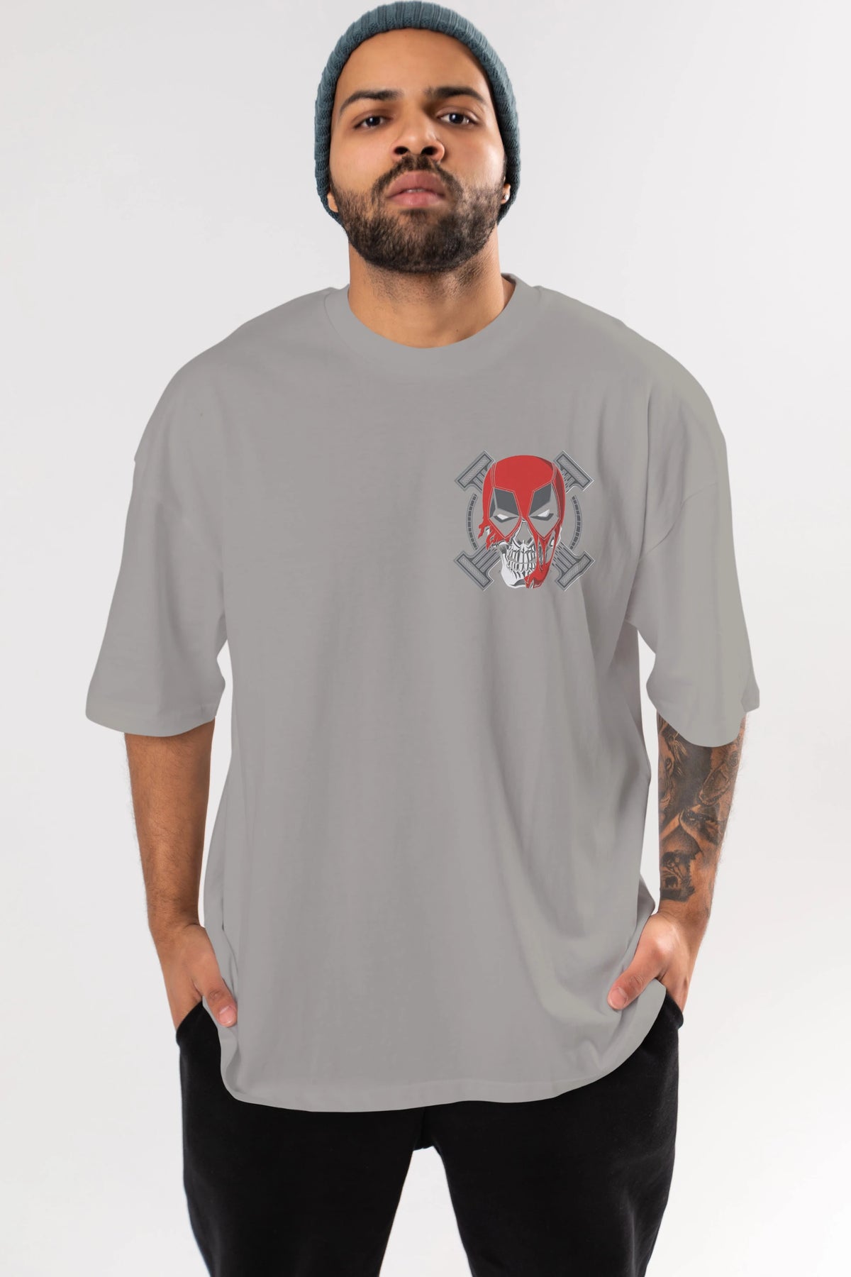 Deadpool (7) Ön Sol Baskılı Oversize t-shirt Erkek Kadın Unisex %100 Pamuk Bisiklet Yaka tişort