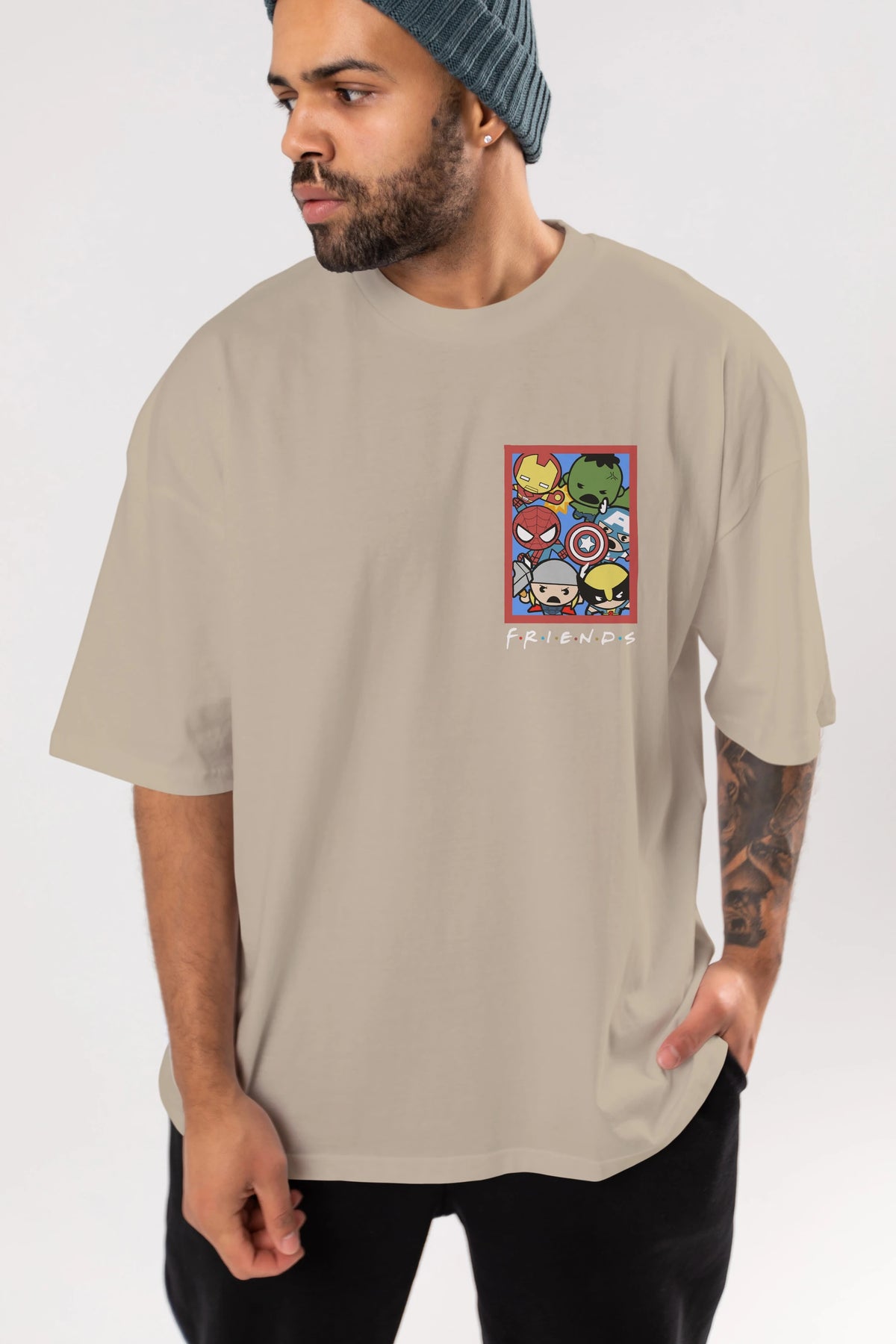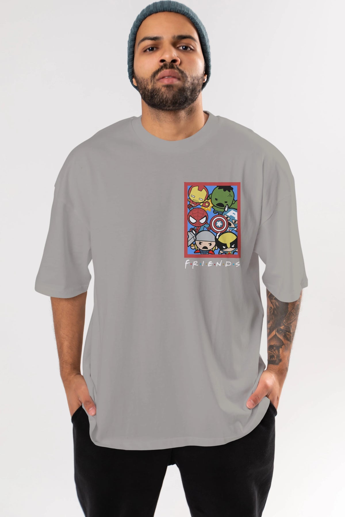 Friends Avenger Ön Sol Baskılı Oversize t-shirt Erkek Kadın Unisex %100 Pamuk Bisiklet Yaka tişort