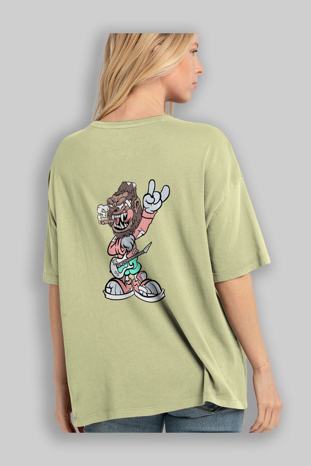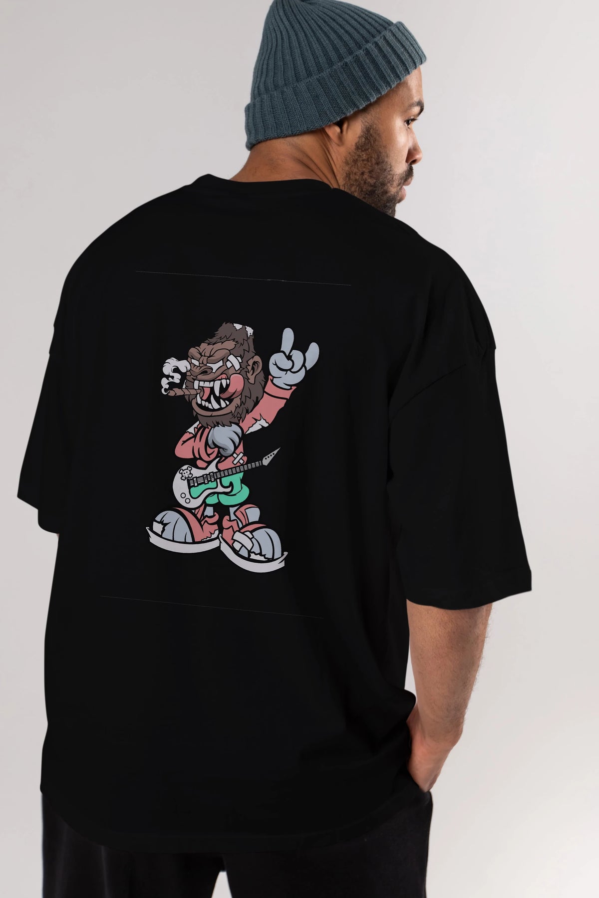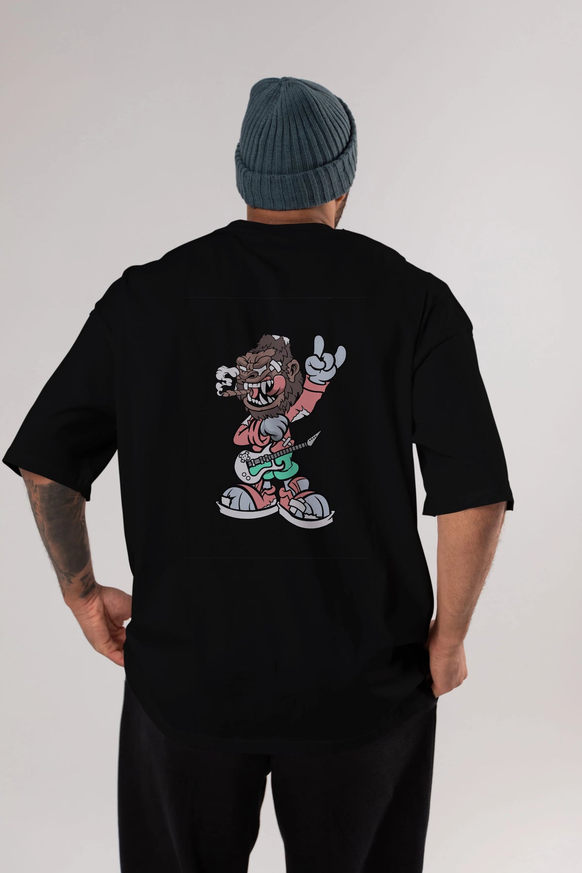 Gorilla Rockstar Arka Baskılı Oversize t-shirt Erkek Kadın Unisex %100 Pamuk tişort