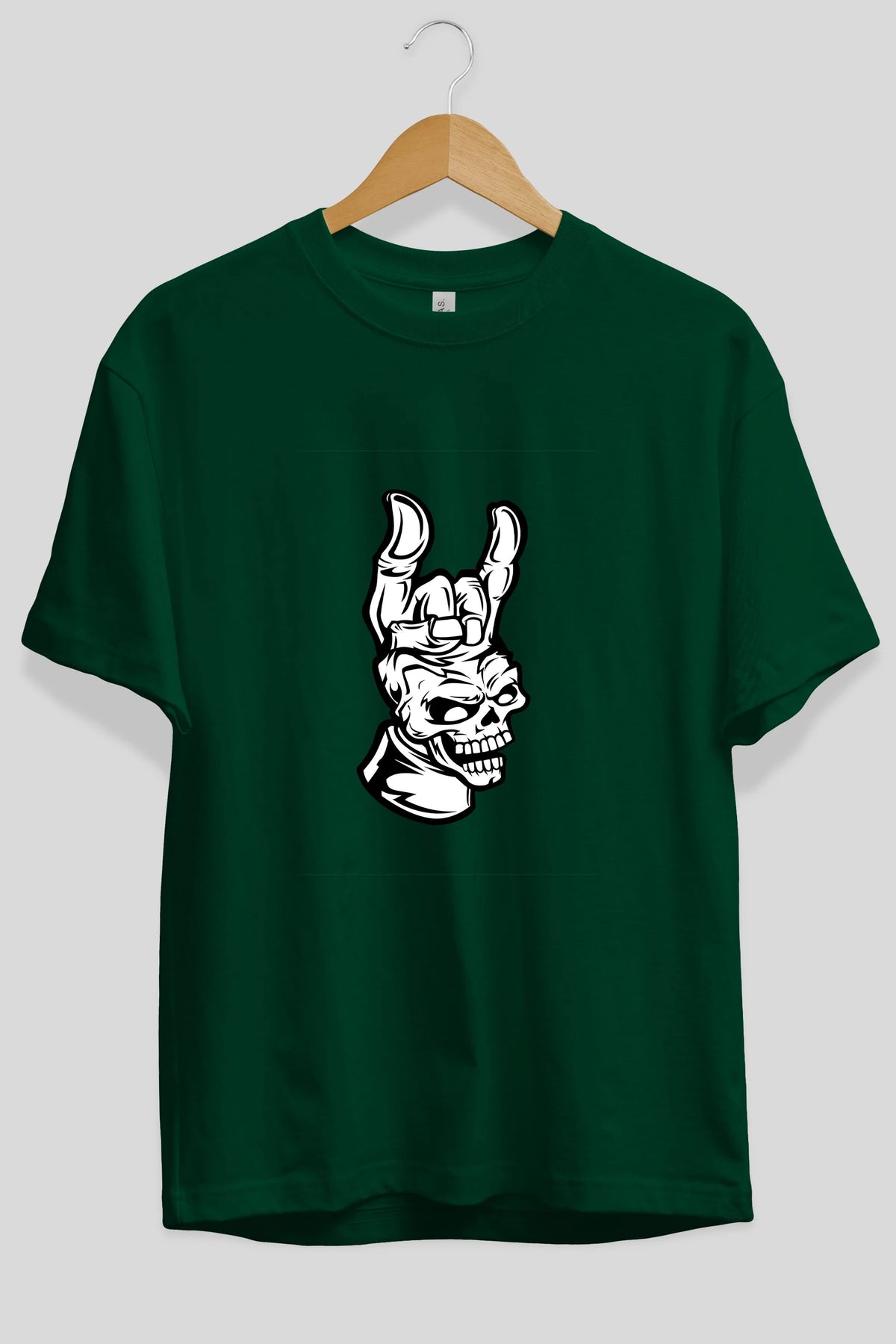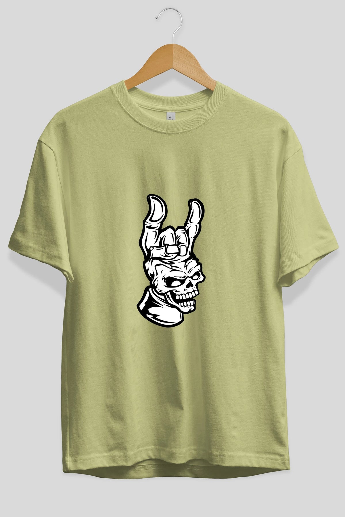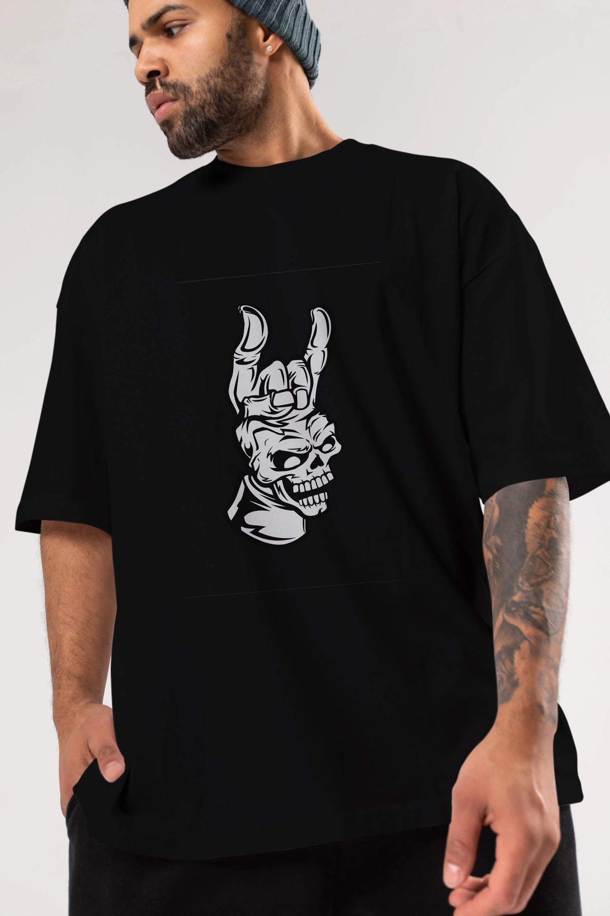 Hand Metal Skull Ön Baskılı Oversize t-shirt Erkek Kadın Unisex %100 Pamuk tişort