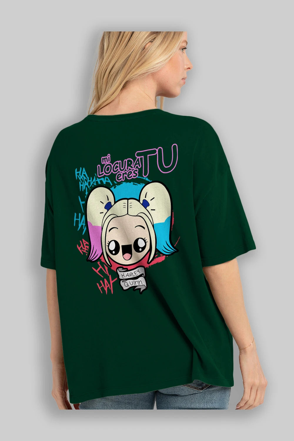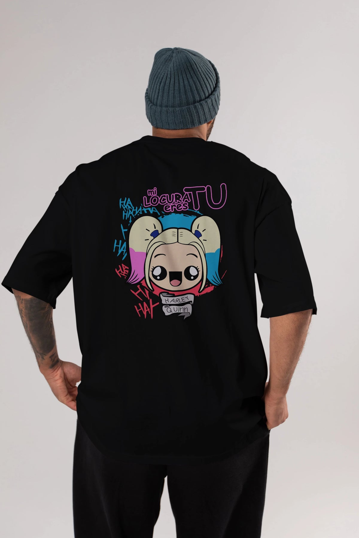Harley Quinn Arka Baskılı Oversize t-shirt Erkek Kadın Unisex %100 Pamuk Bisiklet Yaka tişort