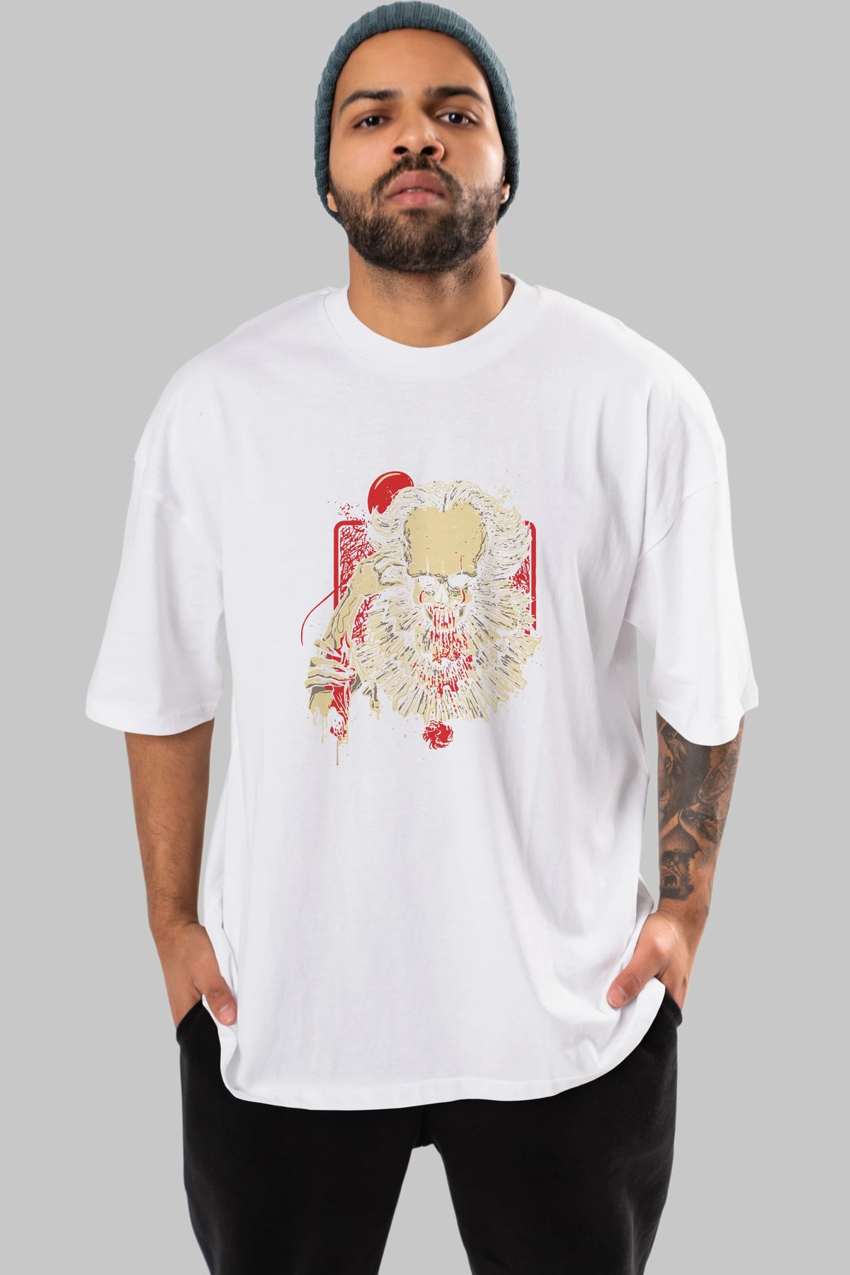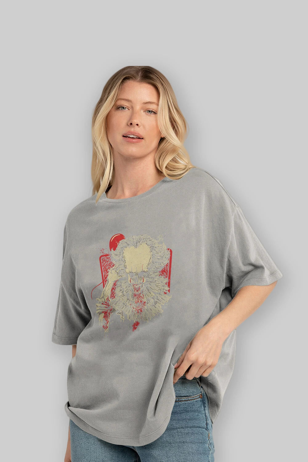 it (2) Ön Baskılı Oversize t-shirt Erkek Kadın Unisex %100 Pamuk Bisiklet Yaka tişort