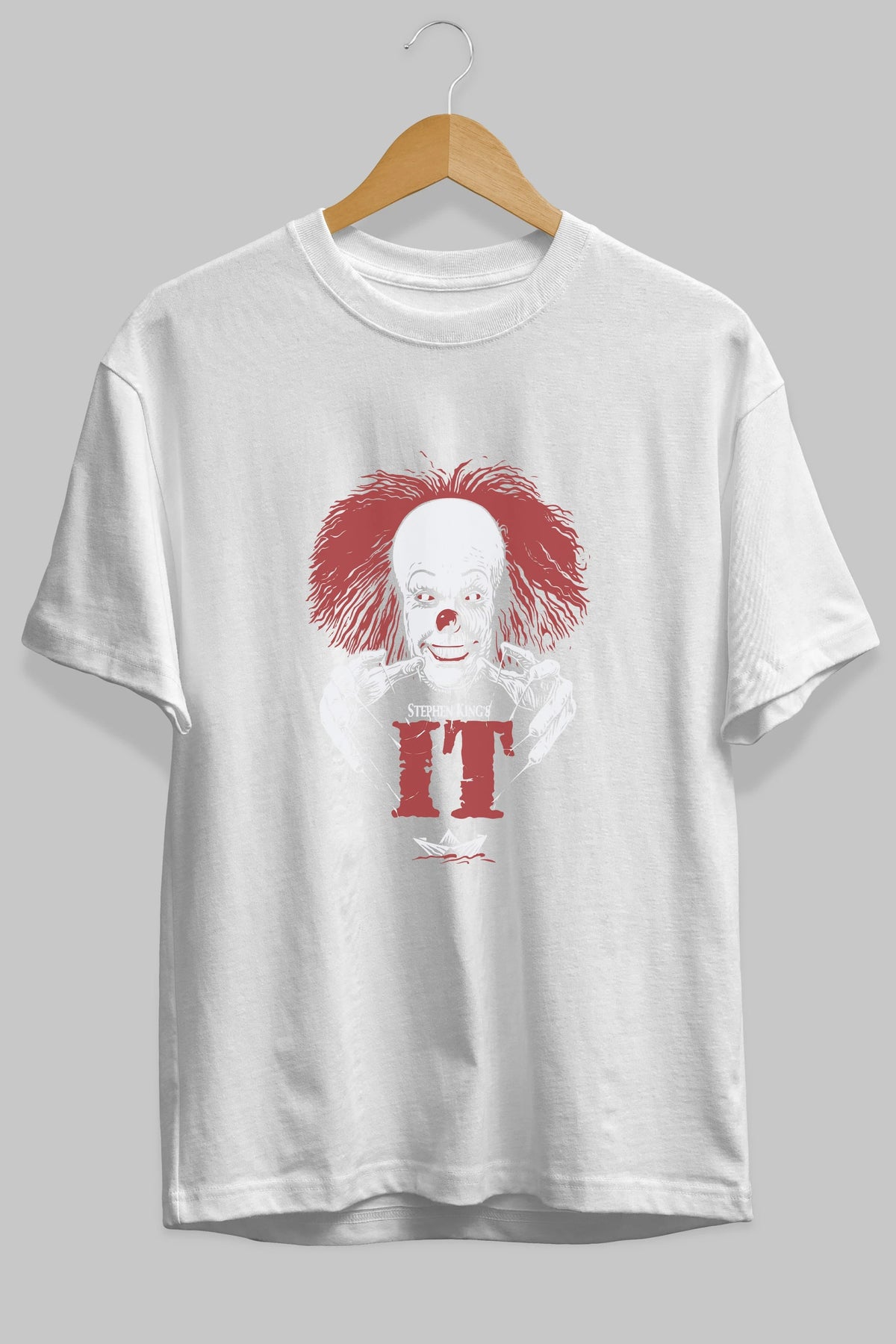 it Ön Baskılı Oversize t-shirt Erkek Kadın Unisex %100 Pamuk Bisiklet Yaka tişort