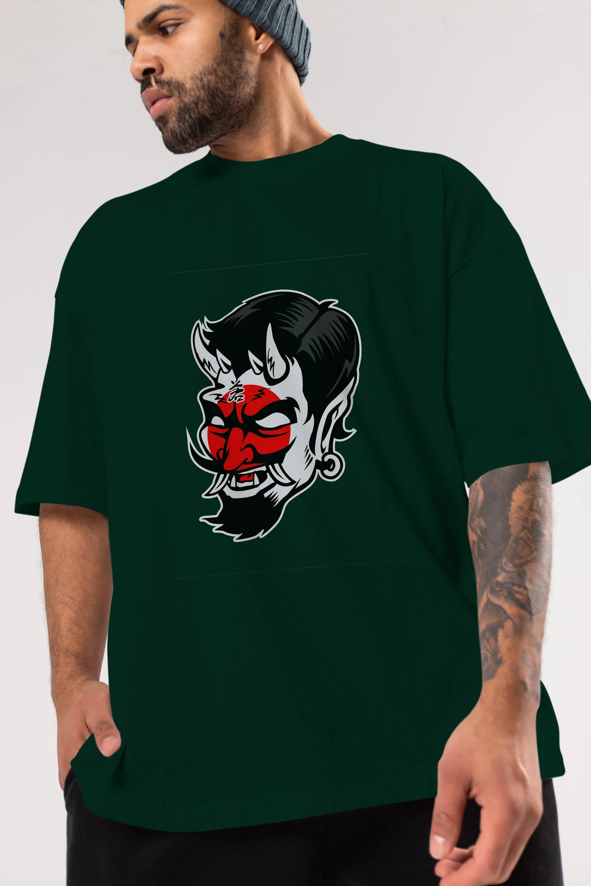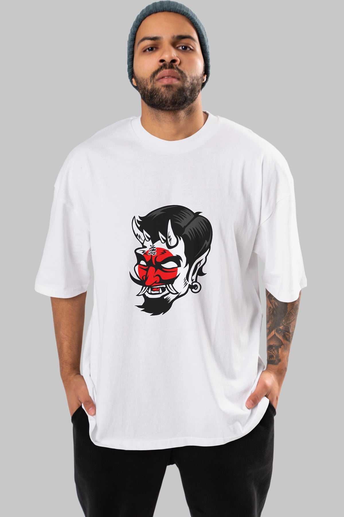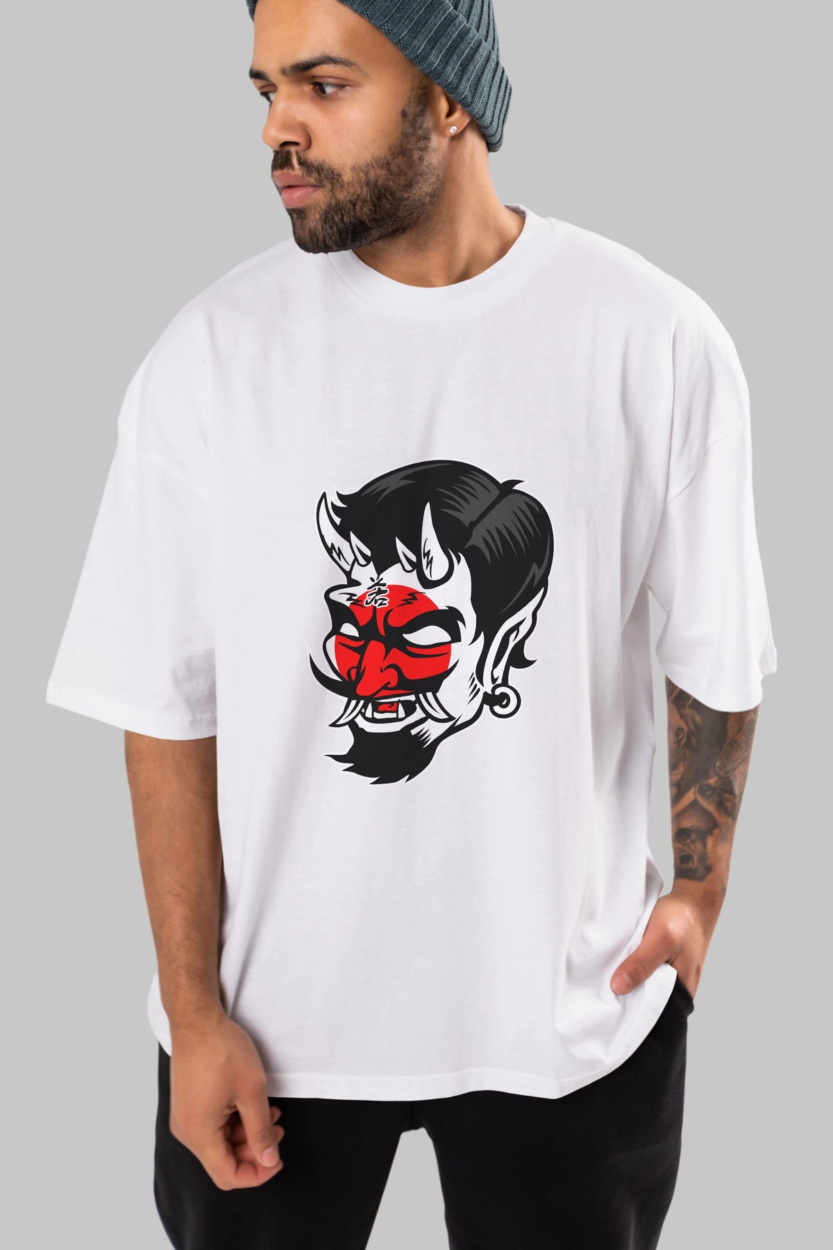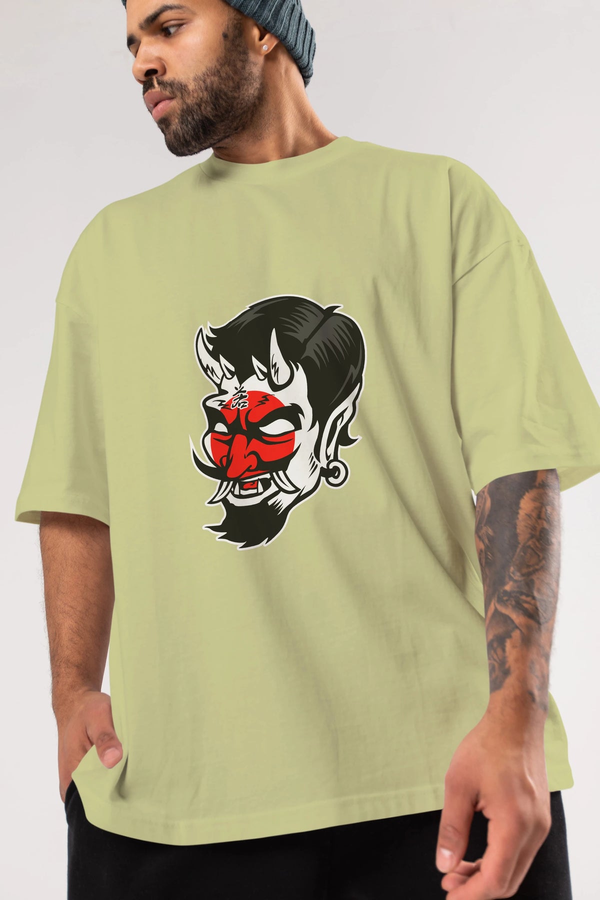 Japanese Devil Ön Baskılı Oversize t-shirt Erkek Kadın Unisex %100 Pamuk tişort