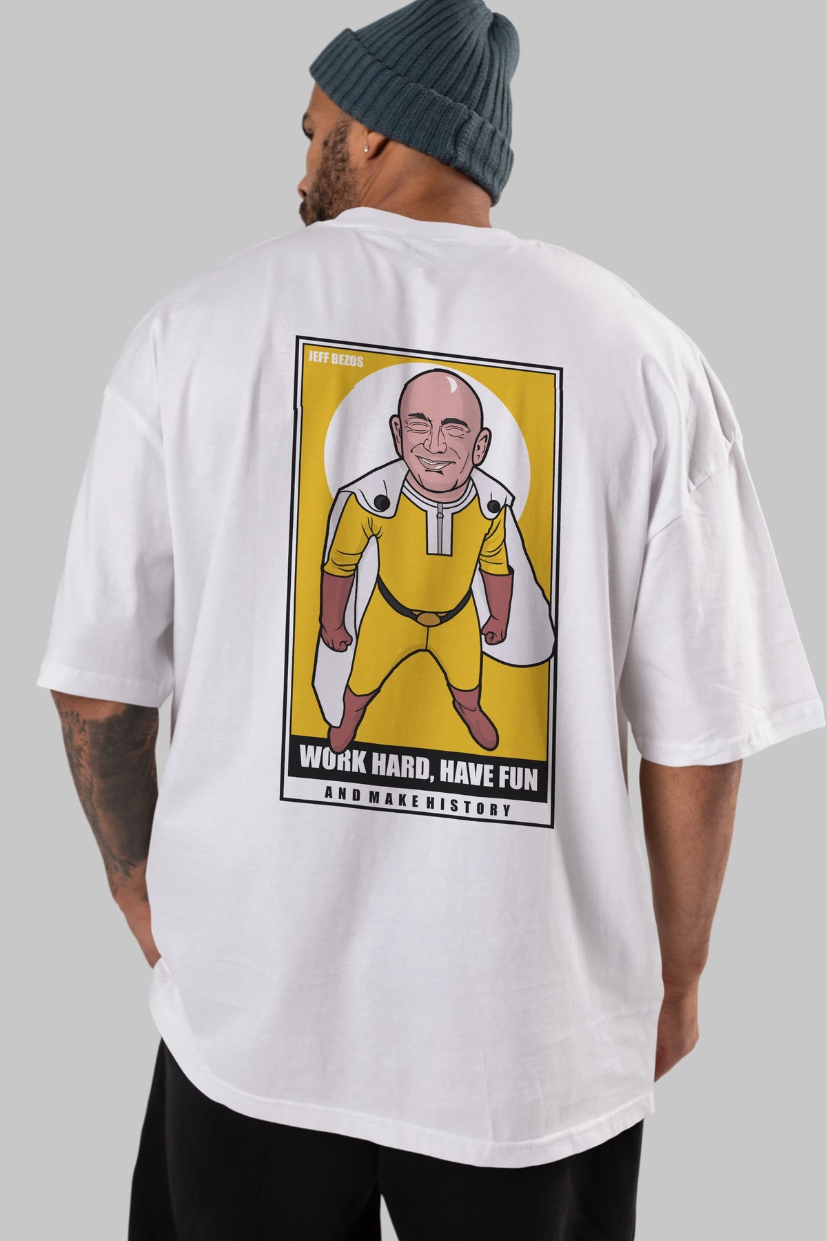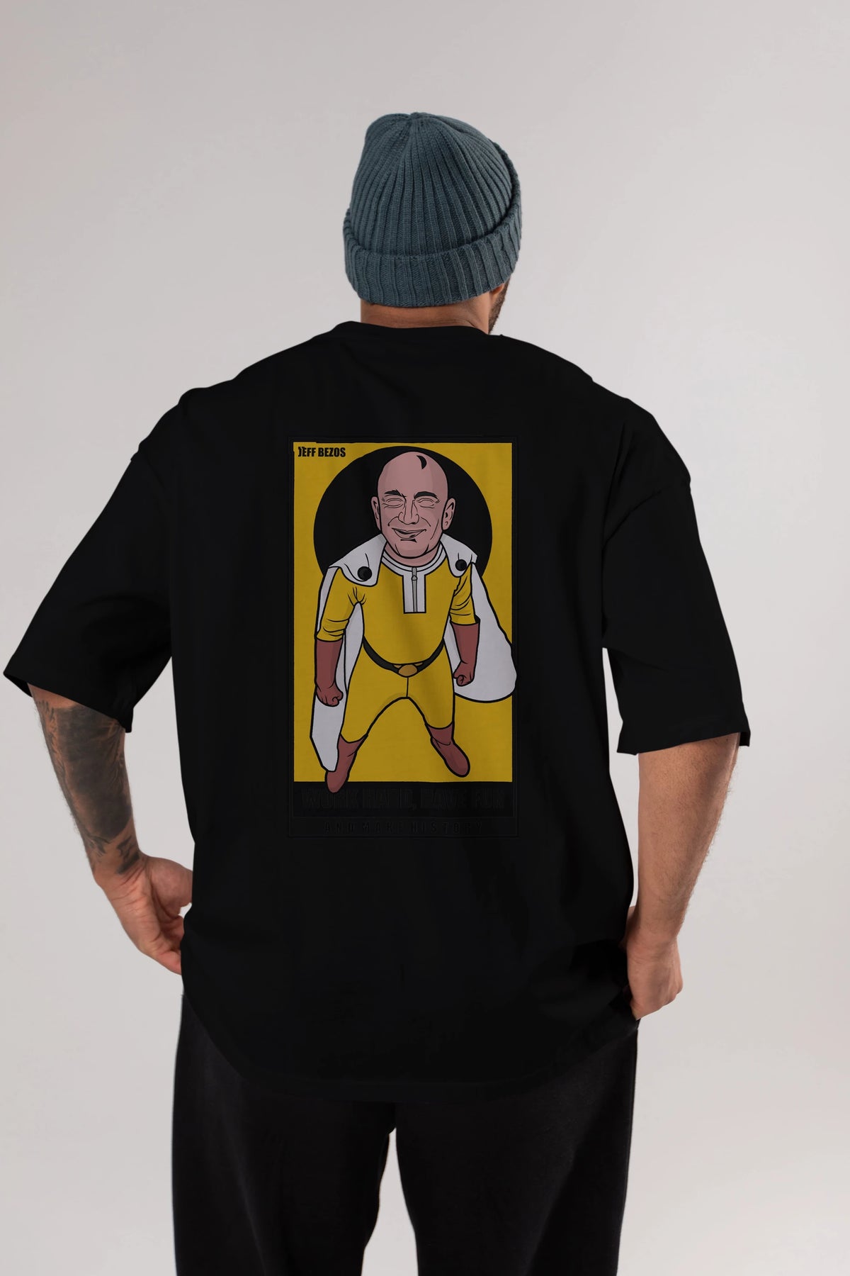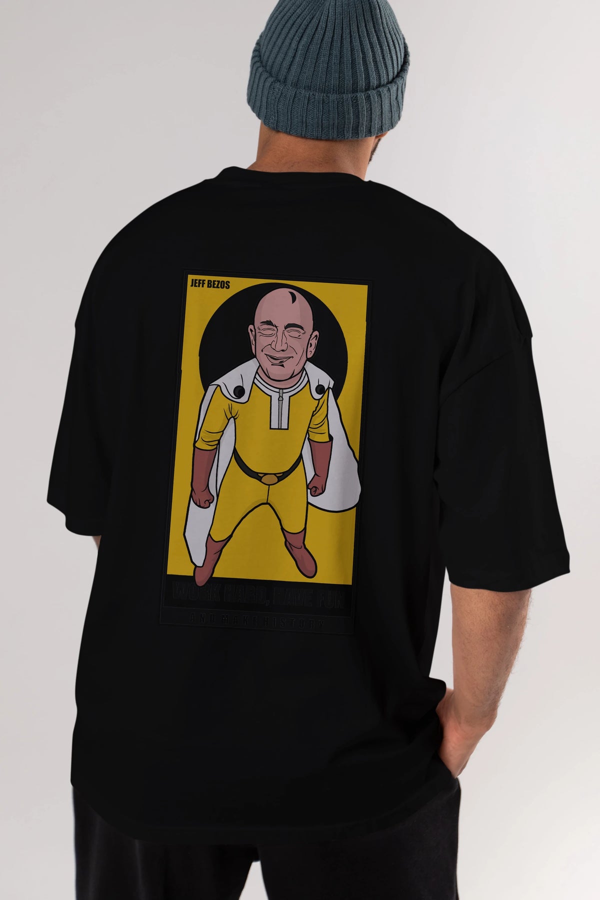 Jeff Bezos Saitama Arka Baskılı Oversize t-shirt Erkek Kadın Unisex %100 Pamuk tişort