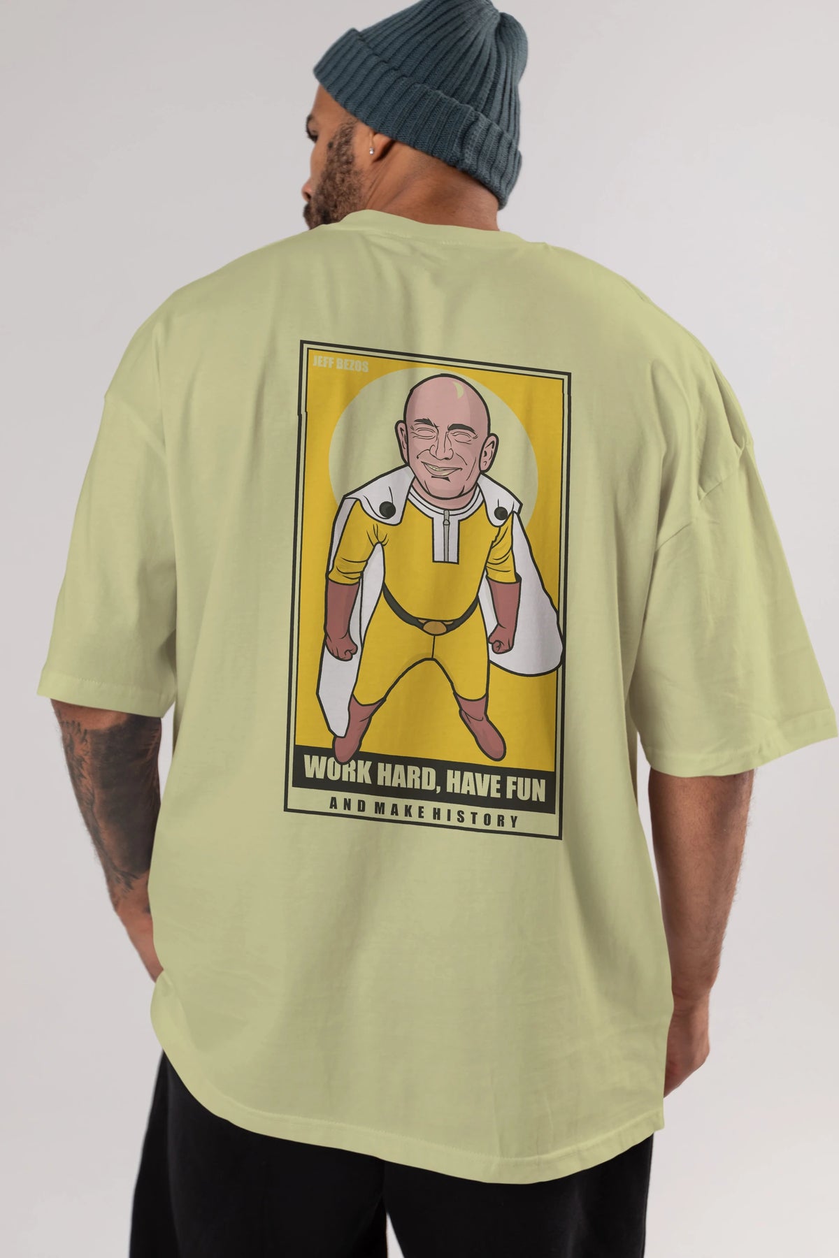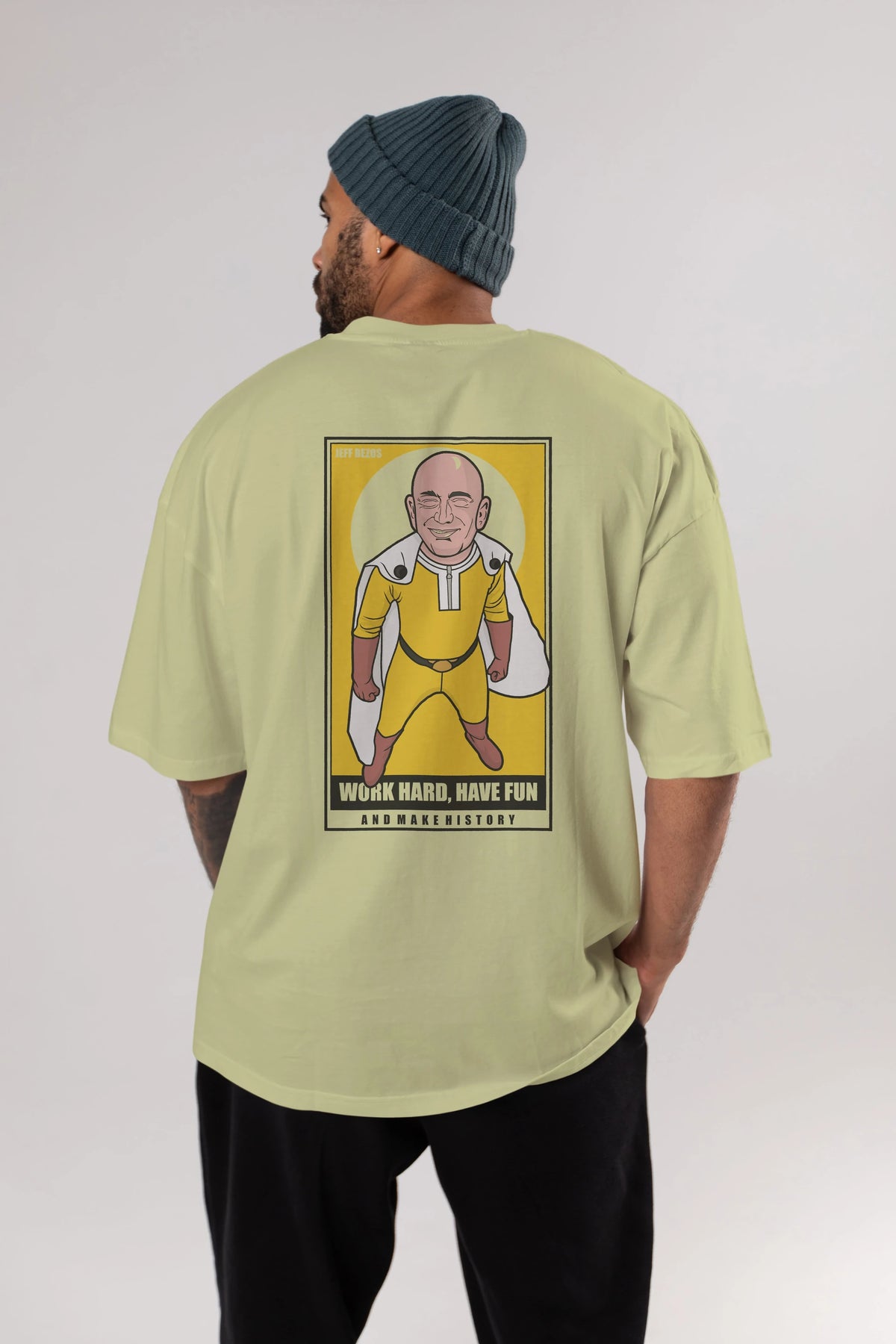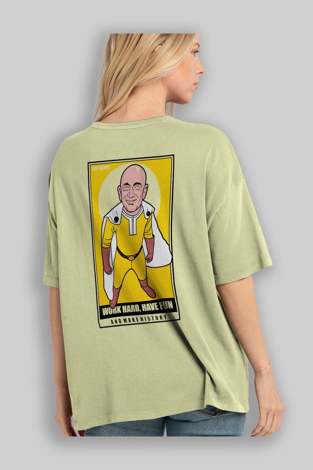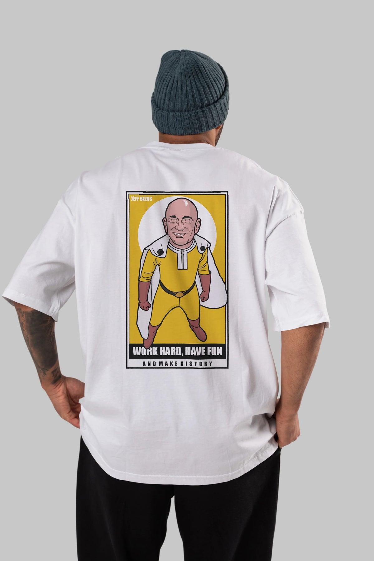 Jeff Bezos Saitama Arka Baskılı Oversize t-shirt Erkek Kadın Unisex %100 Pamuk tişort