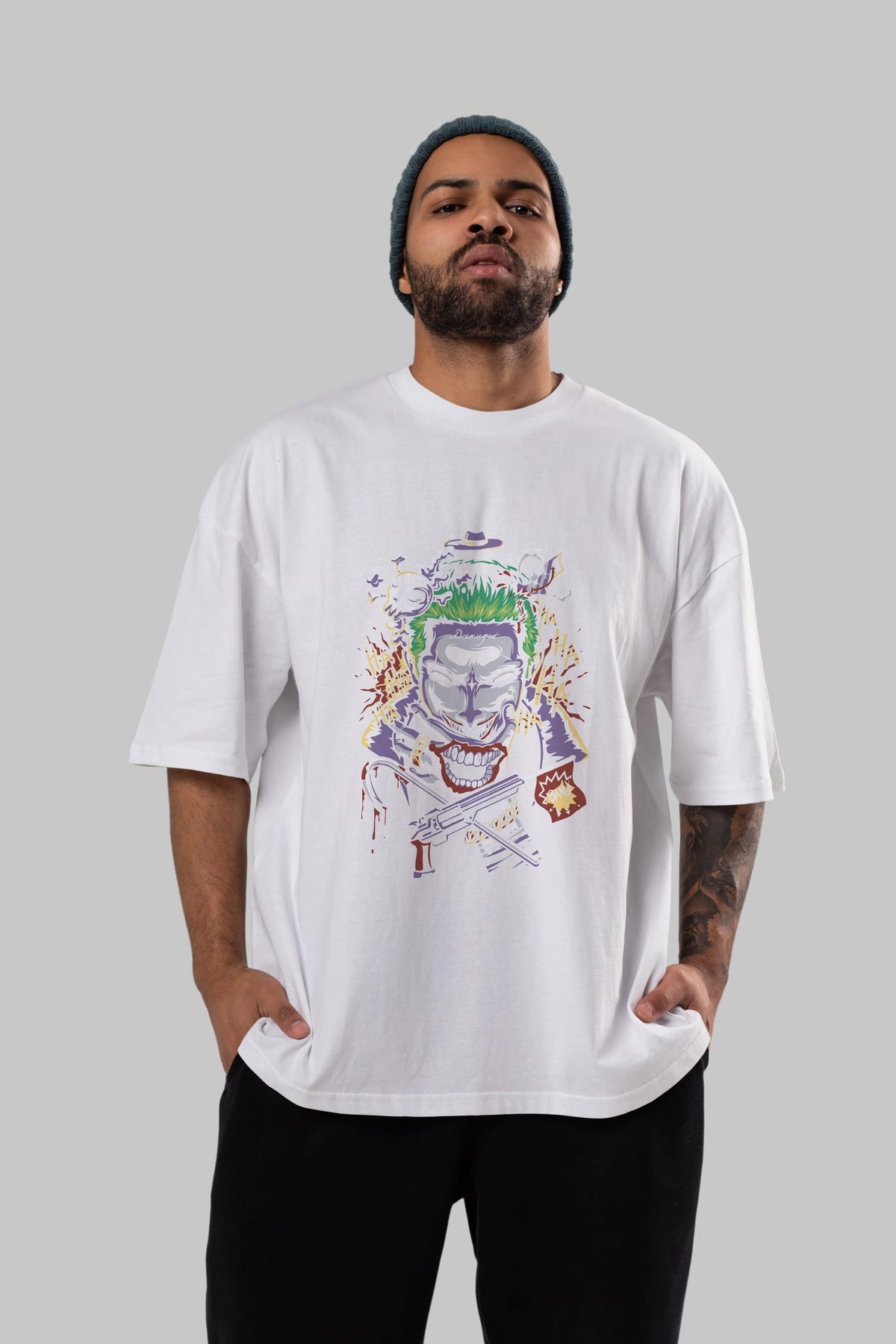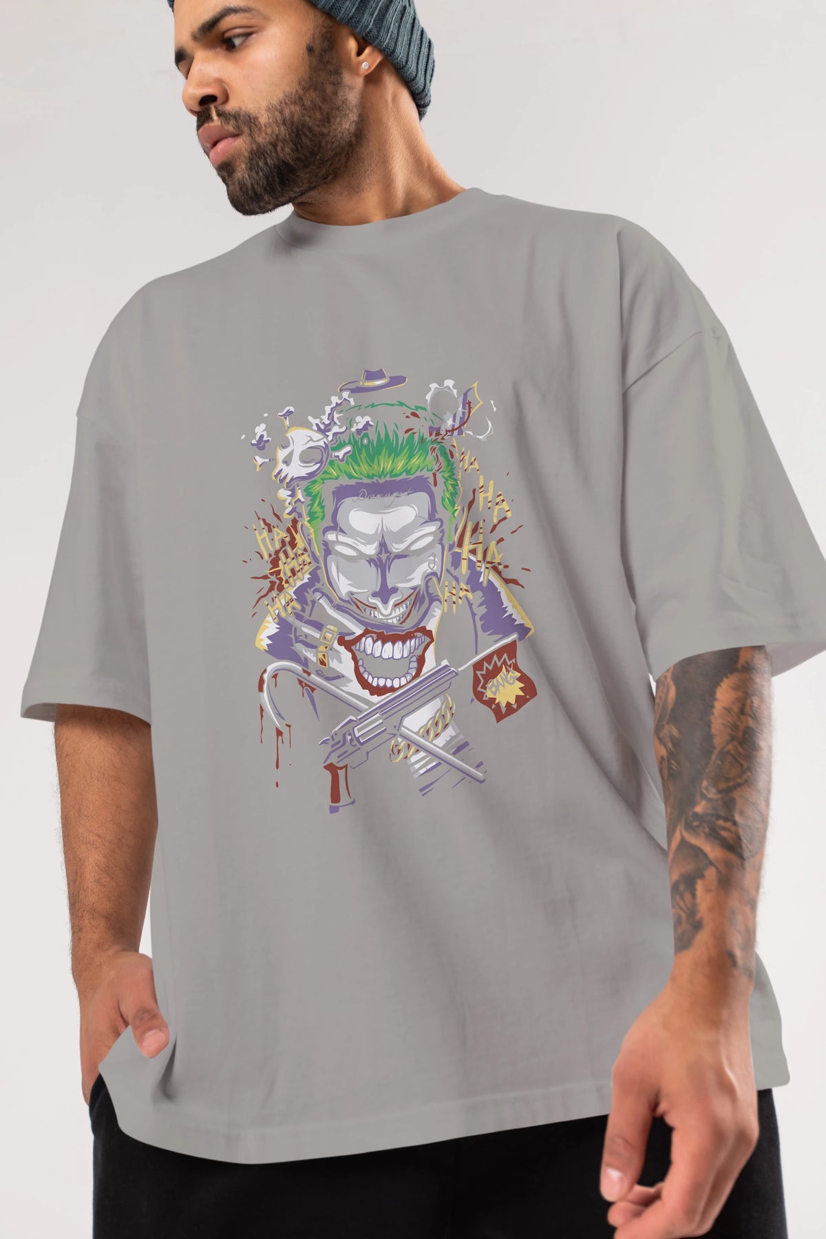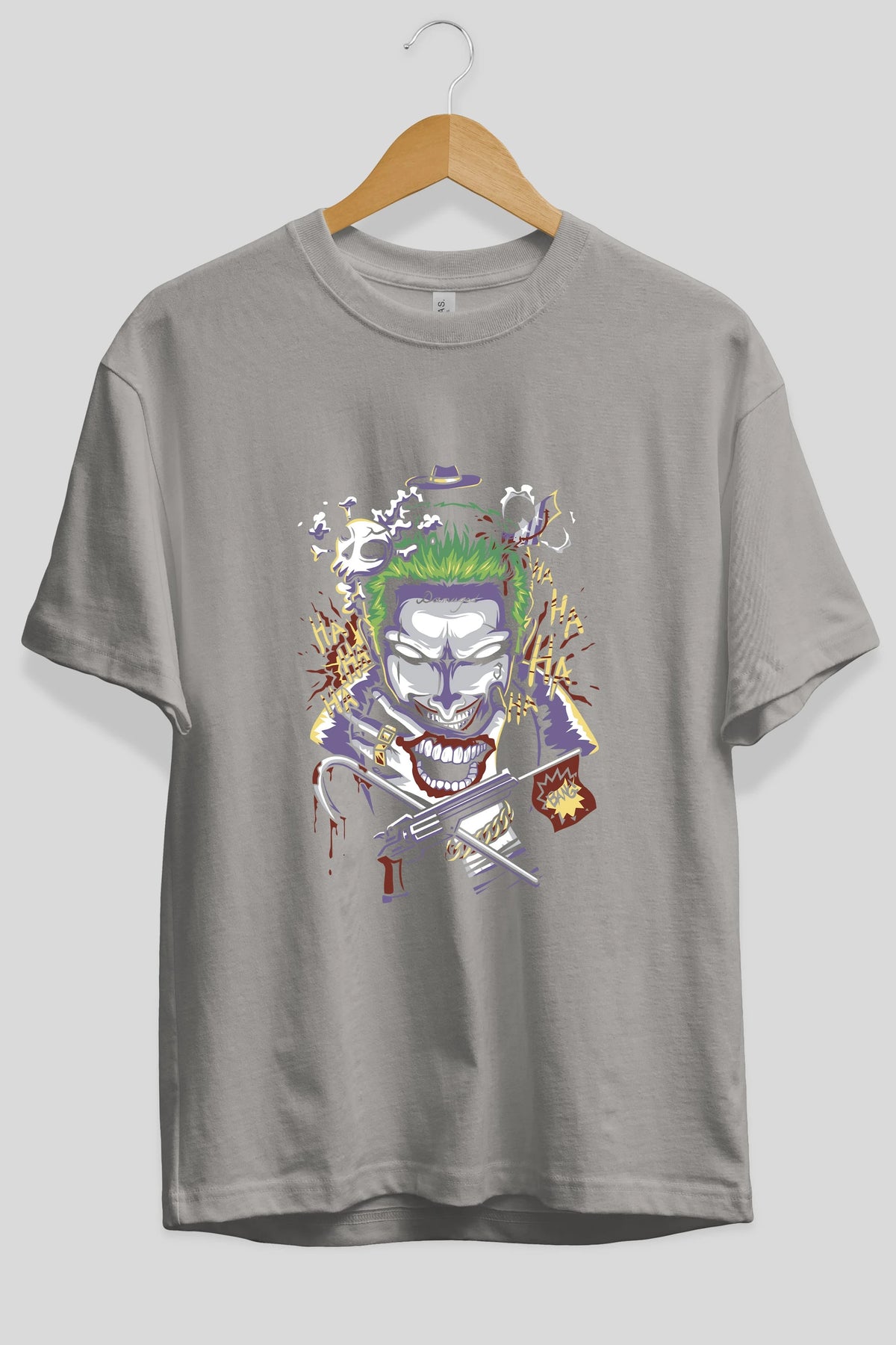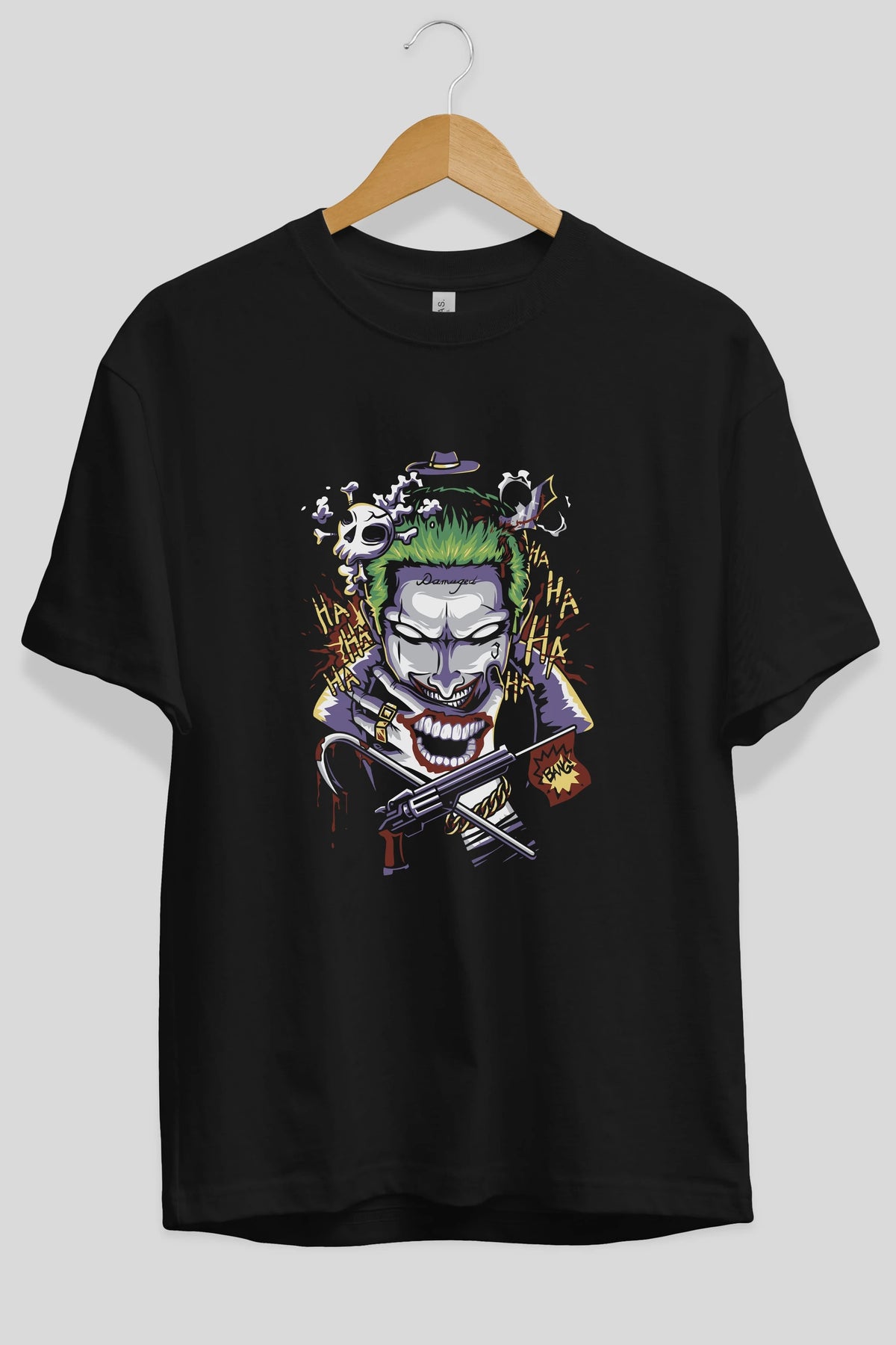 Joker Ön Baskılı Oversize t-shirt Erkek Kadın Unisex %100 Pamuk Bisiklet Yaka tişort