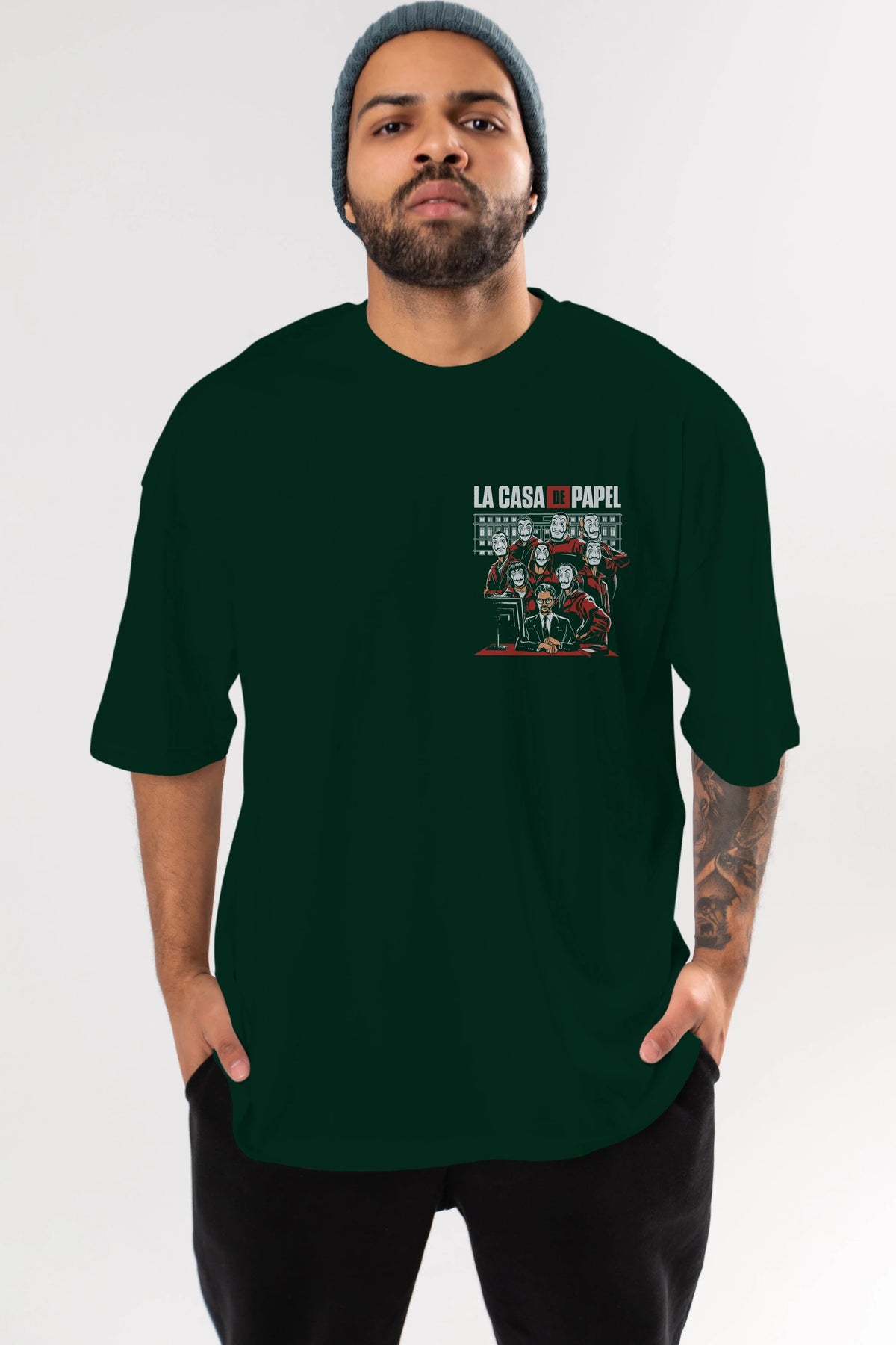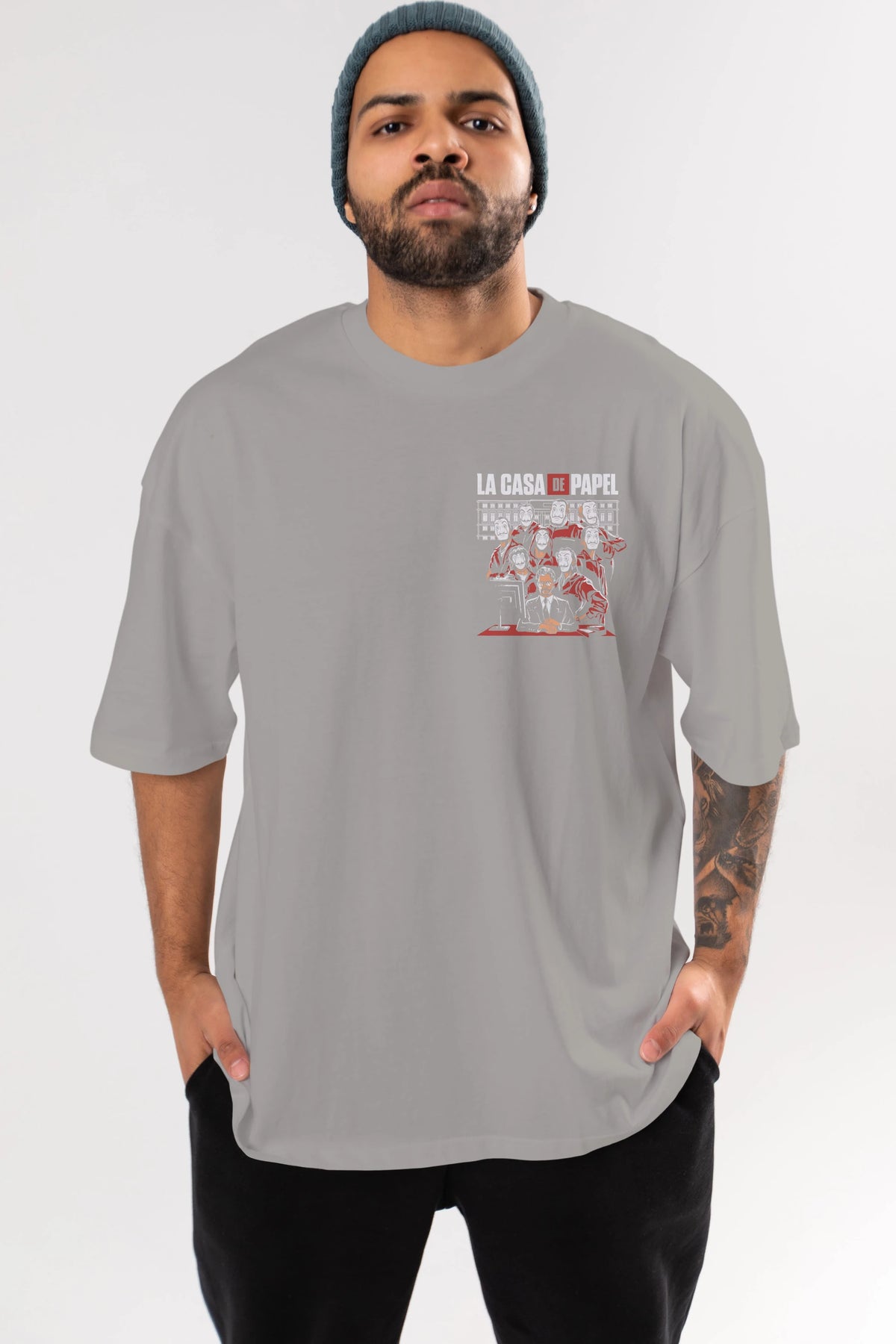 La Casa De Papel (5) Ön Sol Baskılı Oversize t-shirt Erkek Kadın Unisex %100 Pamuk Bisiklet Yaka tişort