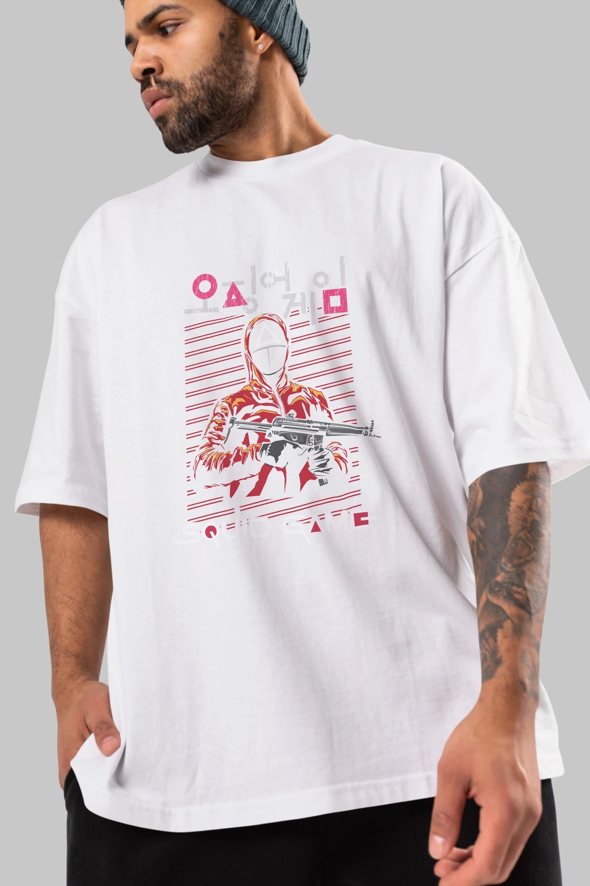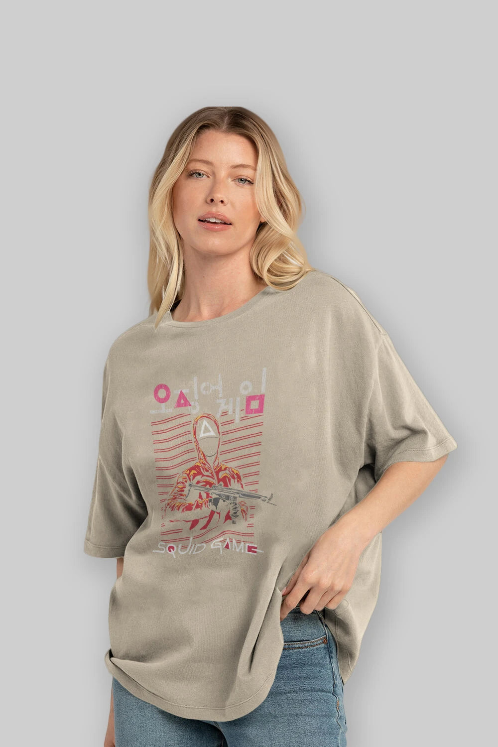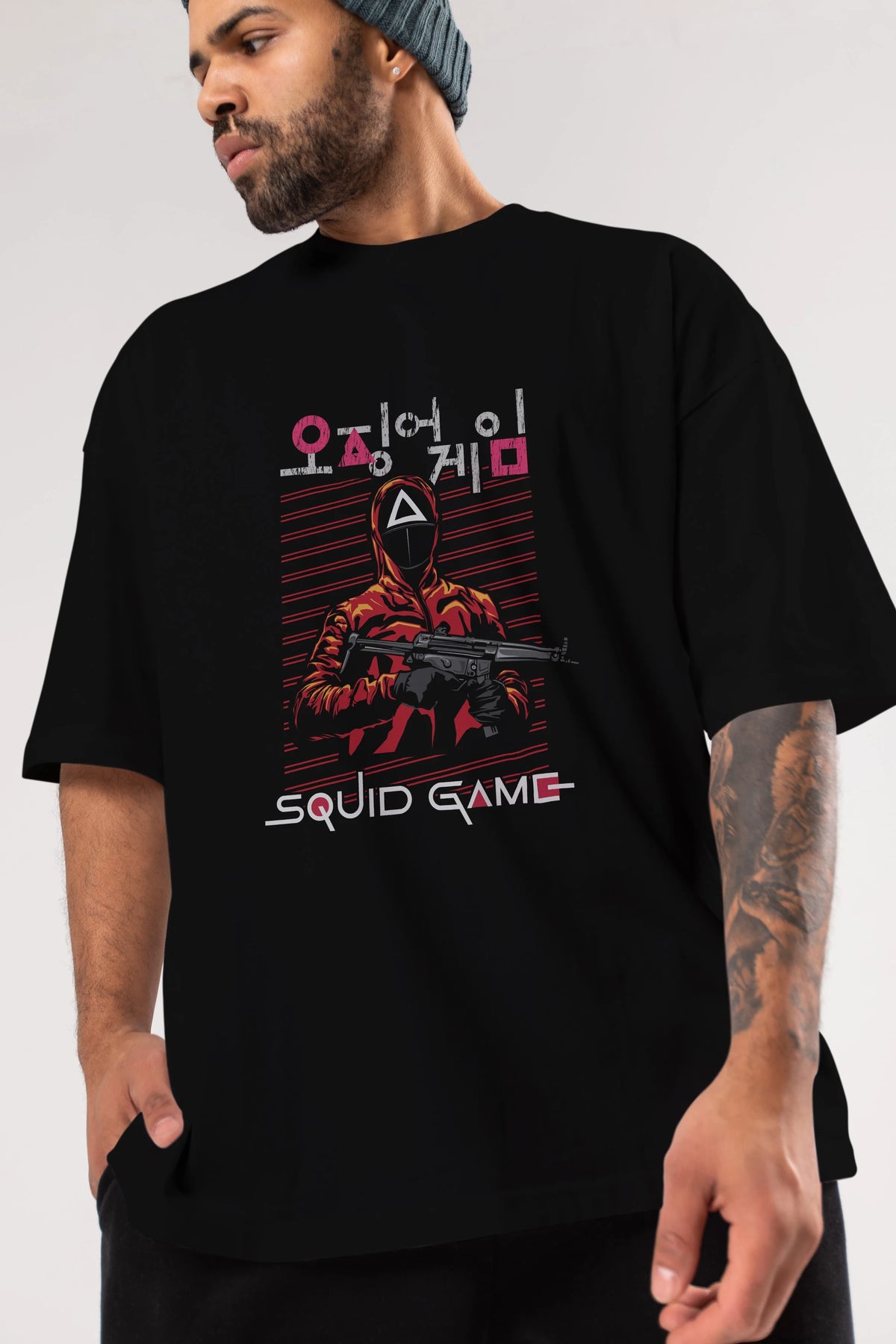 Squid Game (2) Ön Baskılı Oversize t-shirt Erkek Kadın Unisex %100 Pamuk Bisiklet Yaka tişort