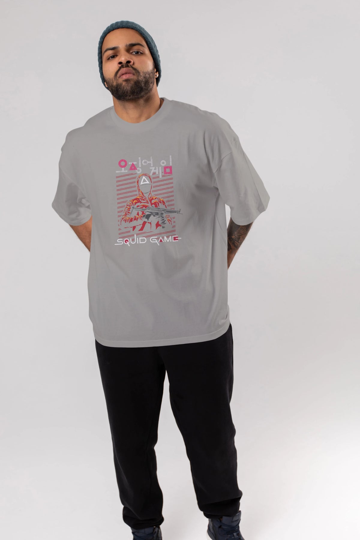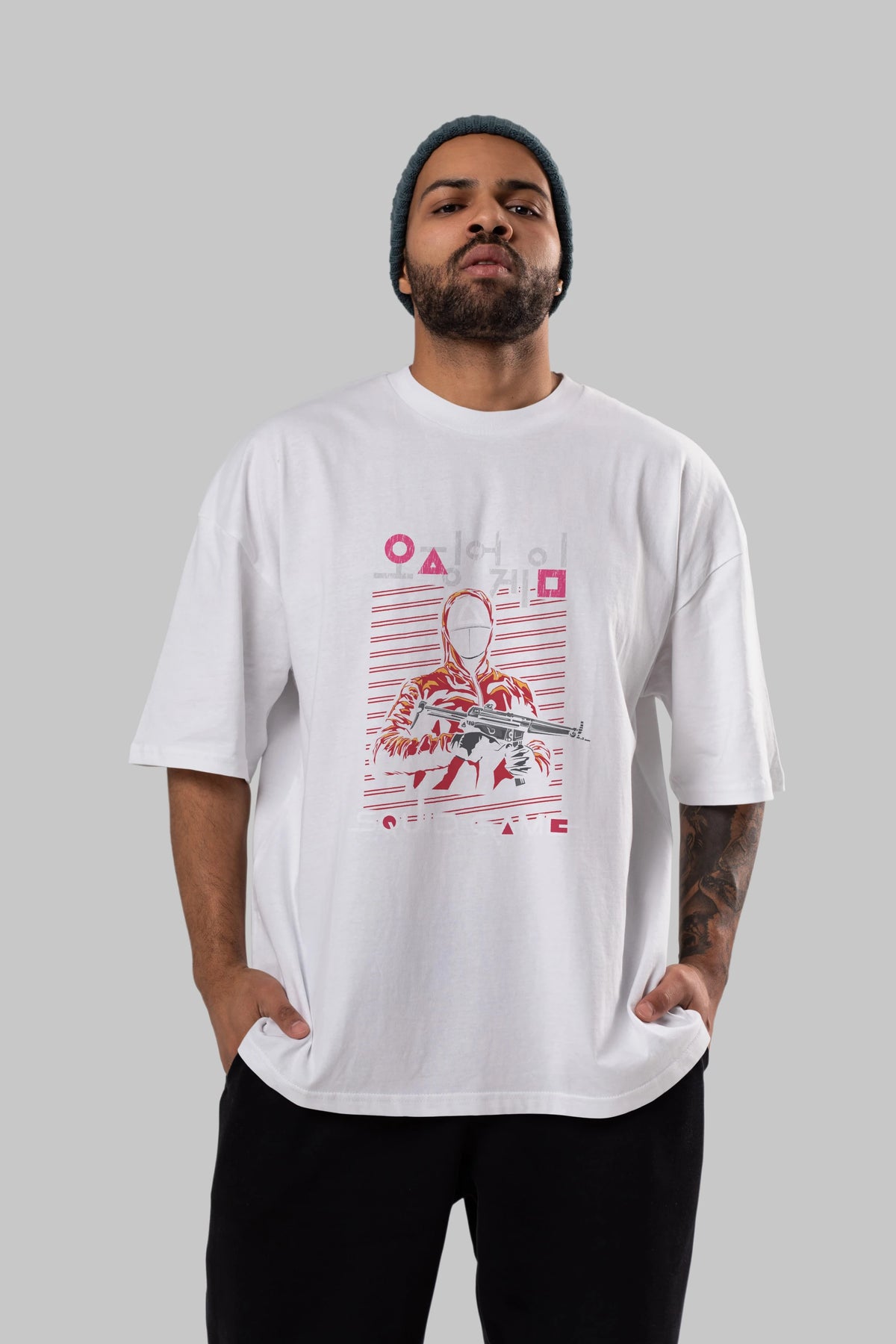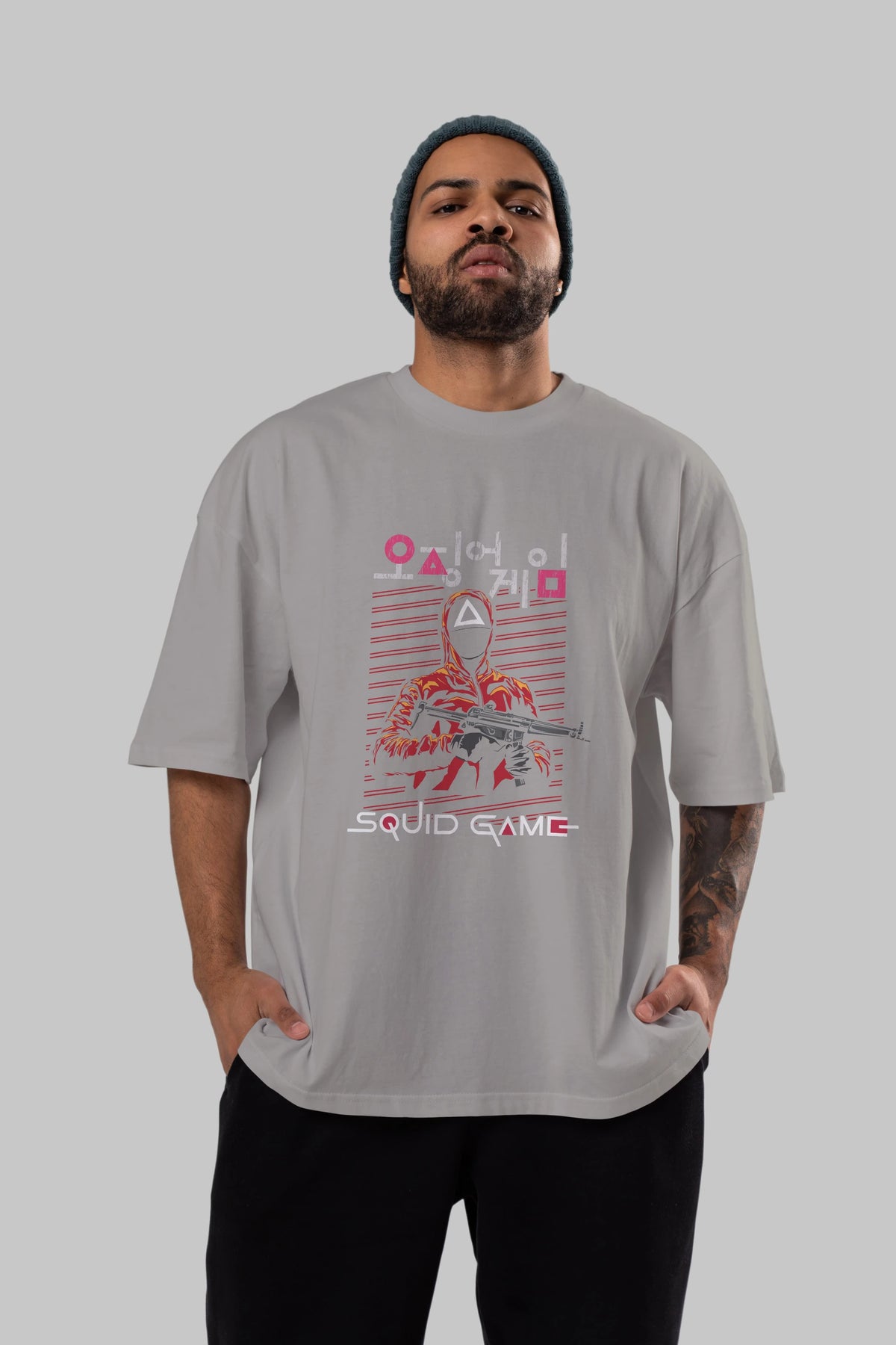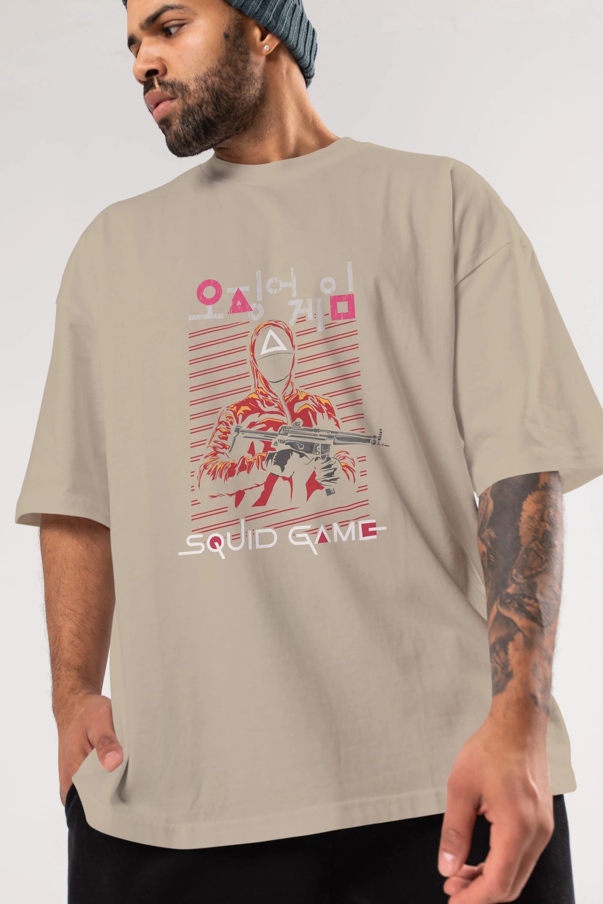 Squid Game (2) Ön Baskılı Oversize t-shirt Erkek Kadın Unisex %100 Pamuk Bisiklet Yaka tişort