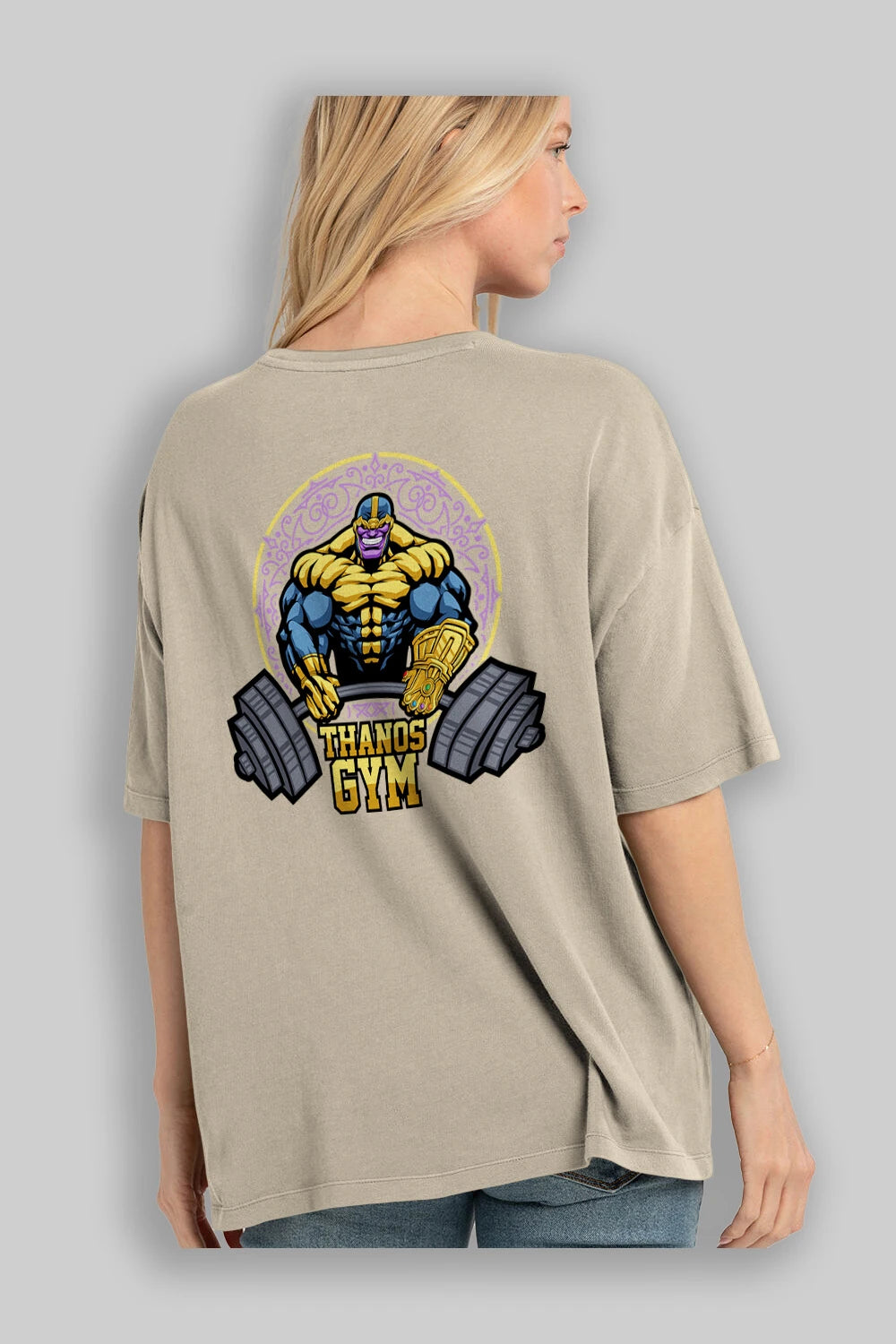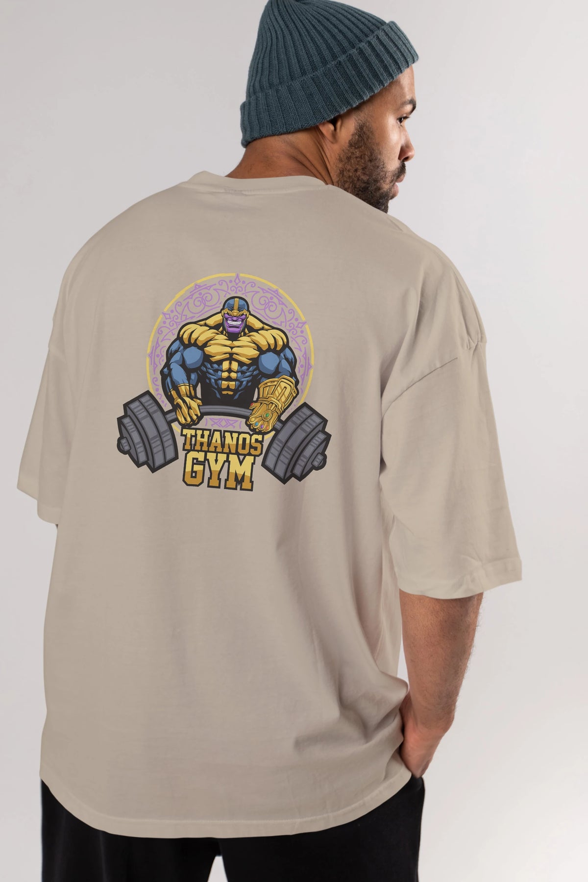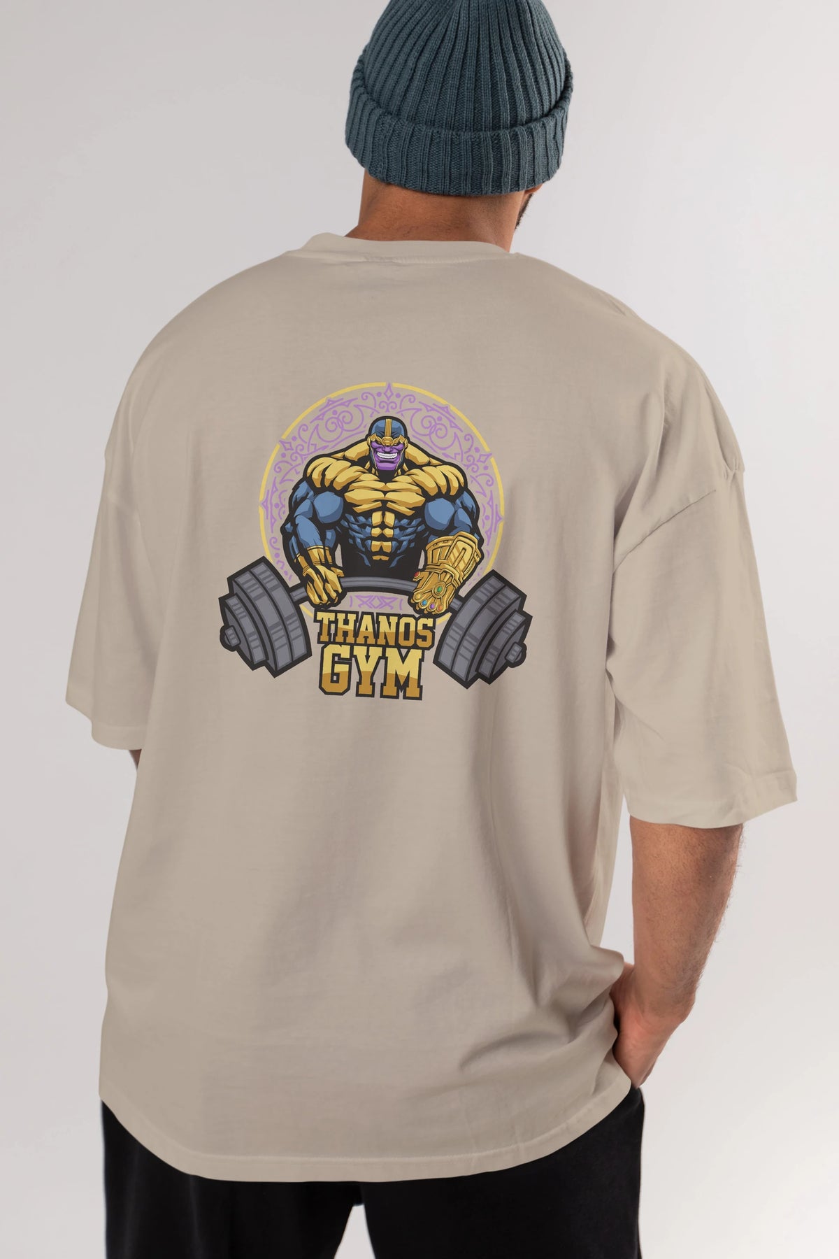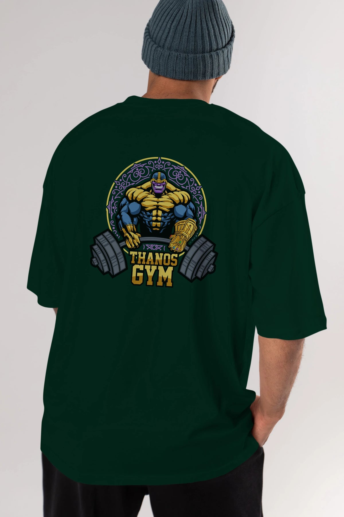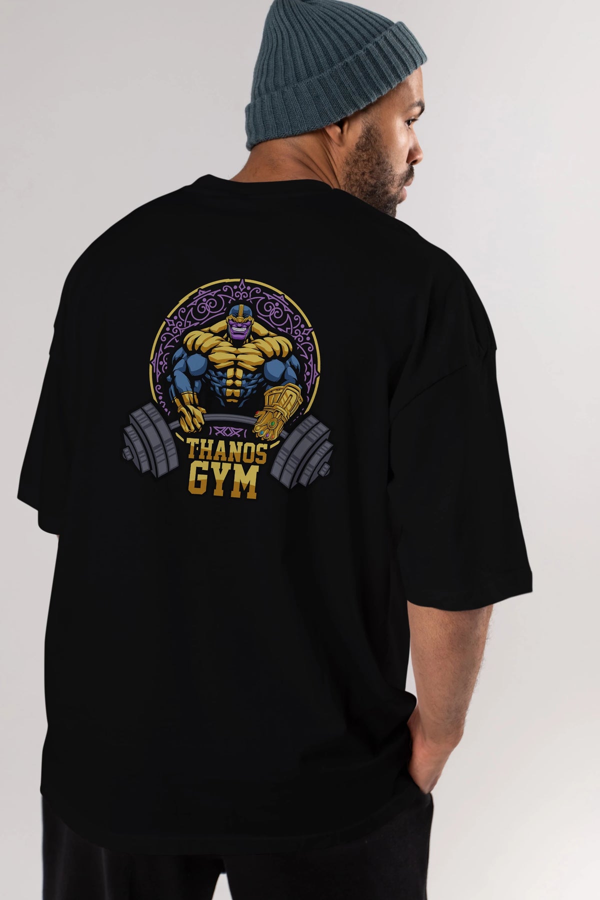 Thanos GYM Arka Baskılı Oversize t-shirt Erkek Kadın Unisex %100 Pamuk Bisiklet Yaka tişort