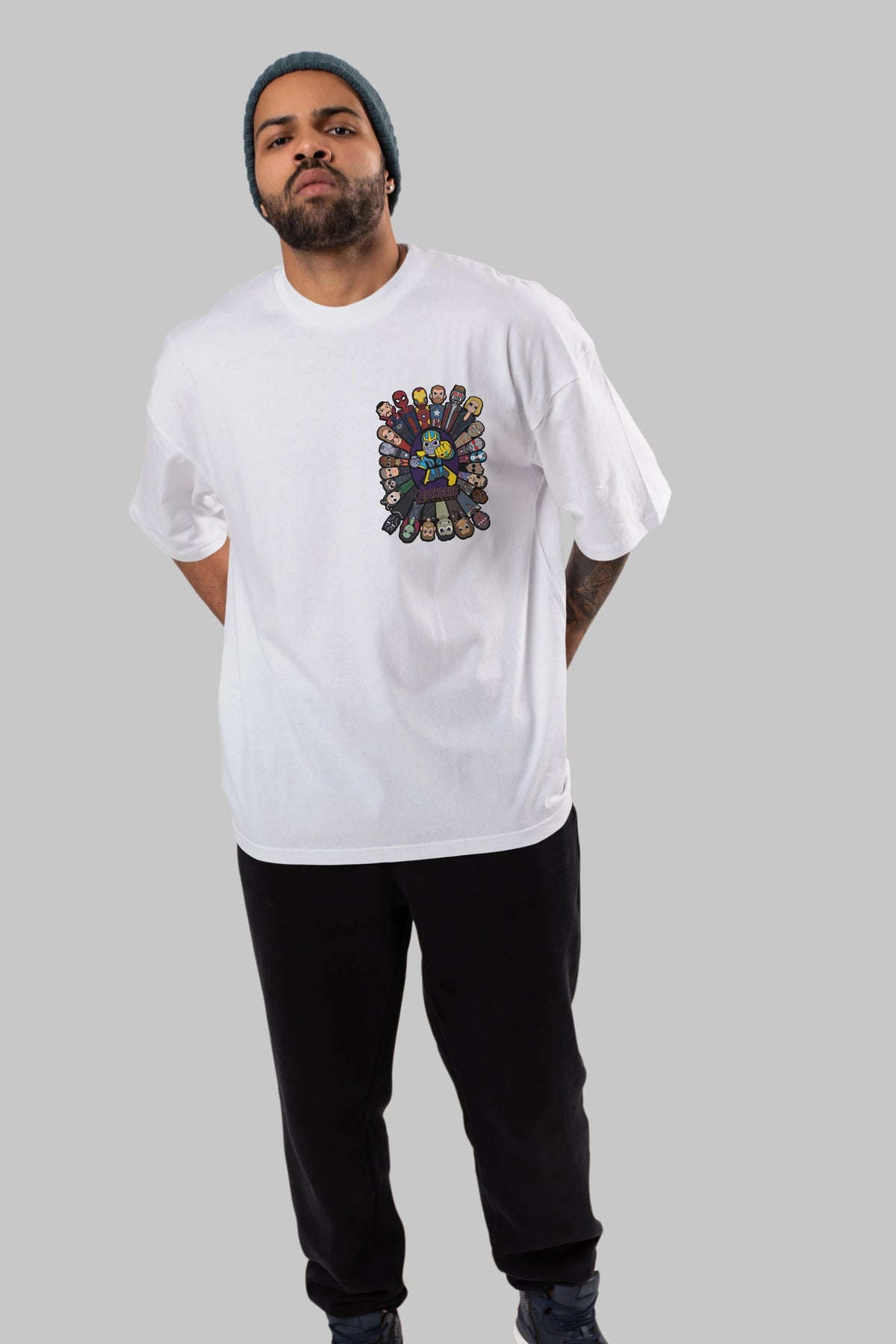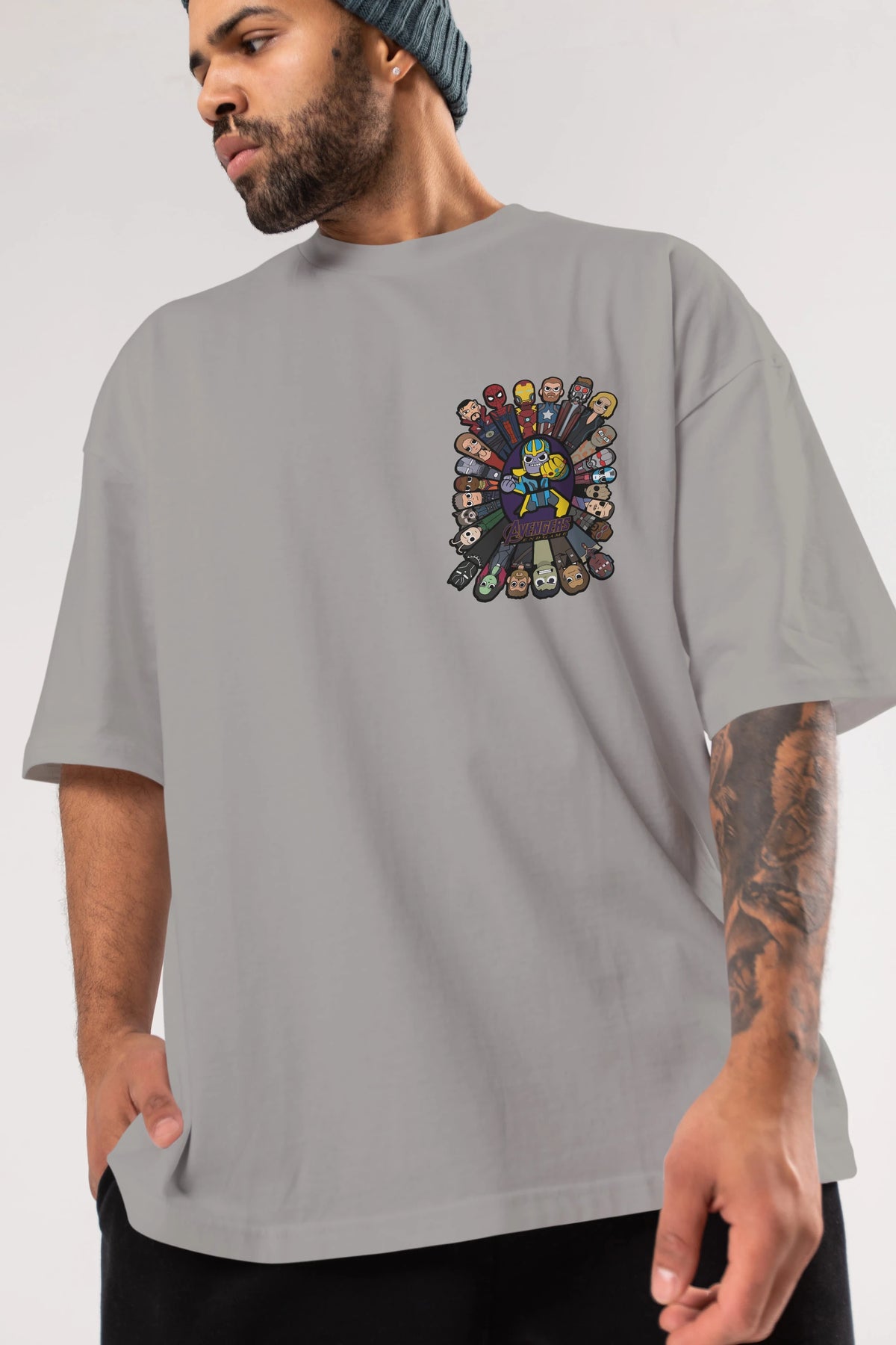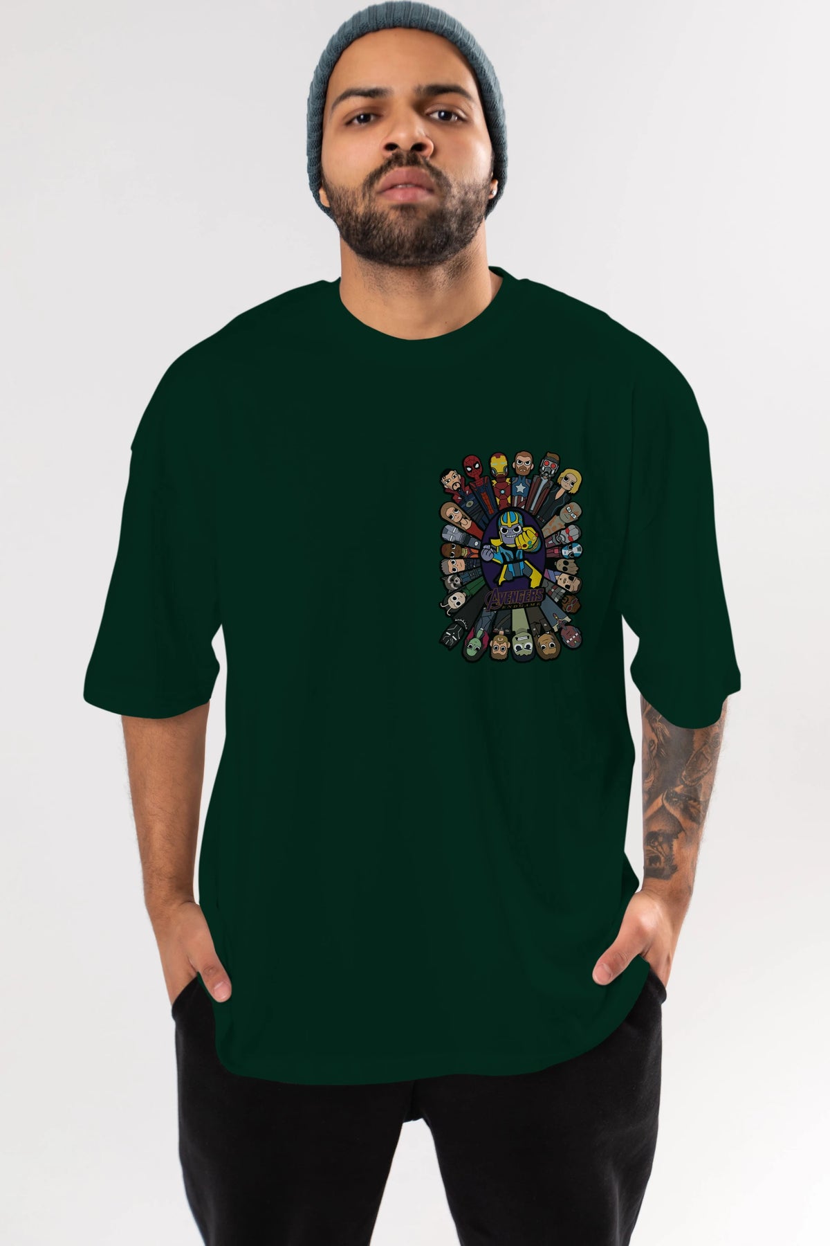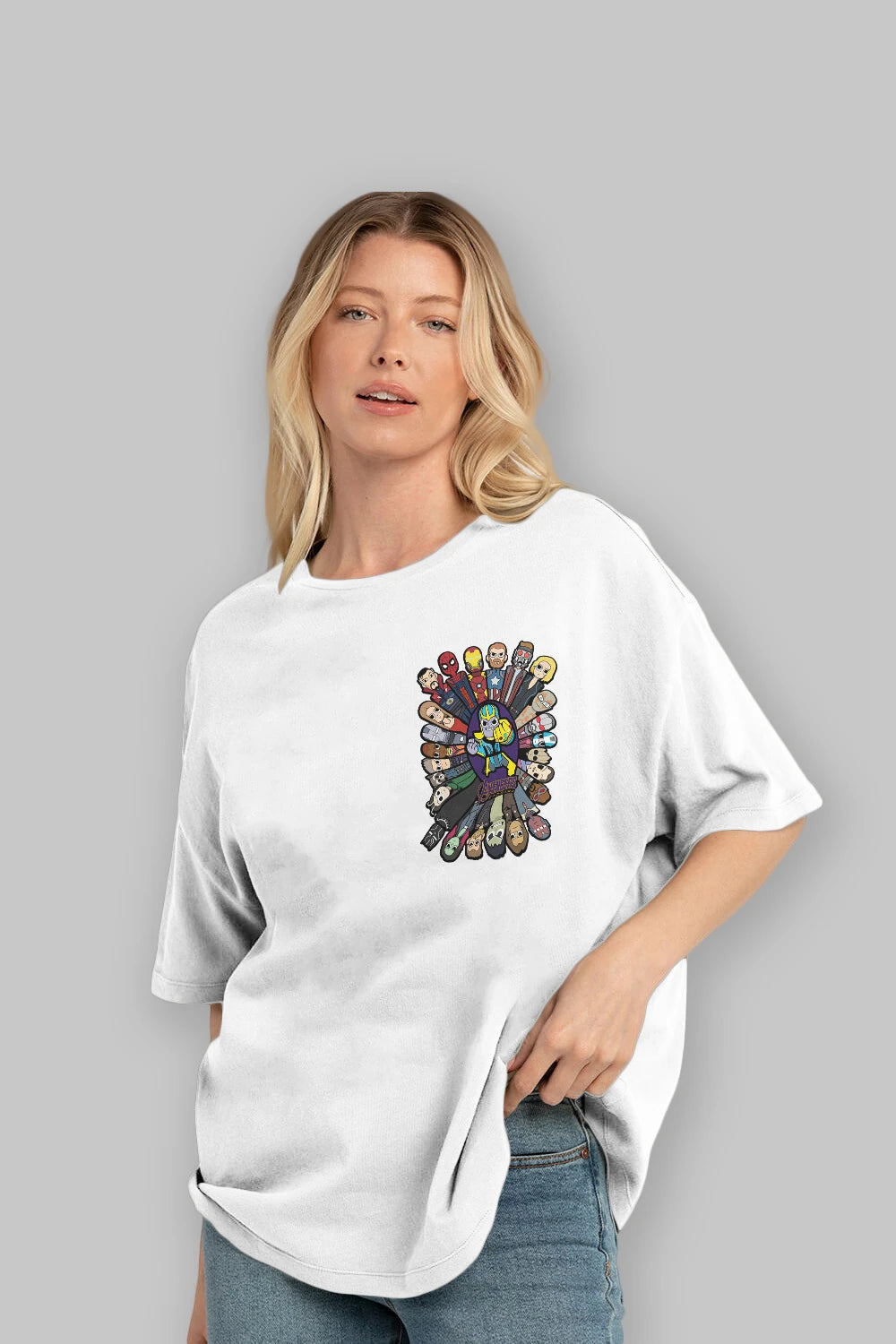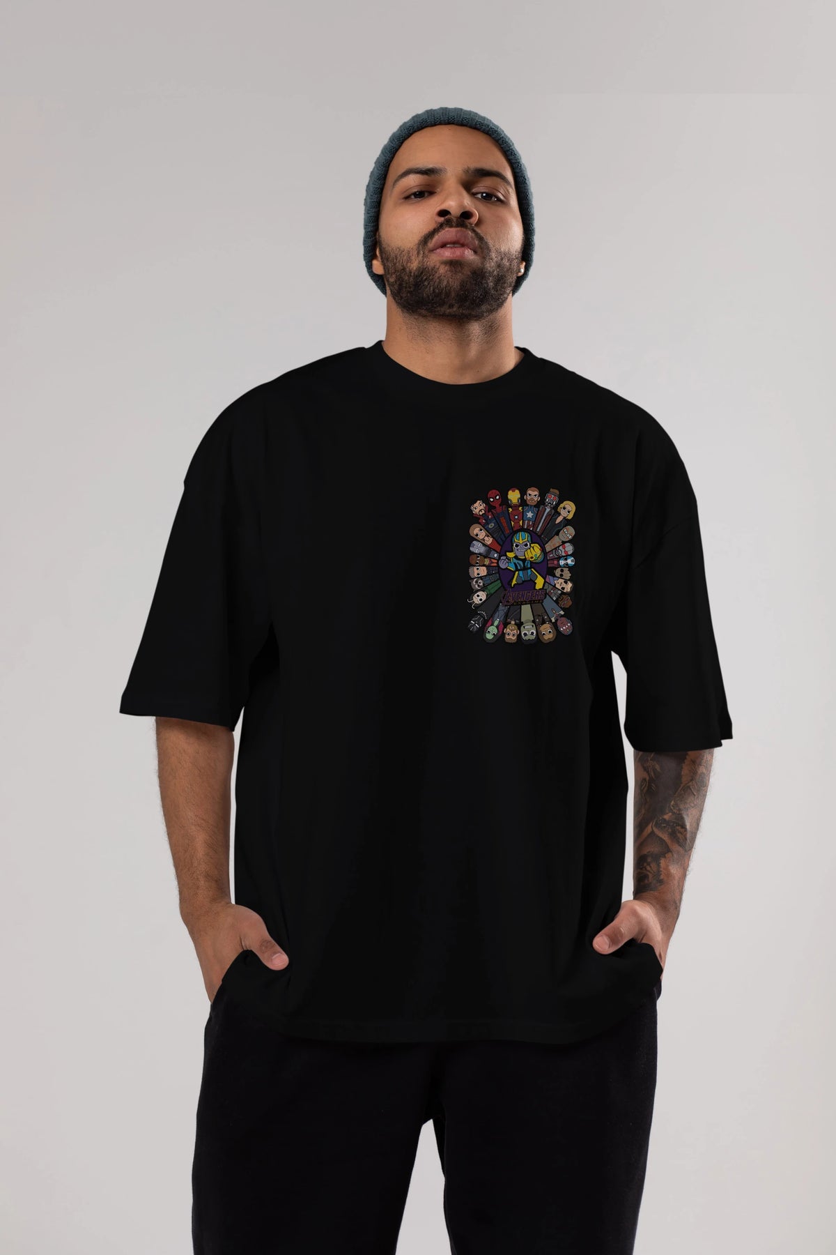 The Avengers (2) Ön Sol Baskılı Oversize t-shirt Erkek Kadın Unisex %100 Pamuk Bisiklet Yaka tişort