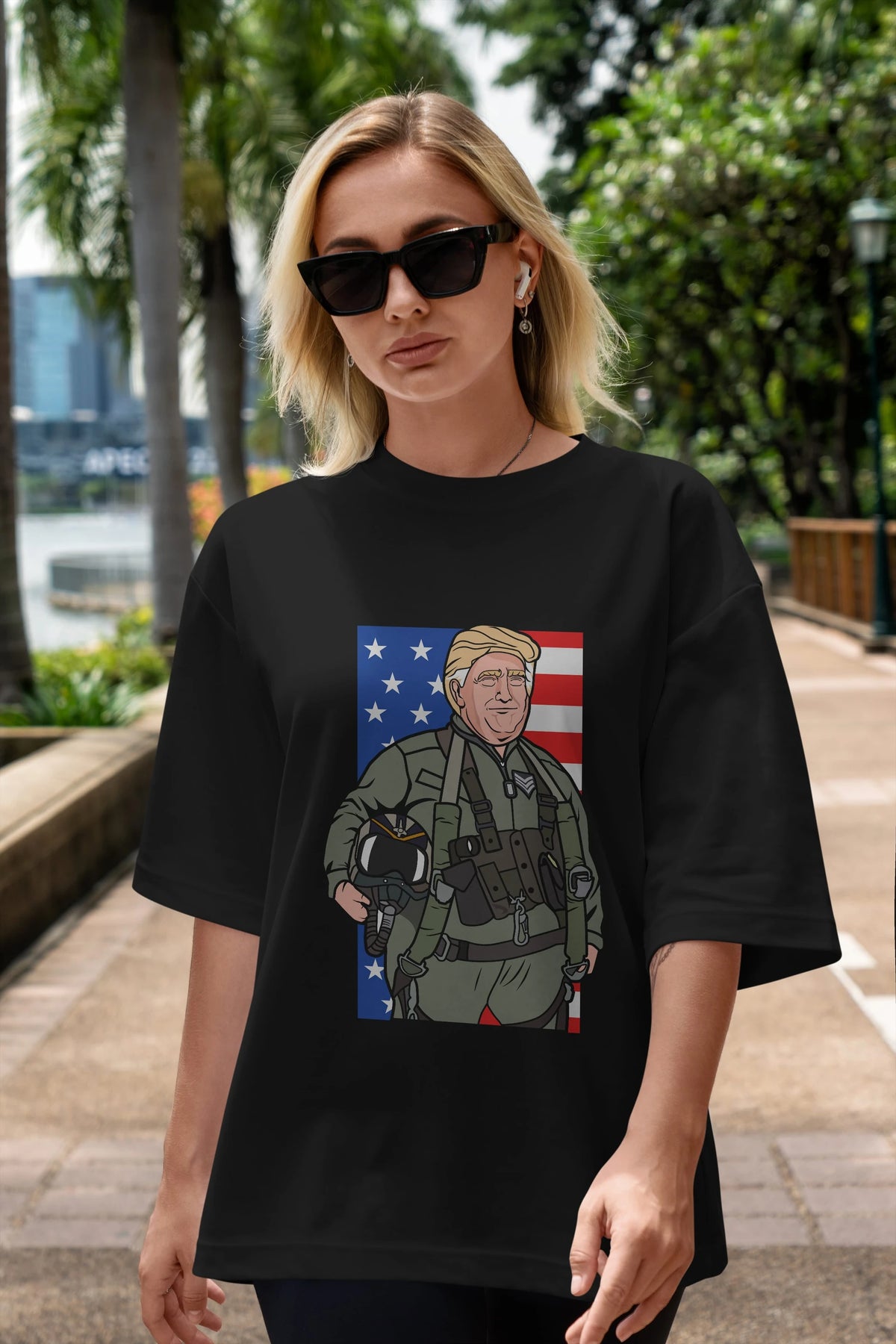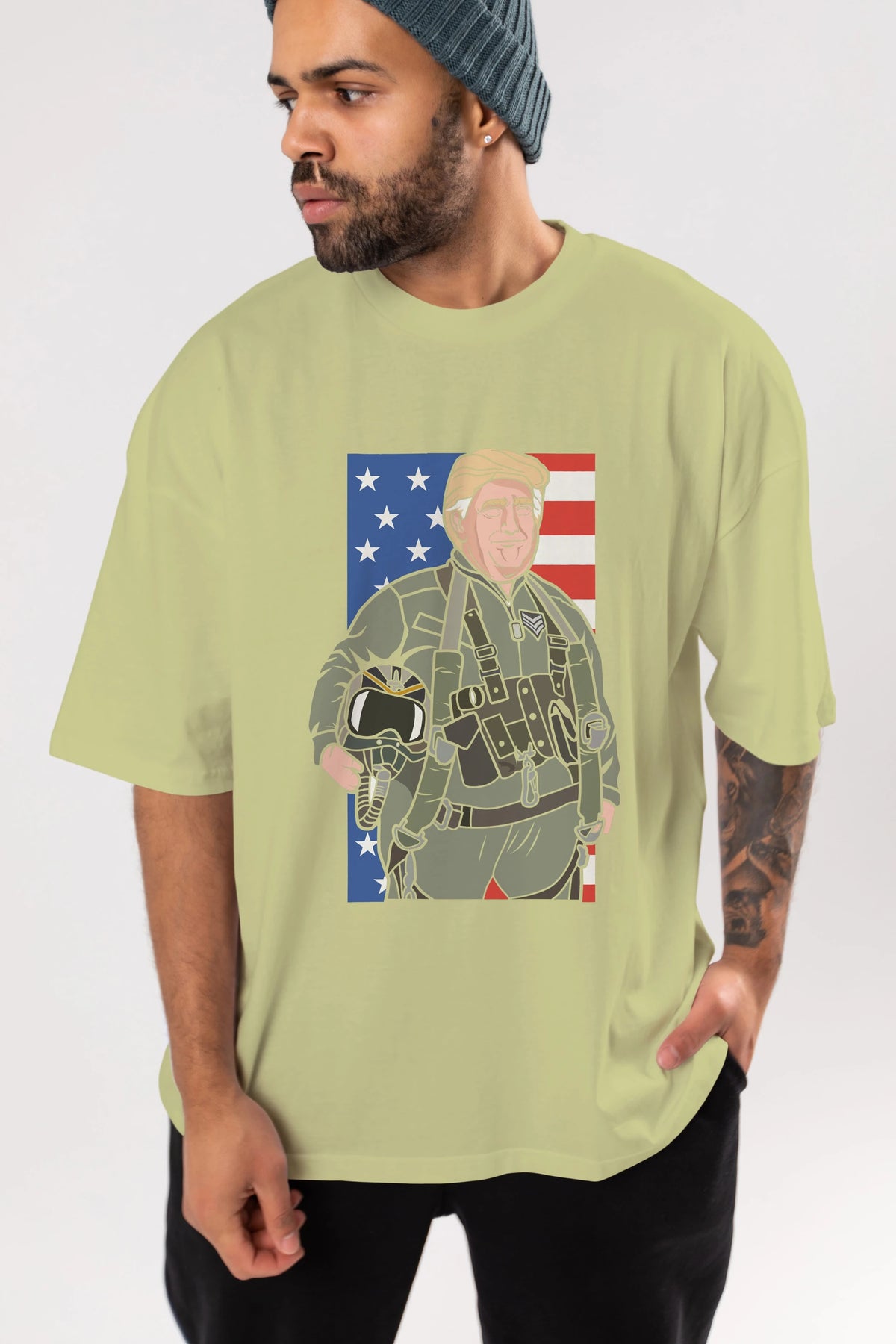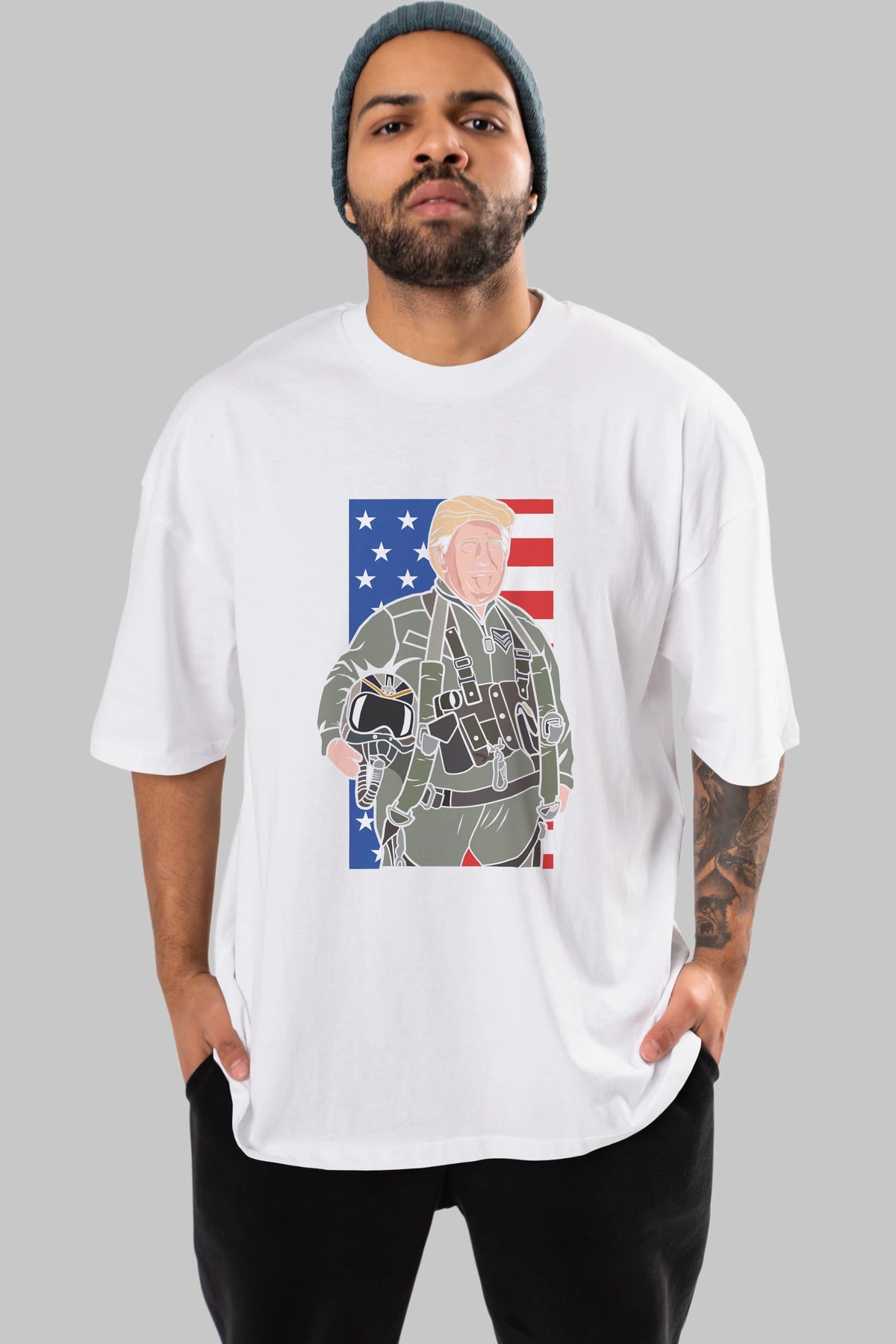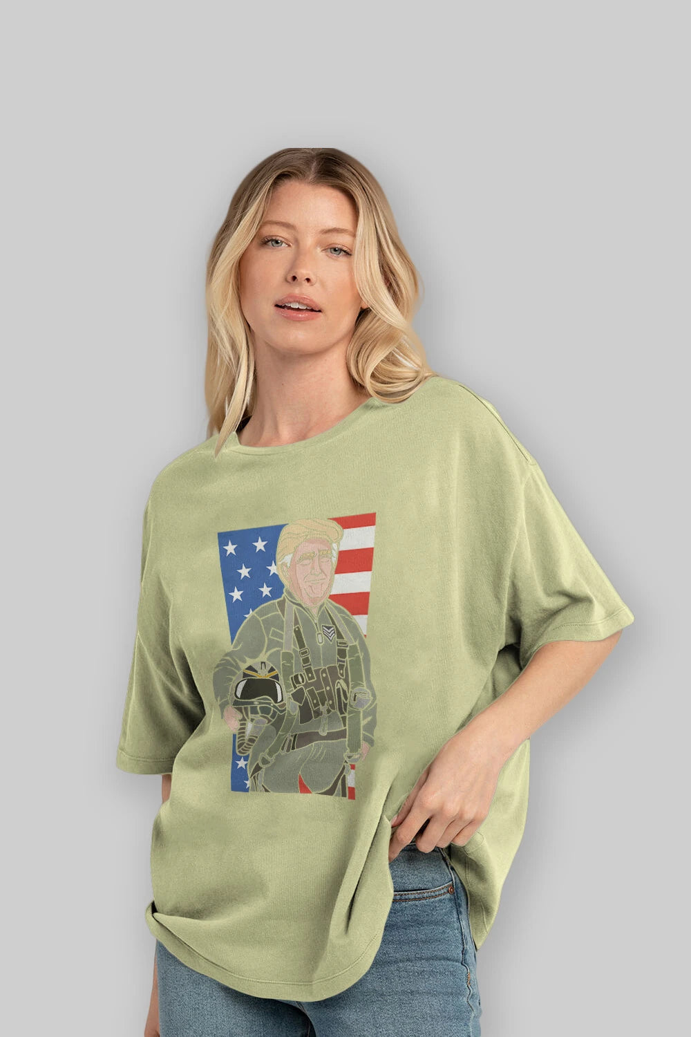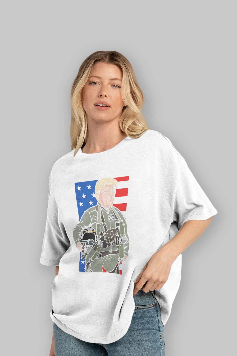 Trump Jetplane Pilot Ön Baskılı Oversize t-shirt Erkek Kadın Unisex %100 Pamuk tişort