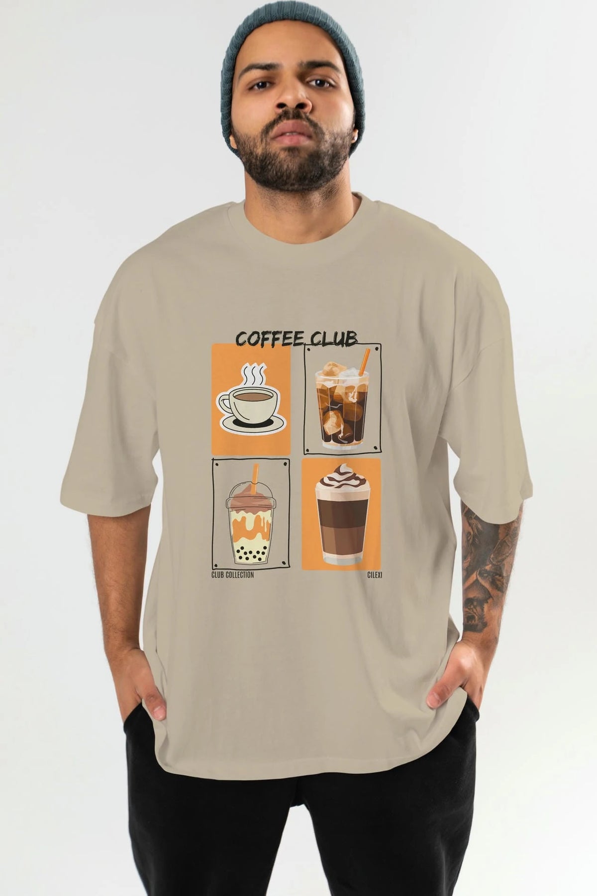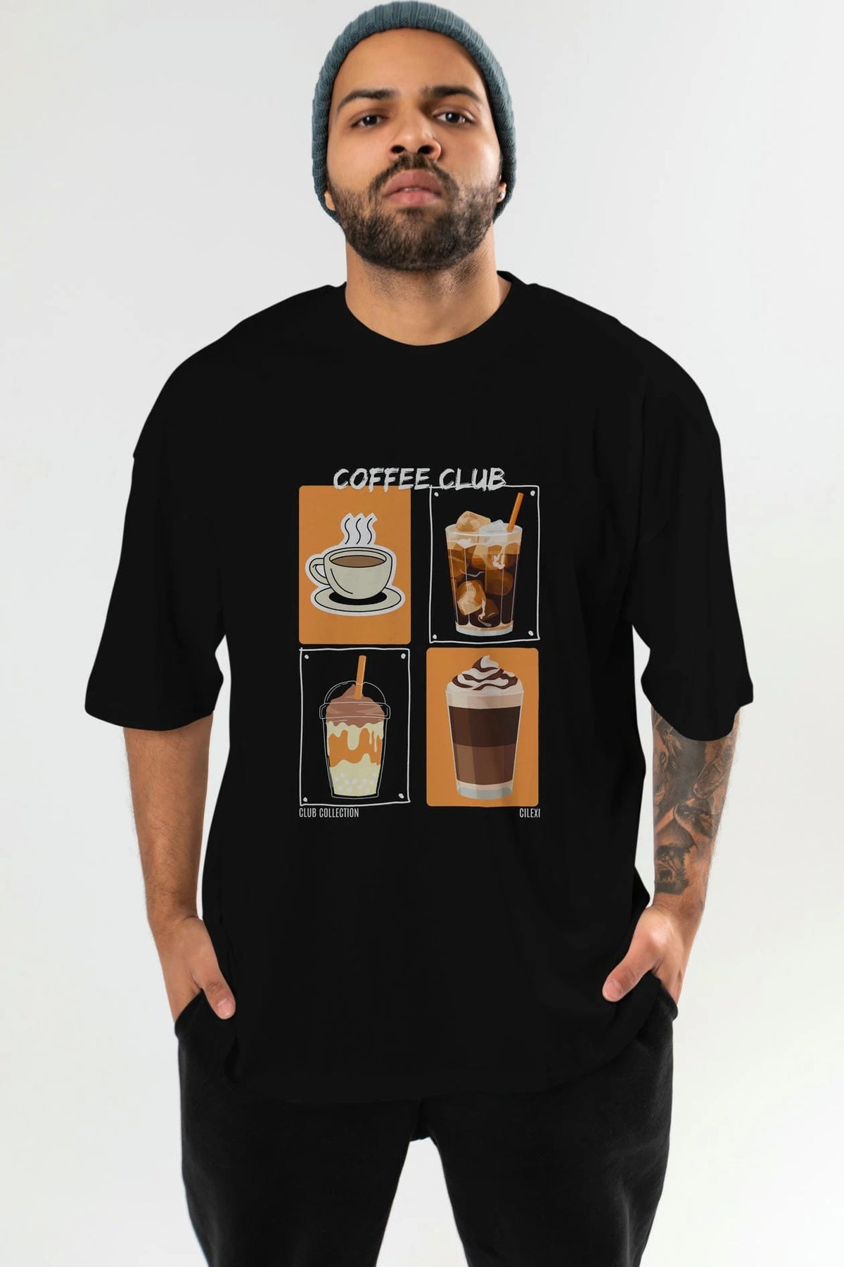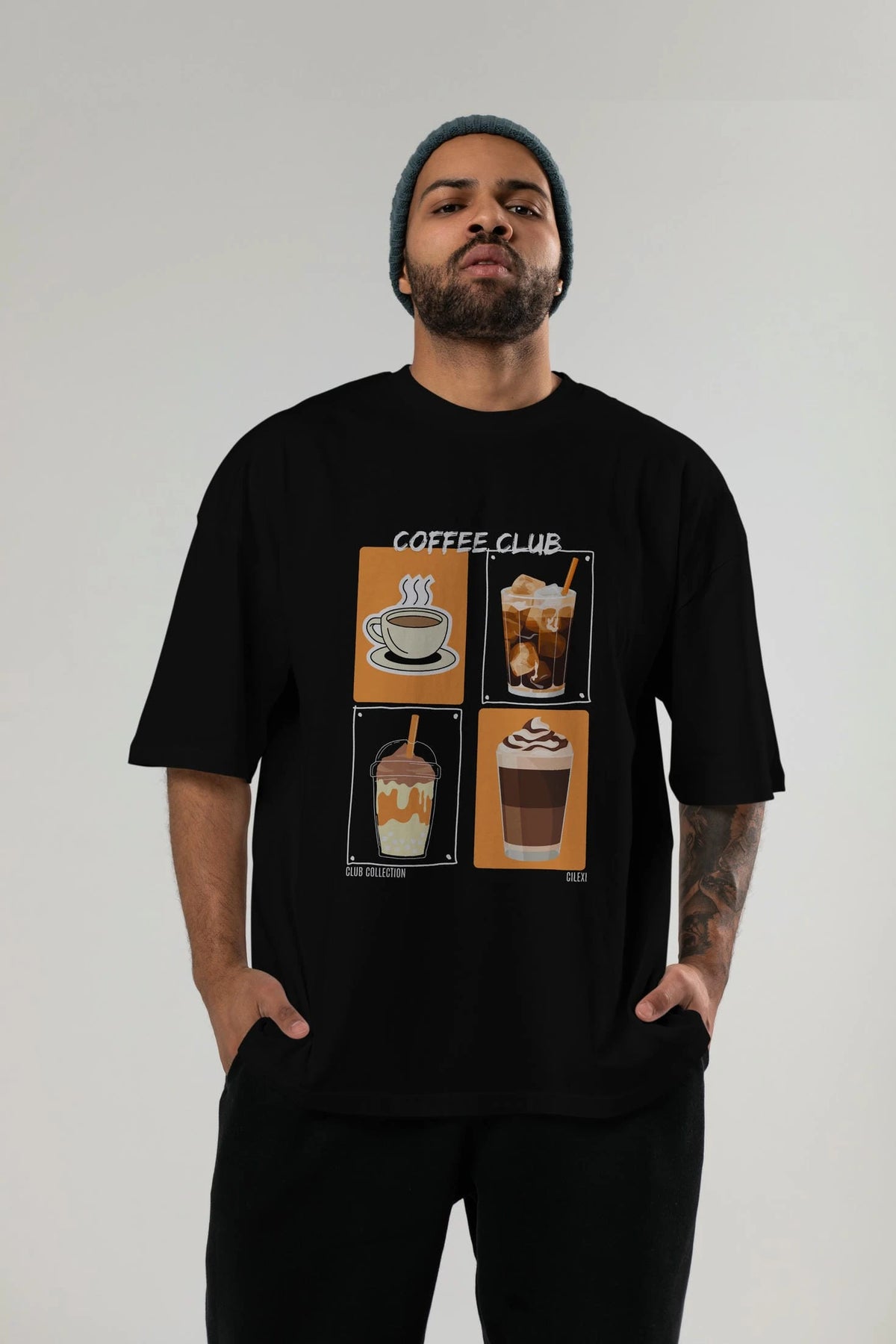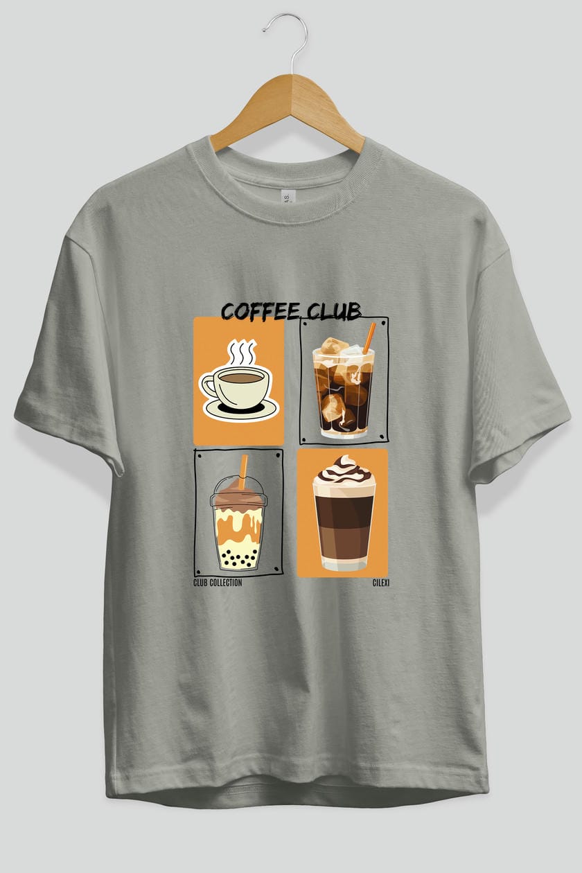 Coffee Club ön Baskılı Oversize t-shirt Erkek Kadın %100 Pamuk Bisiklet Yaka tişort