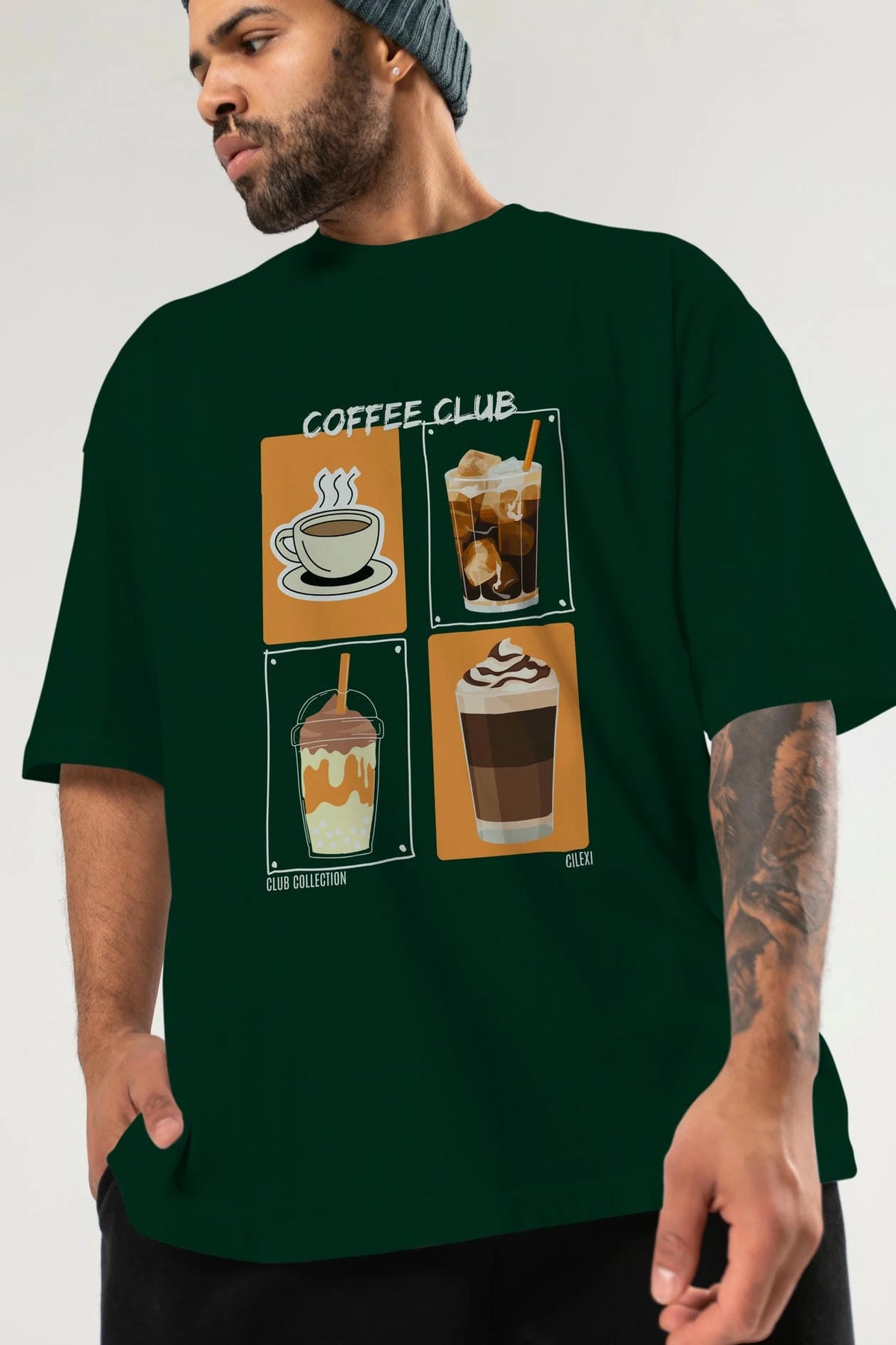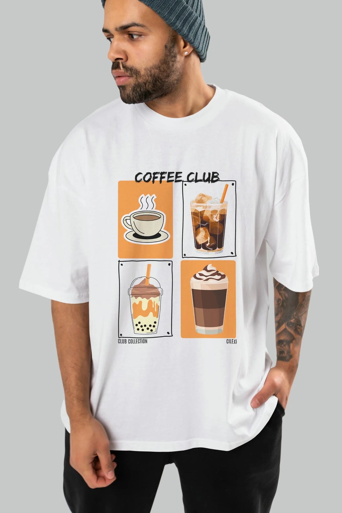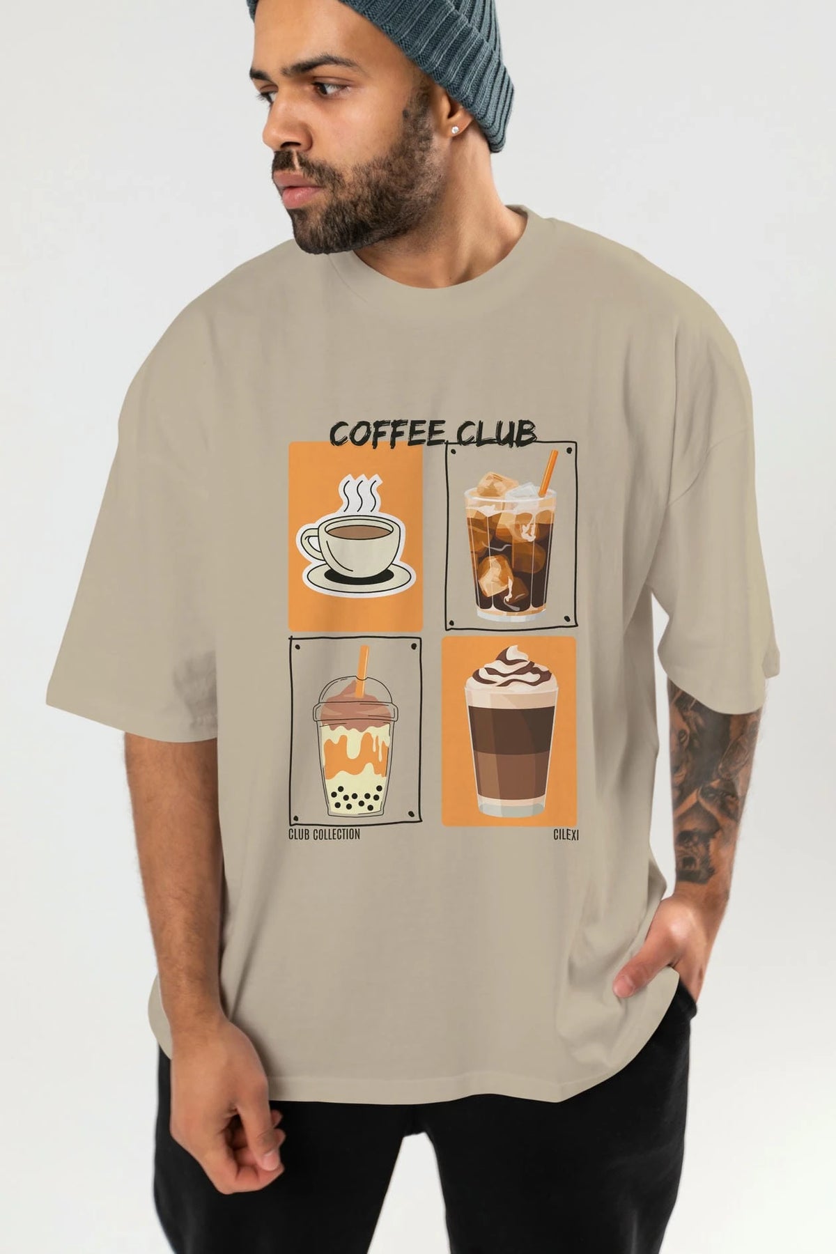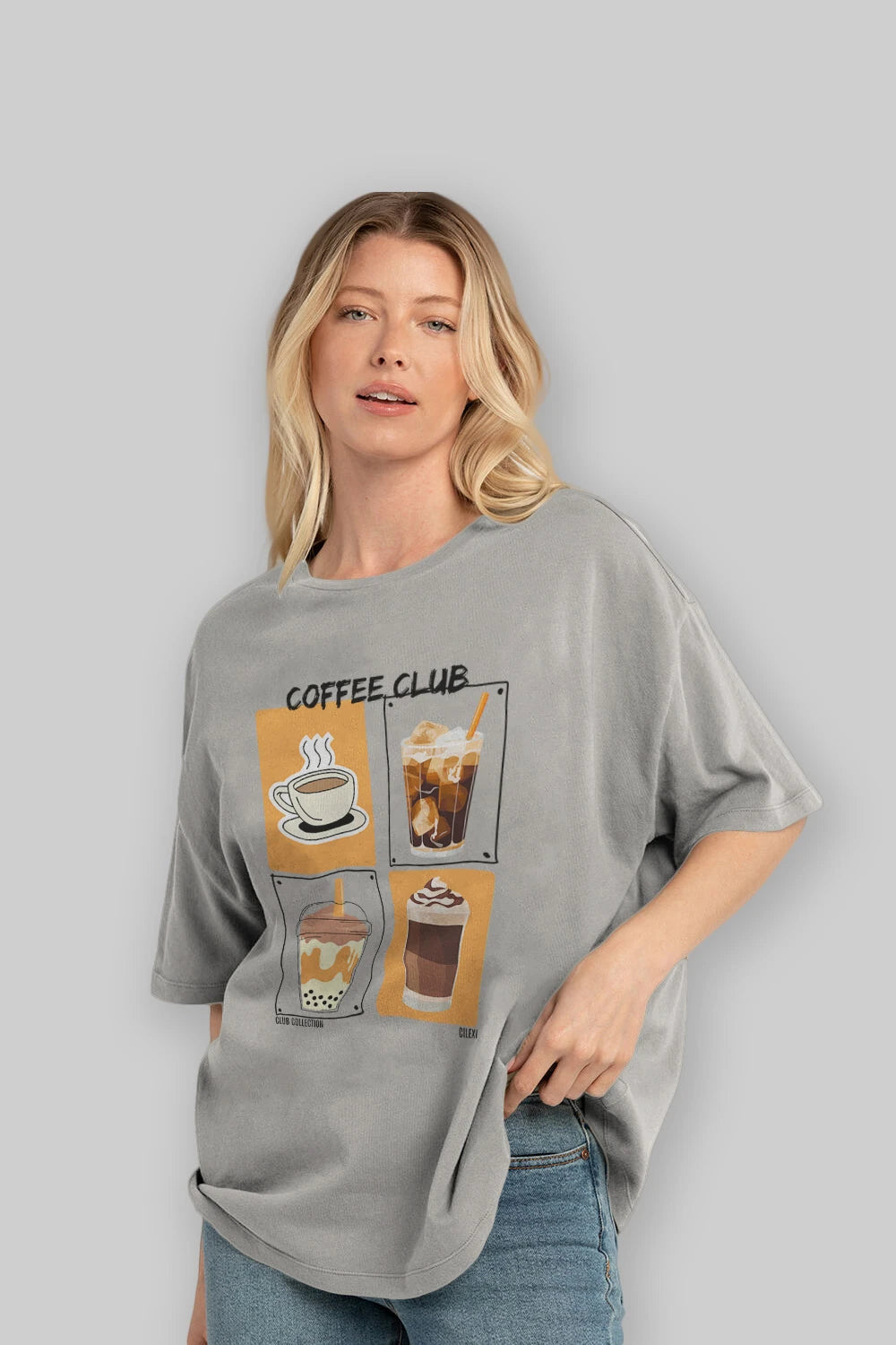 Coffee Club ön Baskılı Oversize t-shirt Erkek Kadın %100 Pamuk Bisiklet Yaka tişort