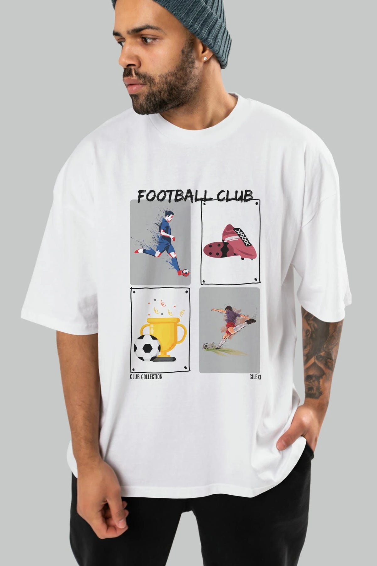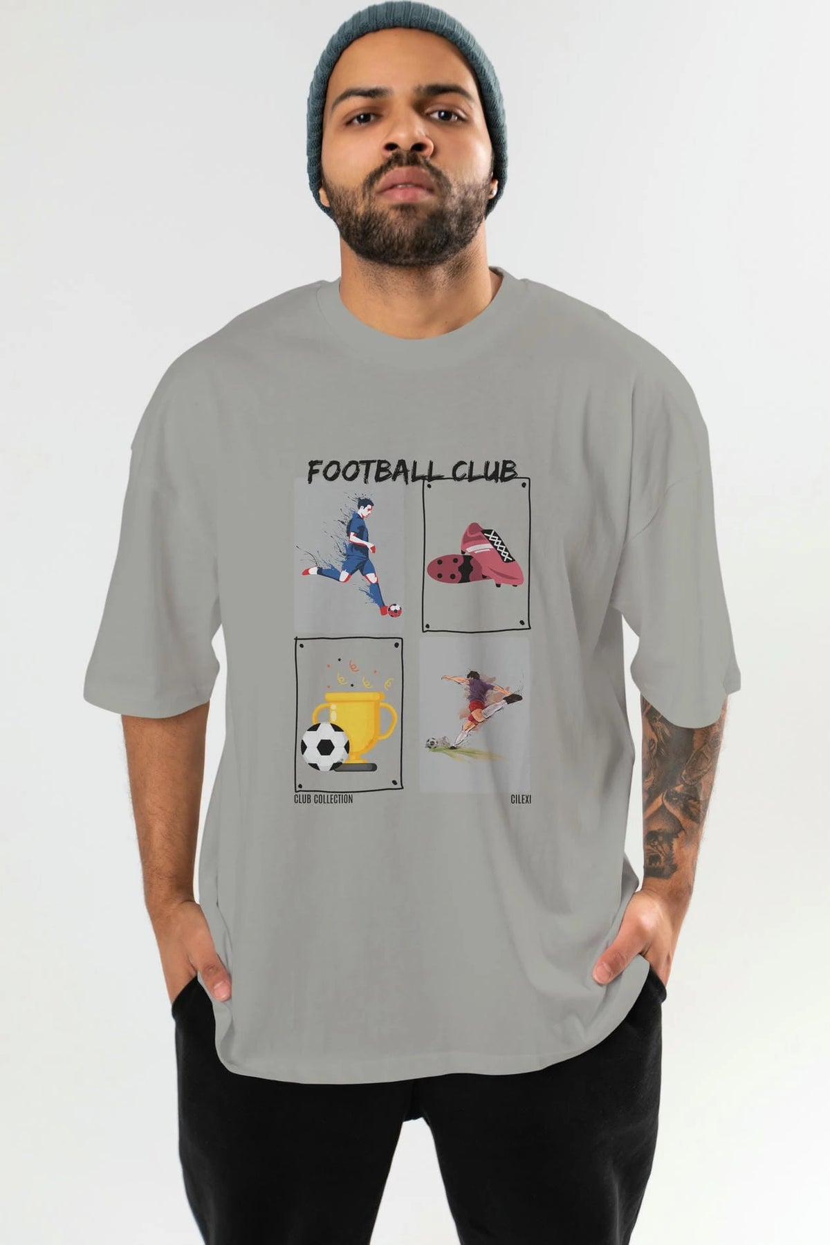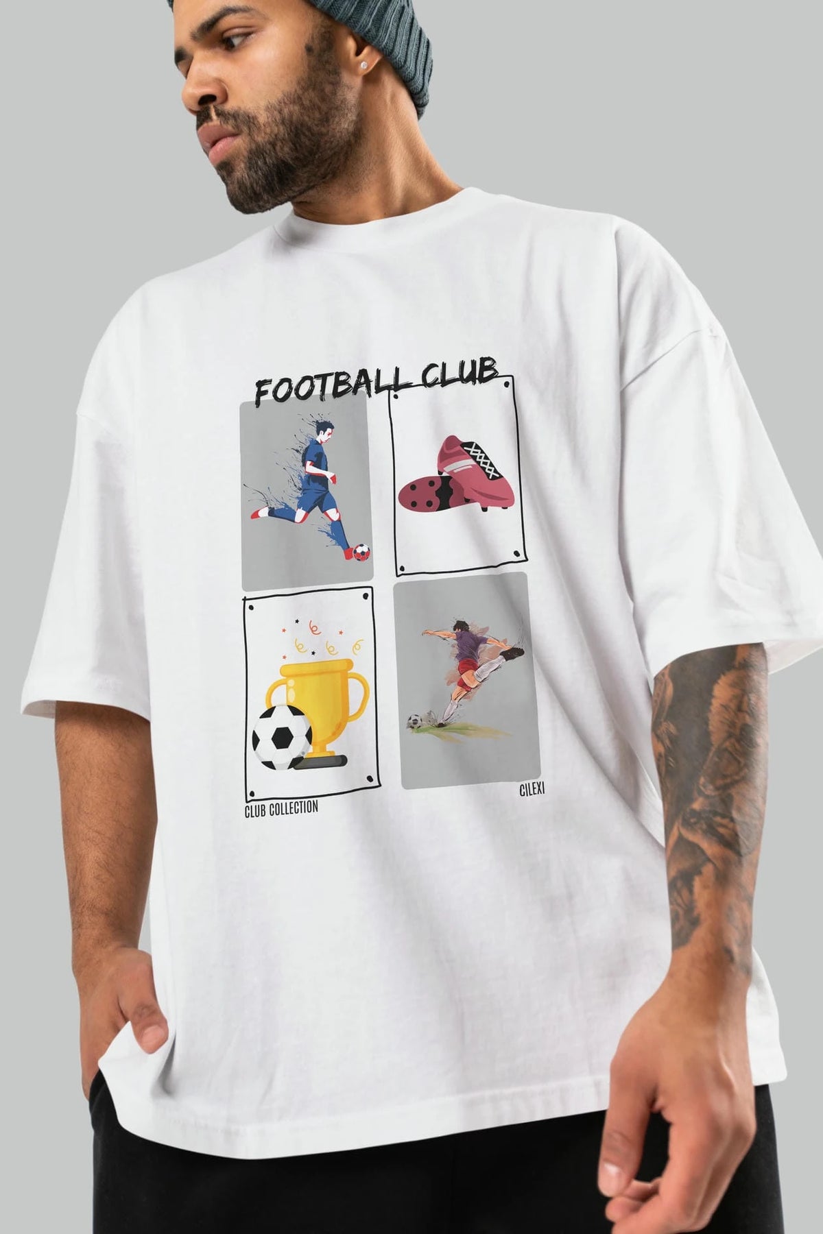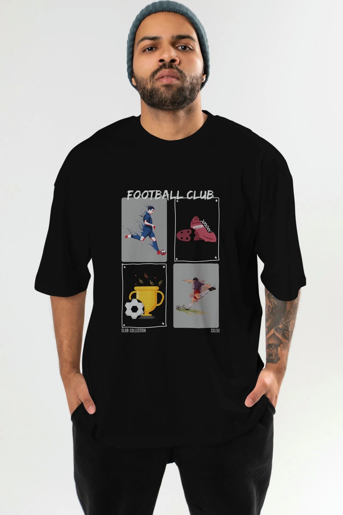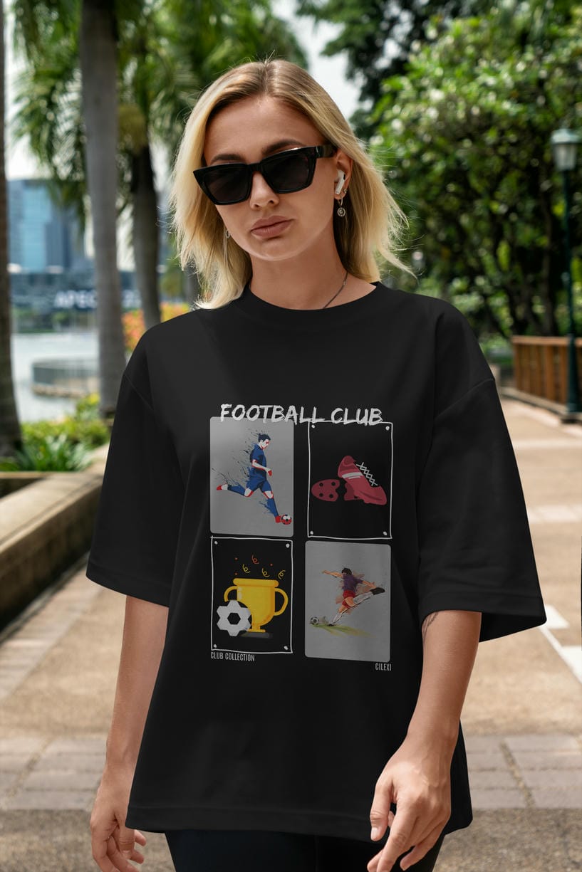 Football Club ön Baskılı Oversize t-shirt Erkek Kadın %100 Pamuk Bisiklet Yaka tişort